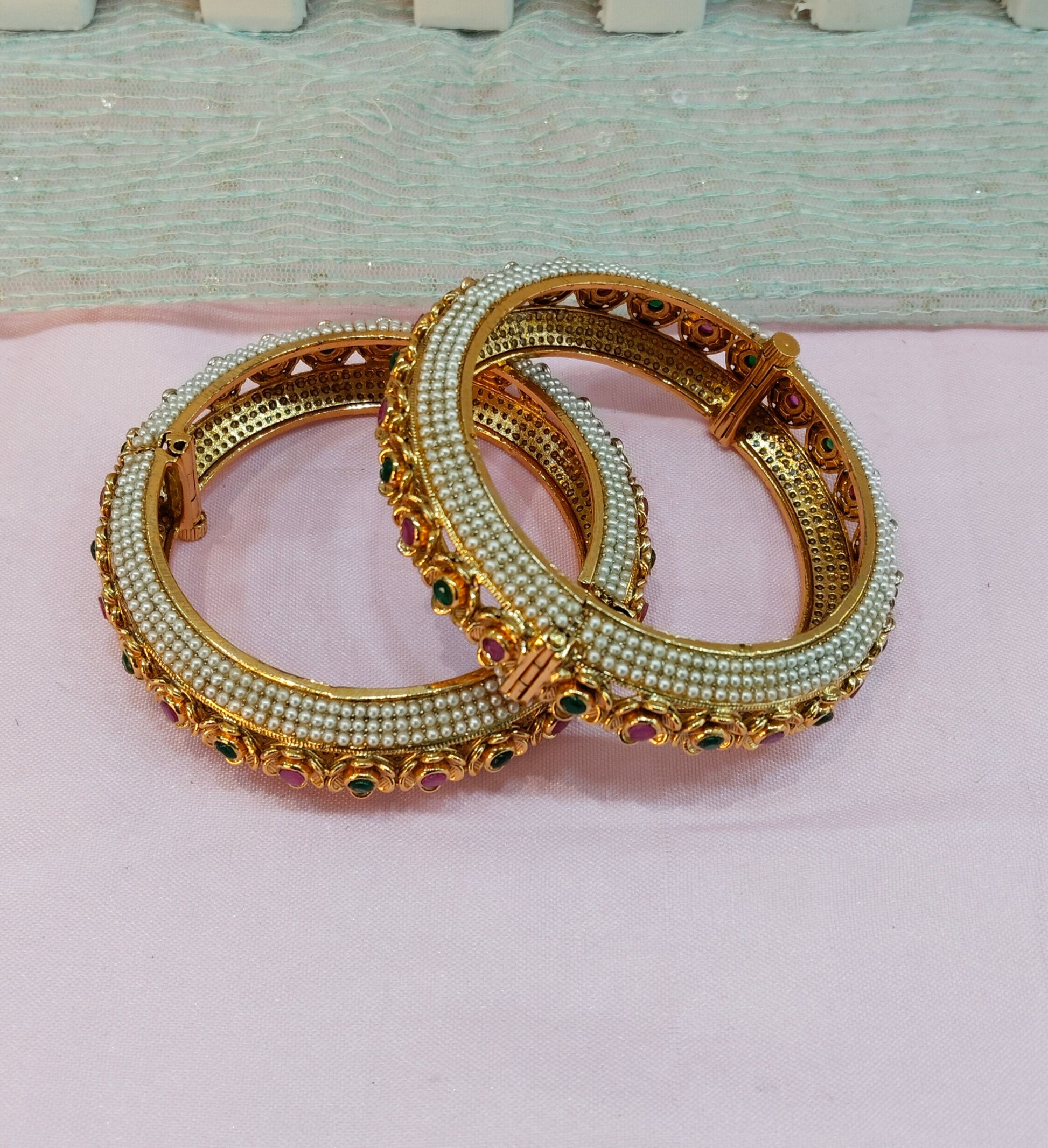 2.6 Size bangles jewelry /Traditional bollywood jewelry/Ruby Green Gold bangles