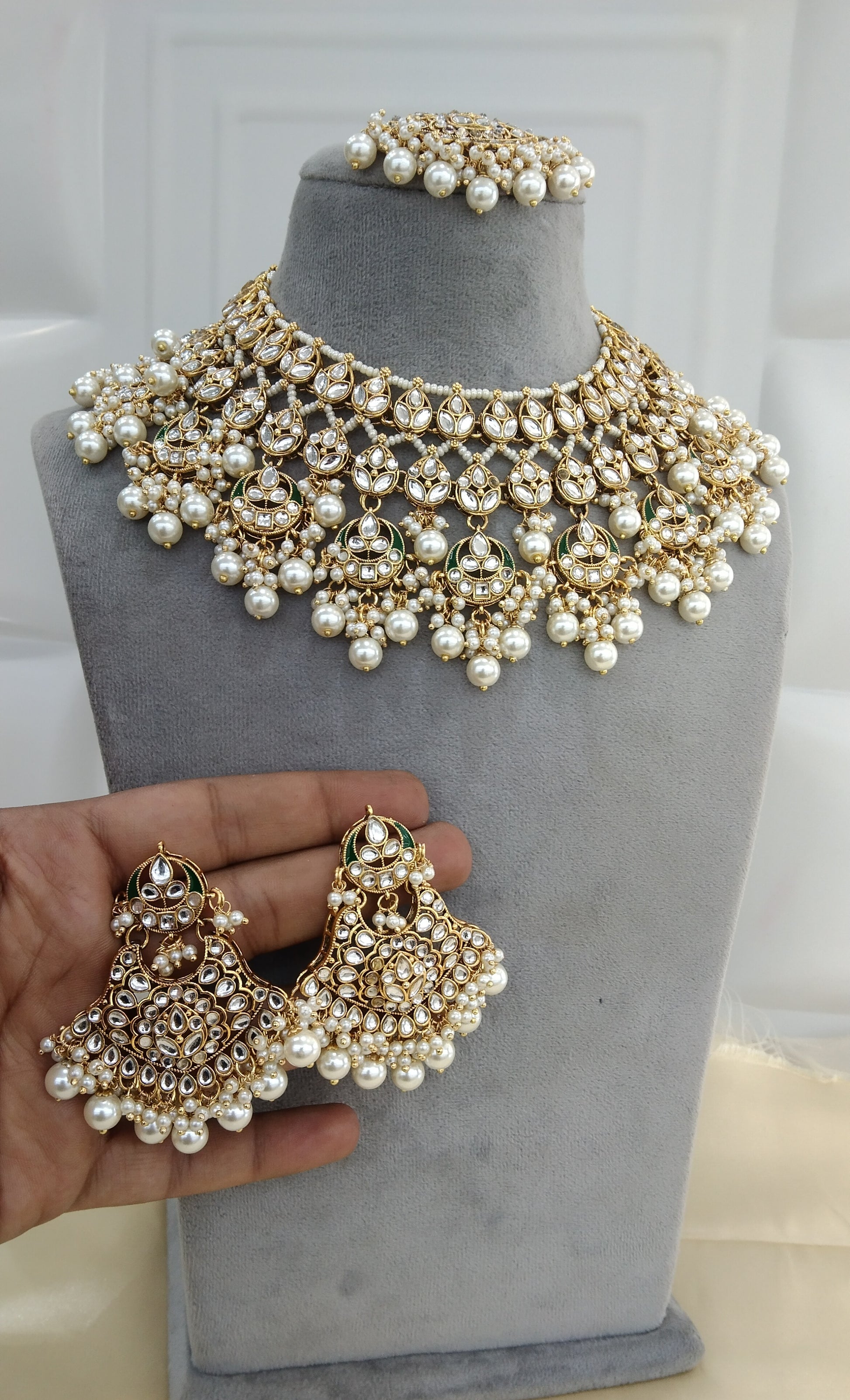 *Kundan necklace set with earrings and tikka.