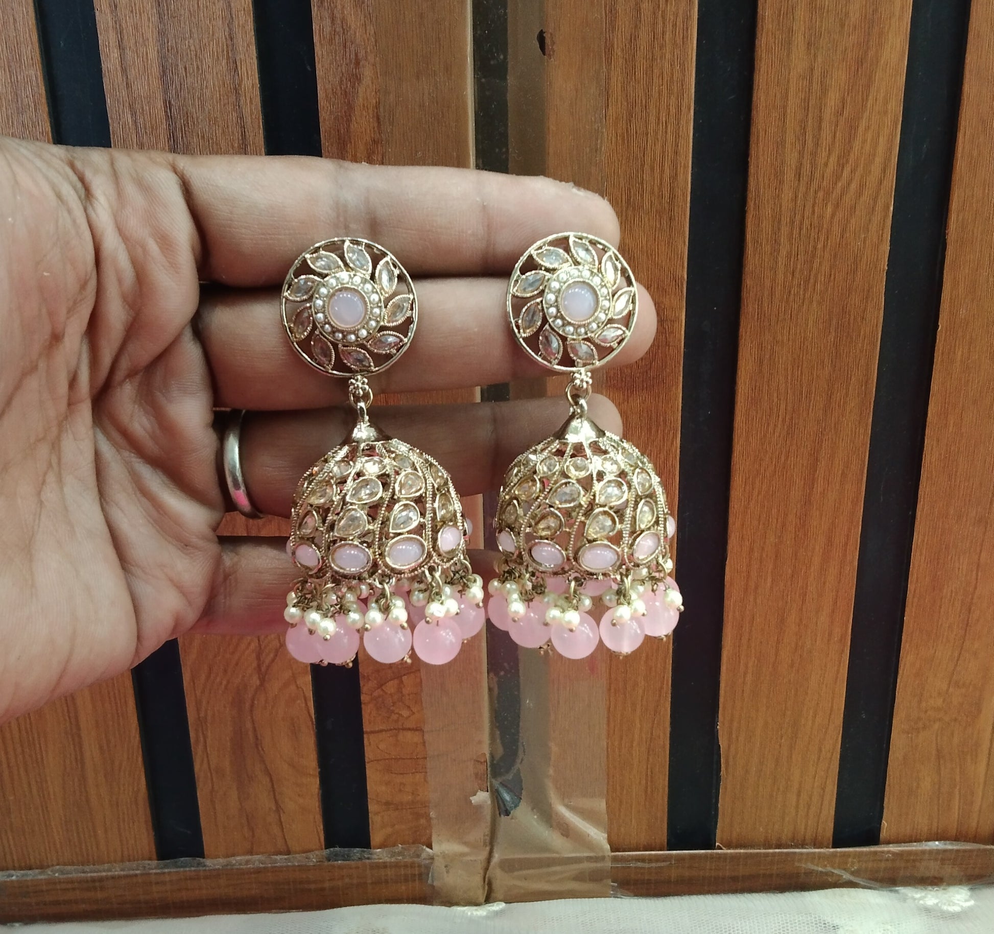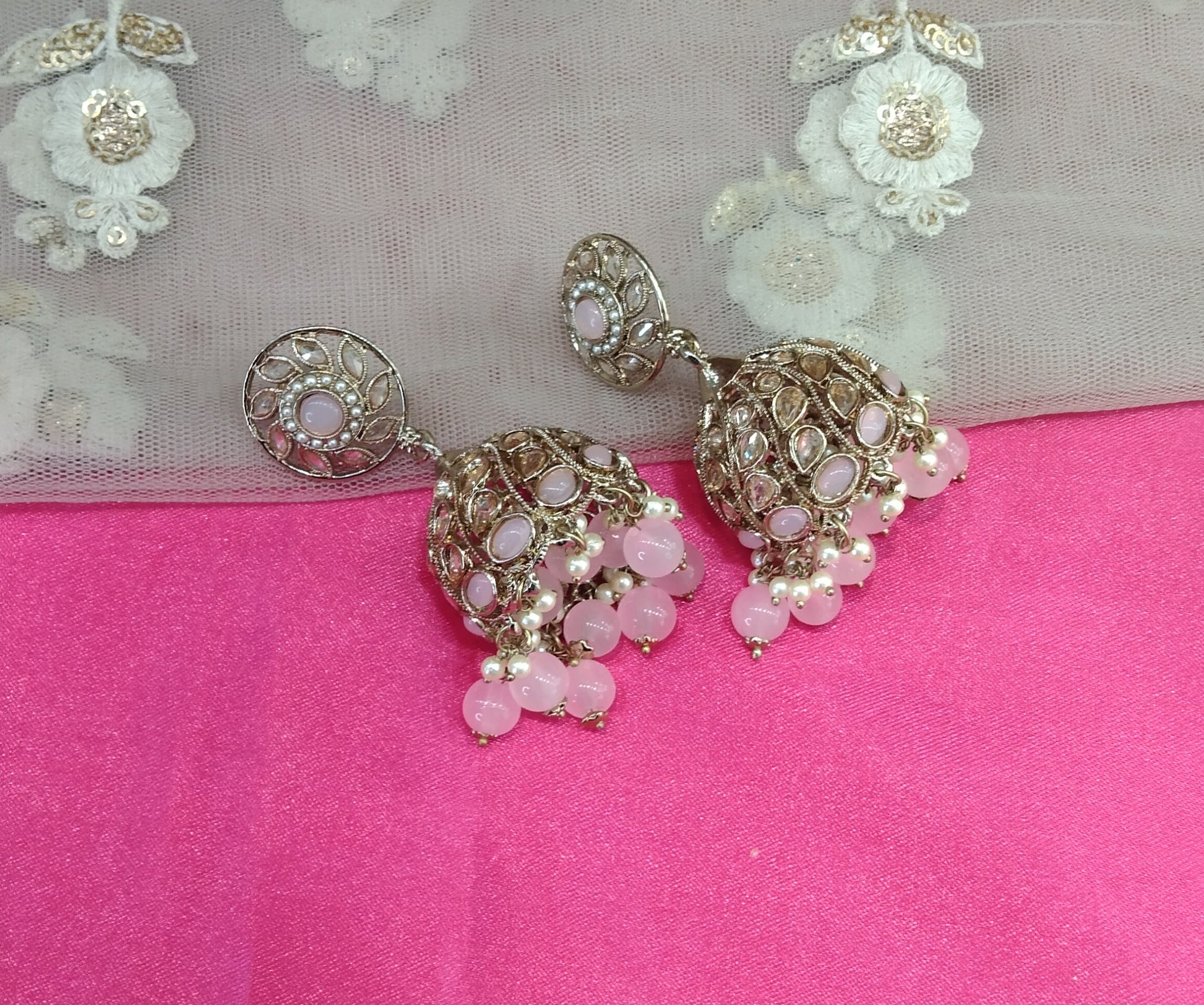 Antique Baby Pink Jhumka Suman Bollywood Earrings