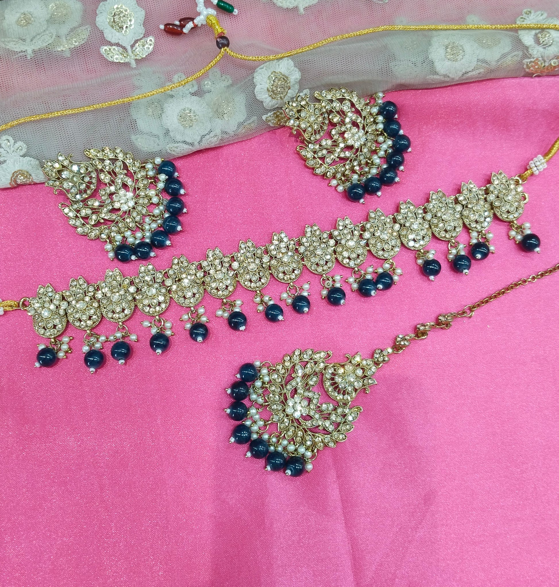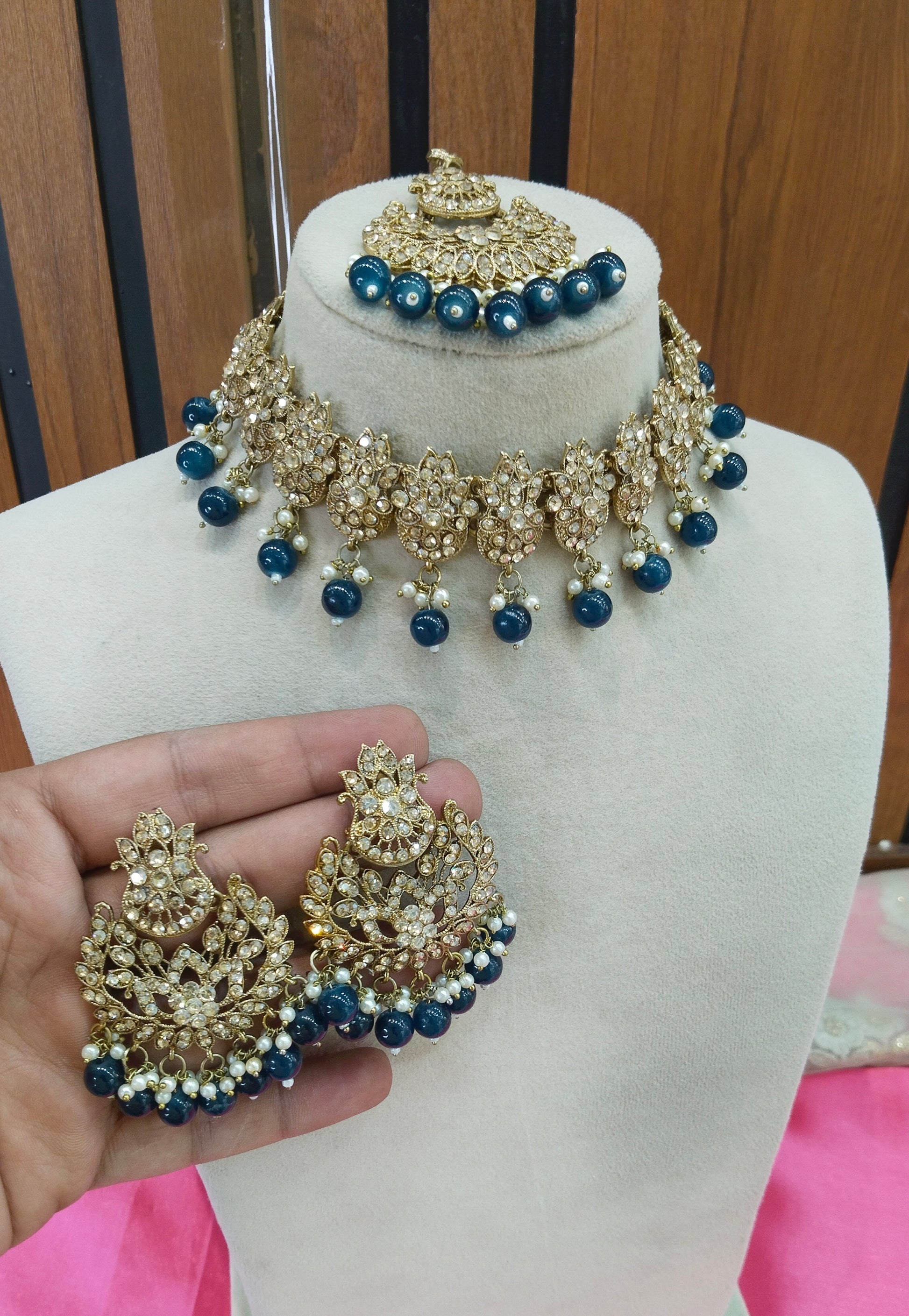 Antique Blue Choker Jewellery Pakistani Jhumar Tejasvi Set