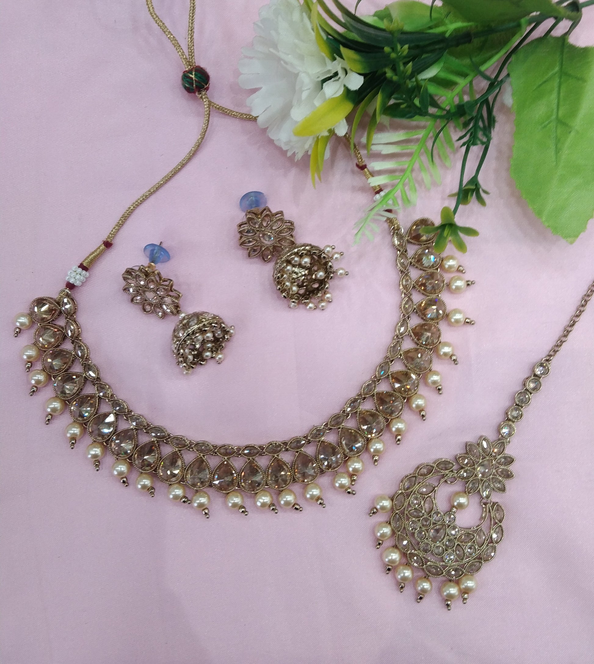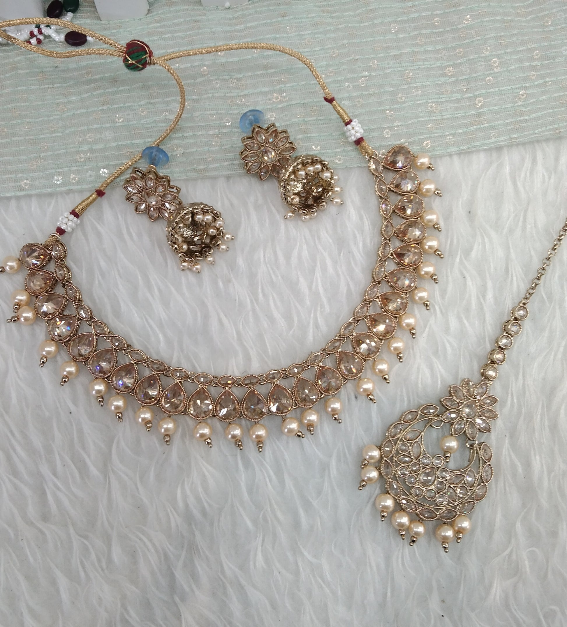 Antique Gold Champagne Stone Necklace Jewellery Jagat Set