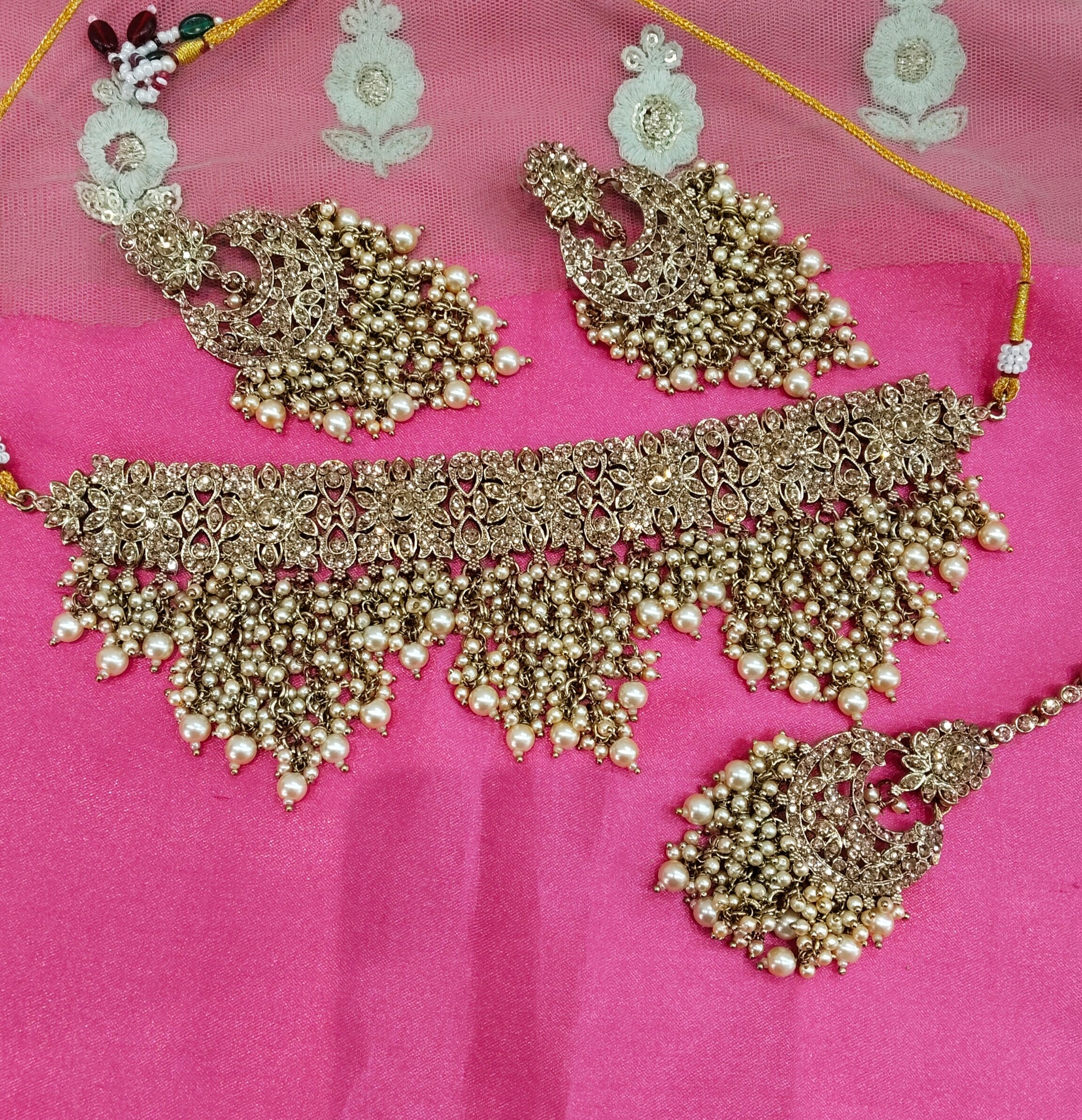 Antique Gold Crystal Stone Choker Jewellery Siraj Set