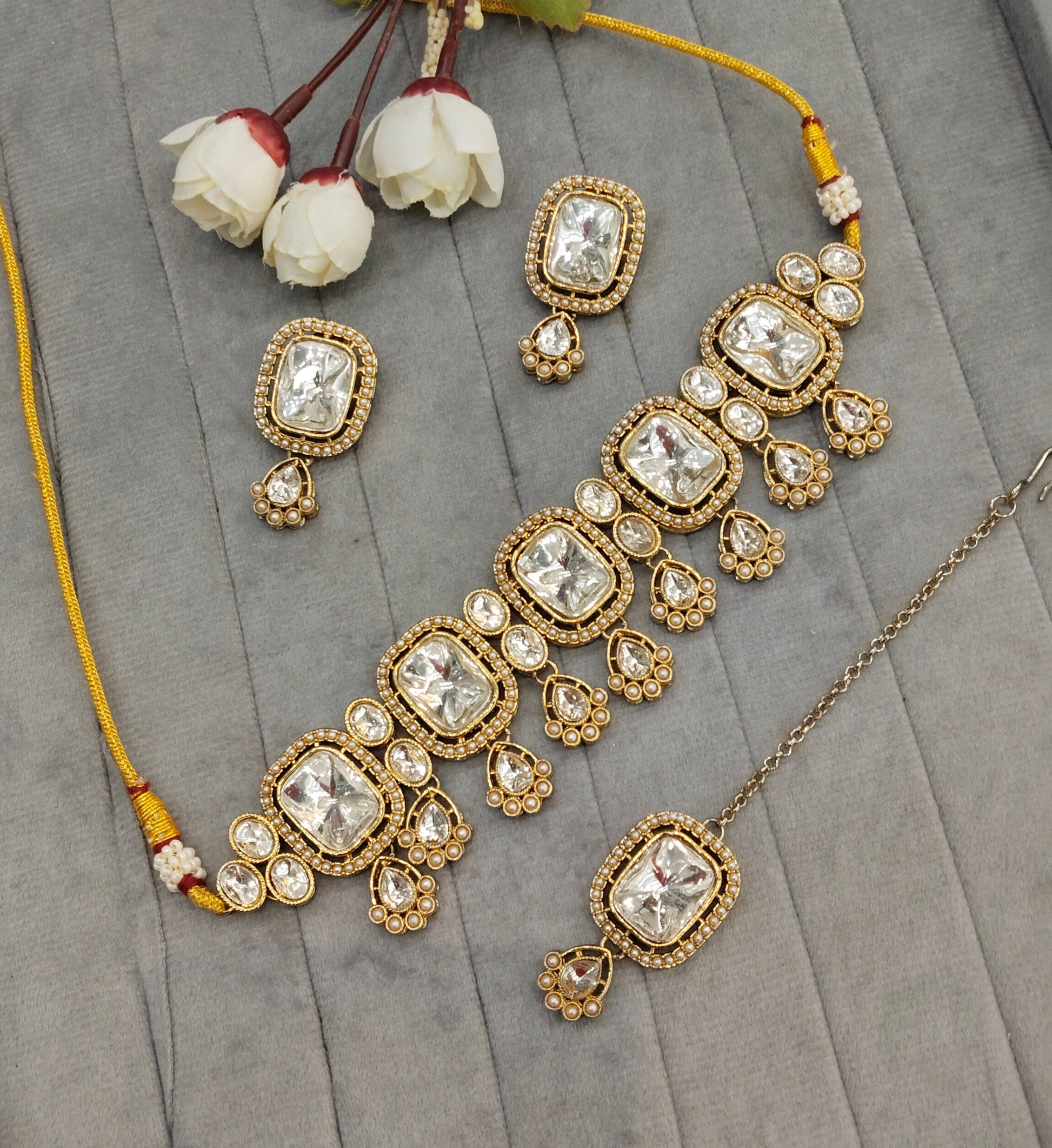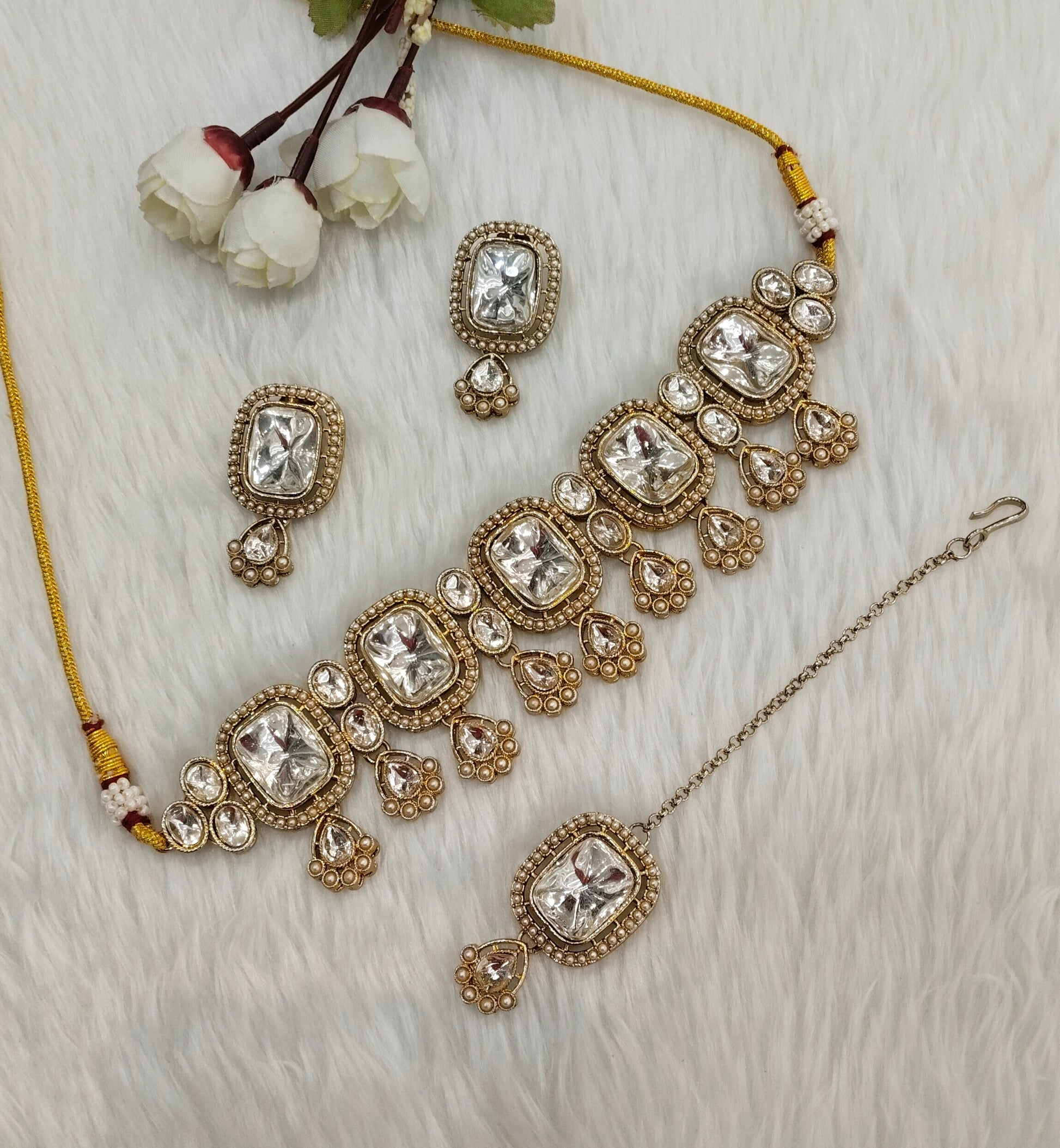 Antique Gold Kundan Choker Jewellery Lsg Set