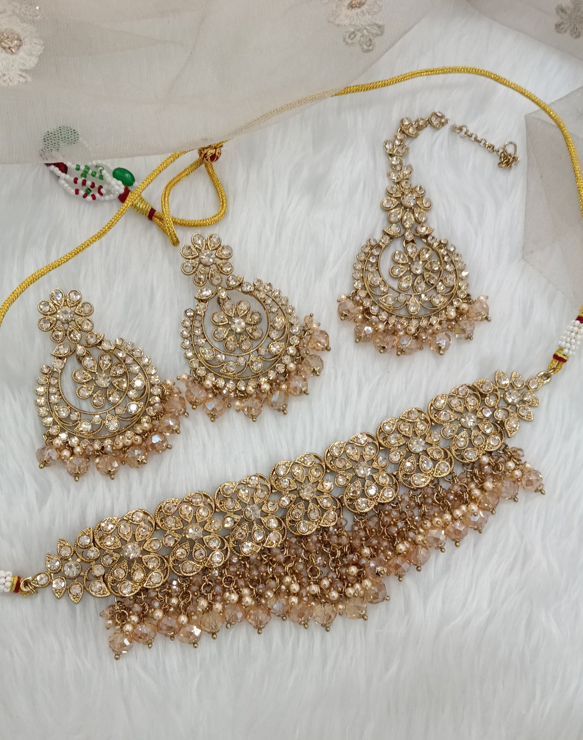 * Necklace set with earrings and tikka.