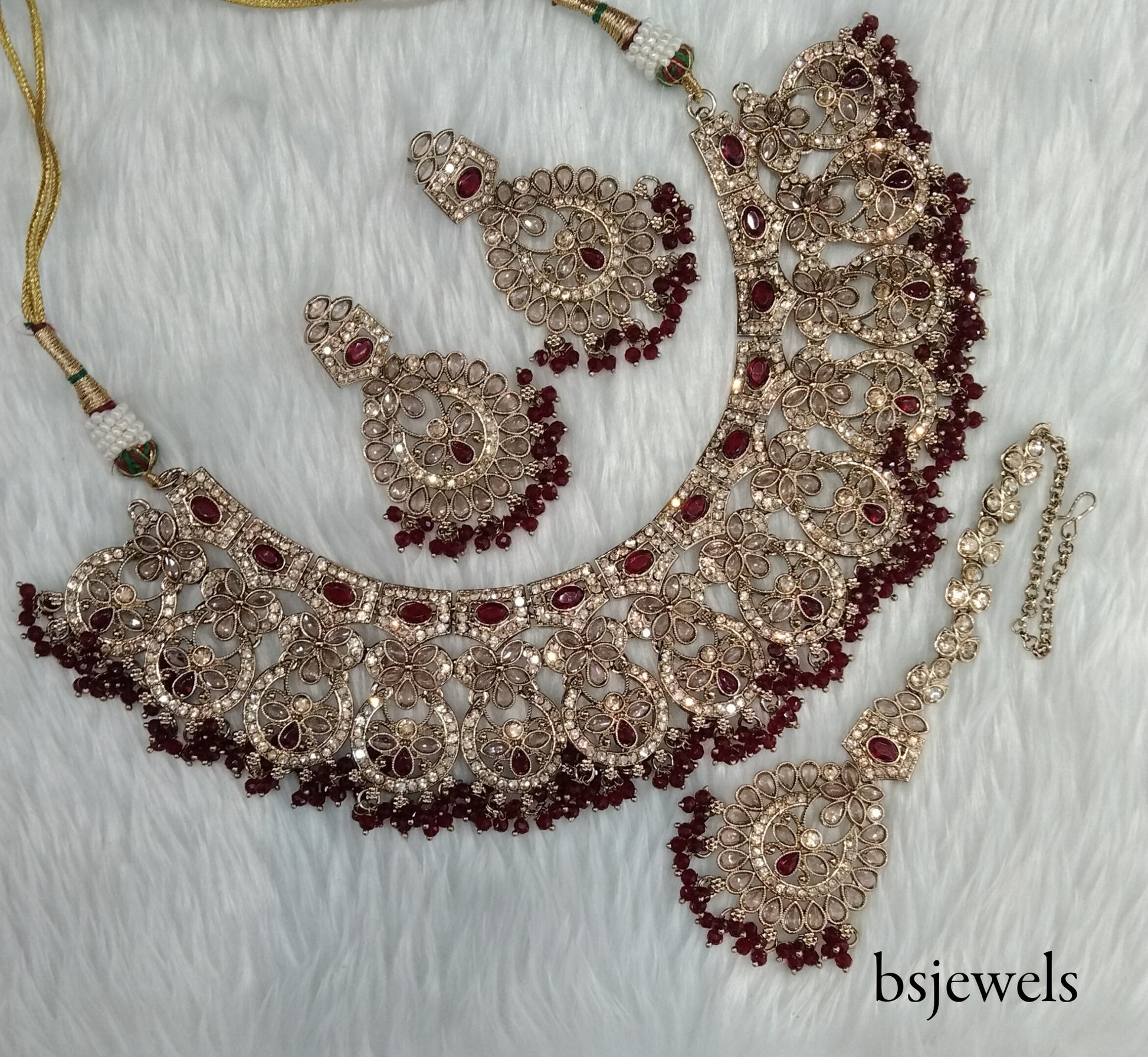 Antique Gold Maroon Necklace Jewellery Binder Bollywood Set
