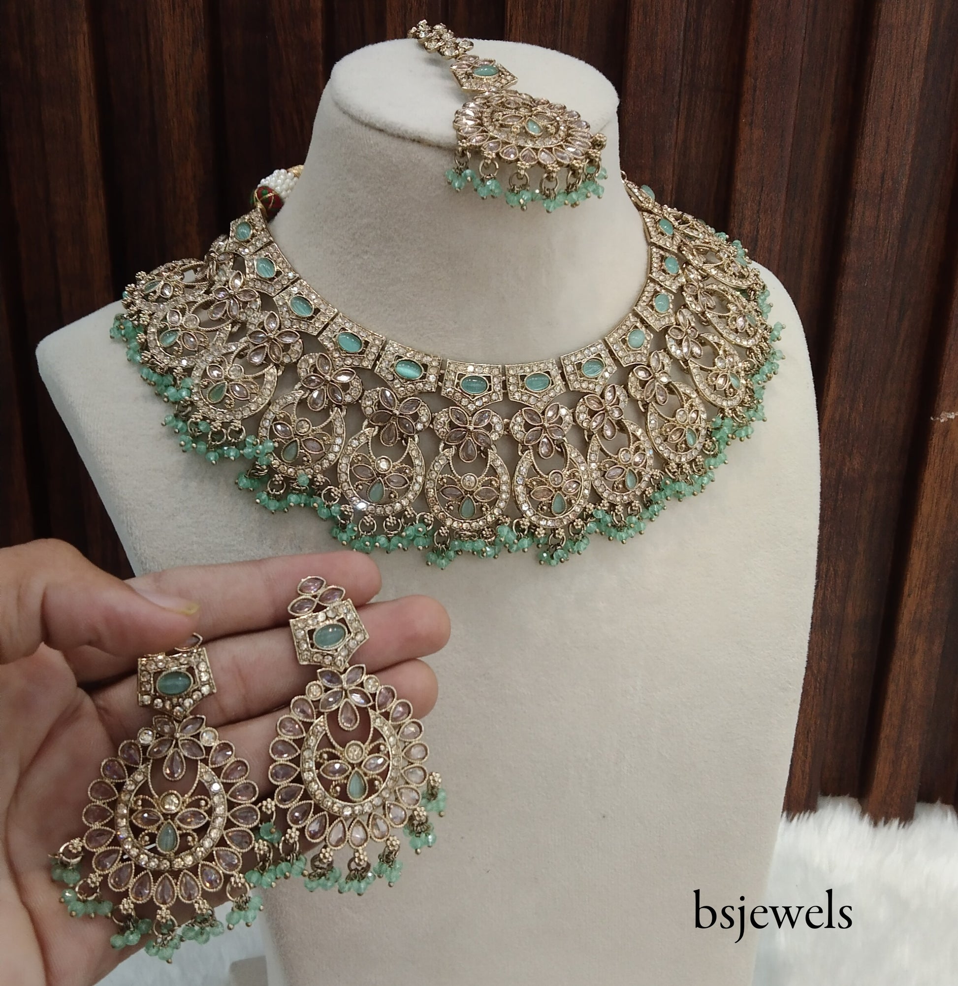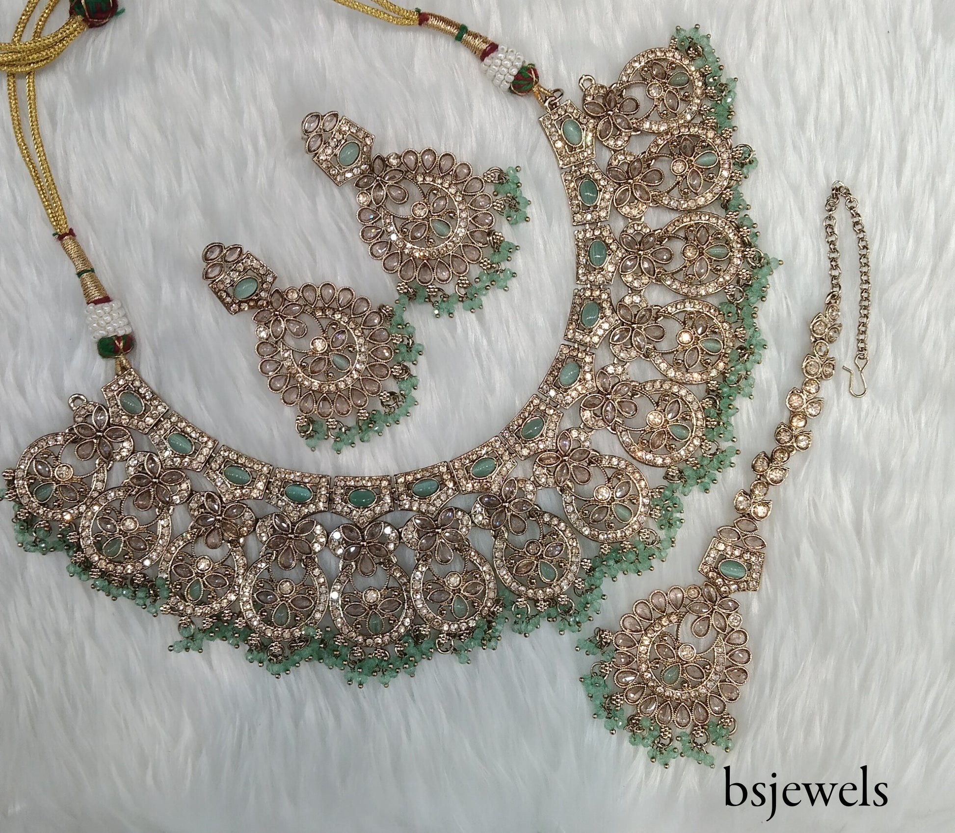 Antique Gold Mint Necklace Jewellery Binder Bollywood Set