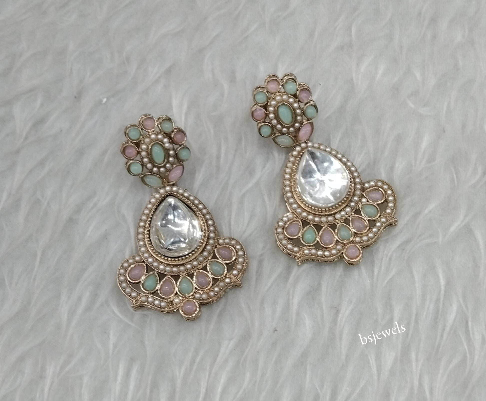 Antique Gold Mint Pink Bollywood Ida Earrings