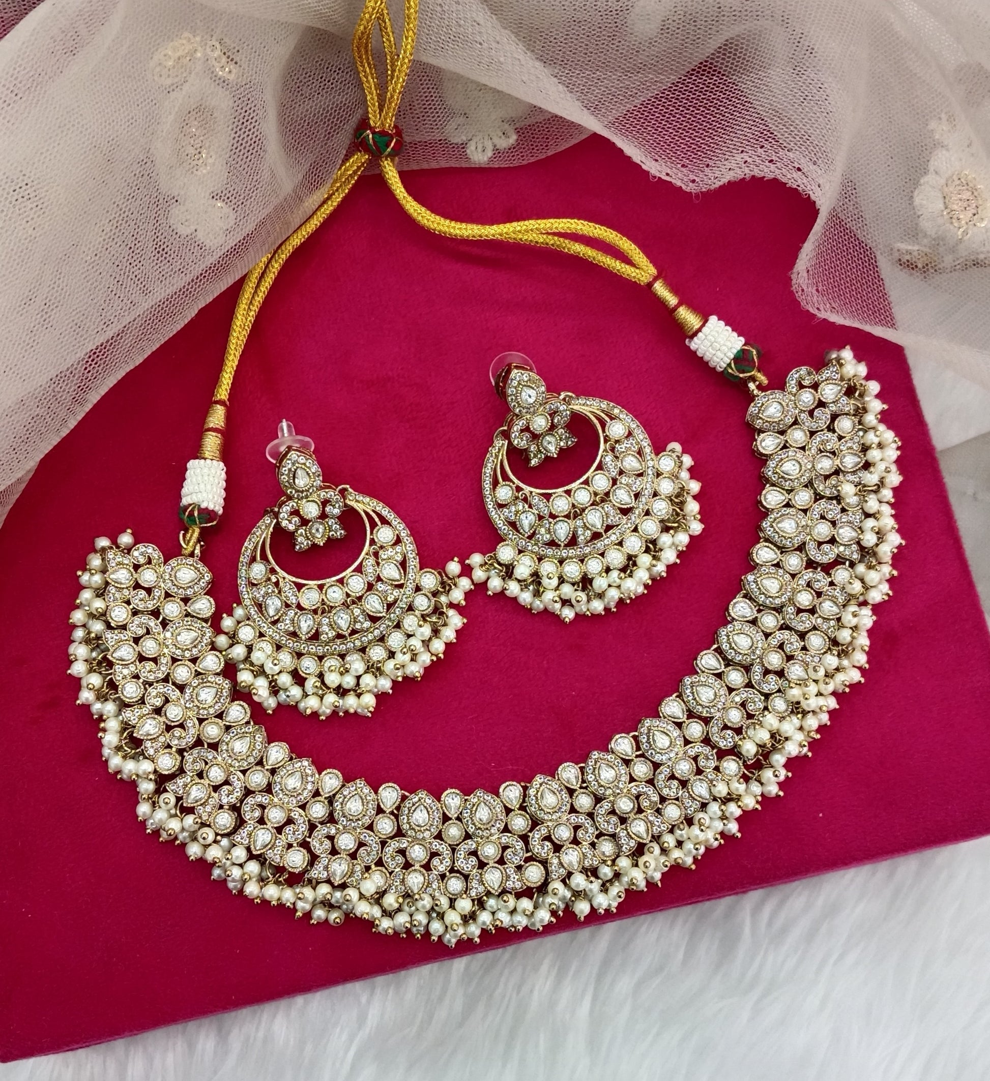 Antique Gold Kundan Necklace Jewellery Jot Set