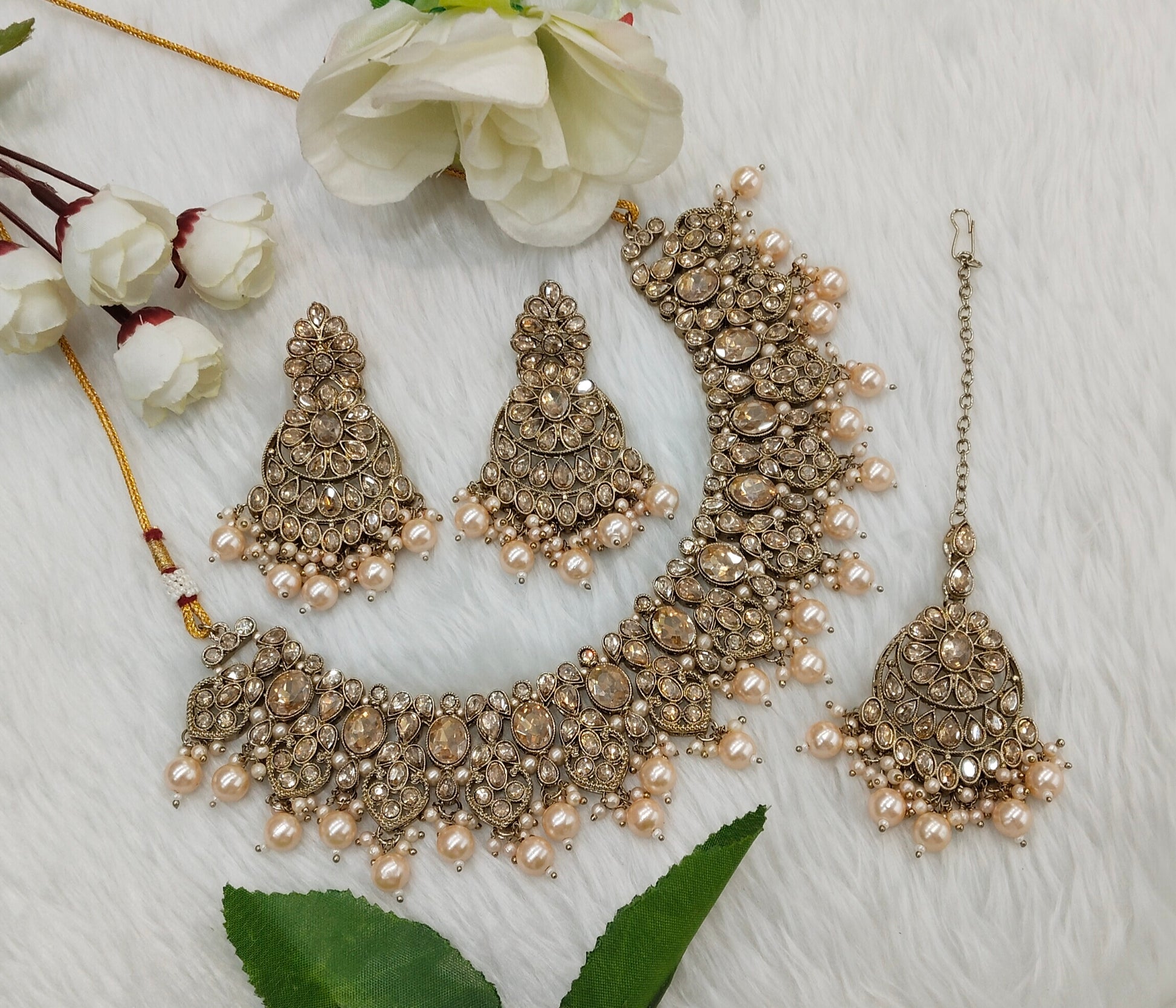* Necklace set with earrings and tikka.