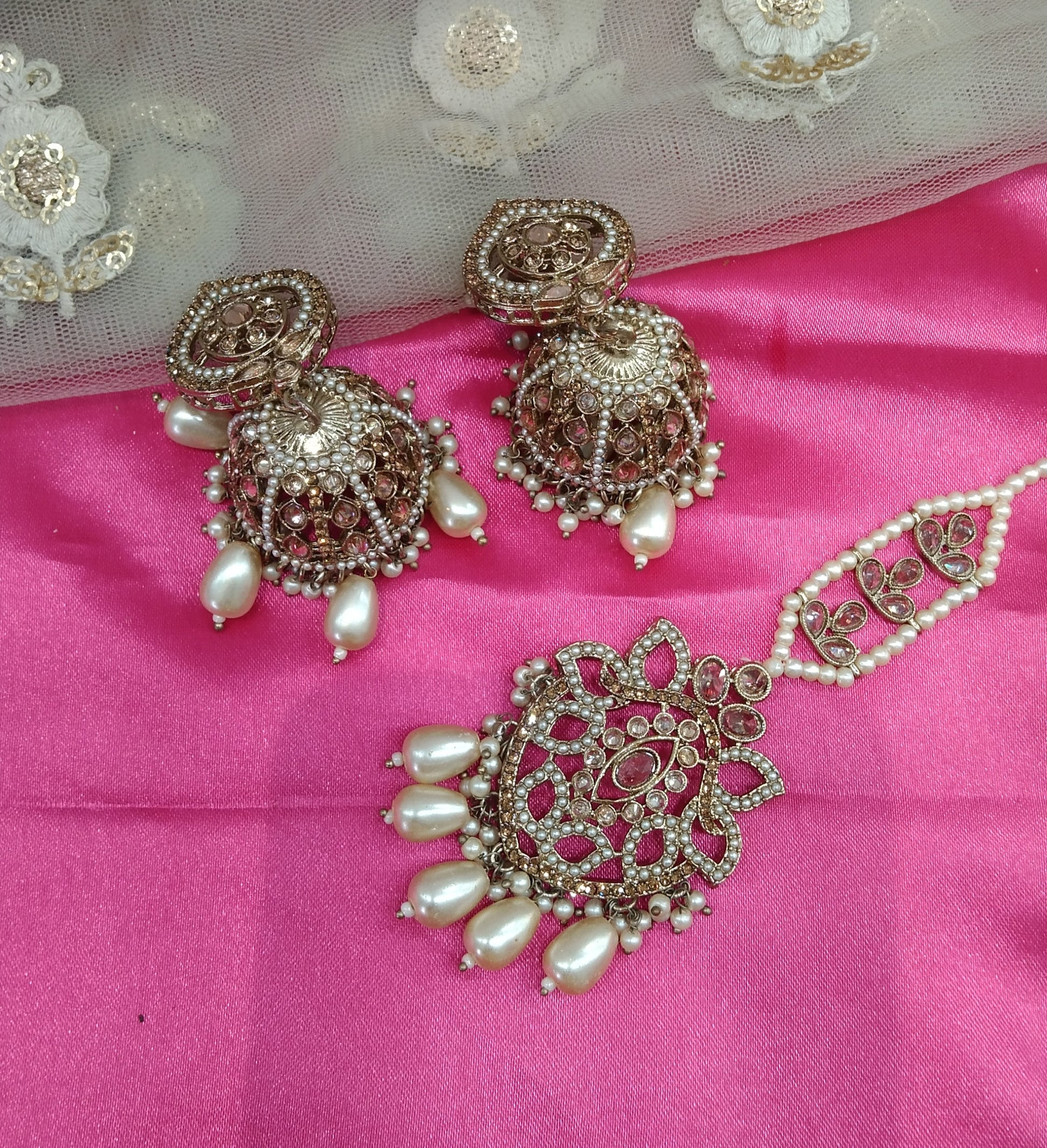 Antique Gold Jhumka Veer Bollywood Earrings Tikka Set