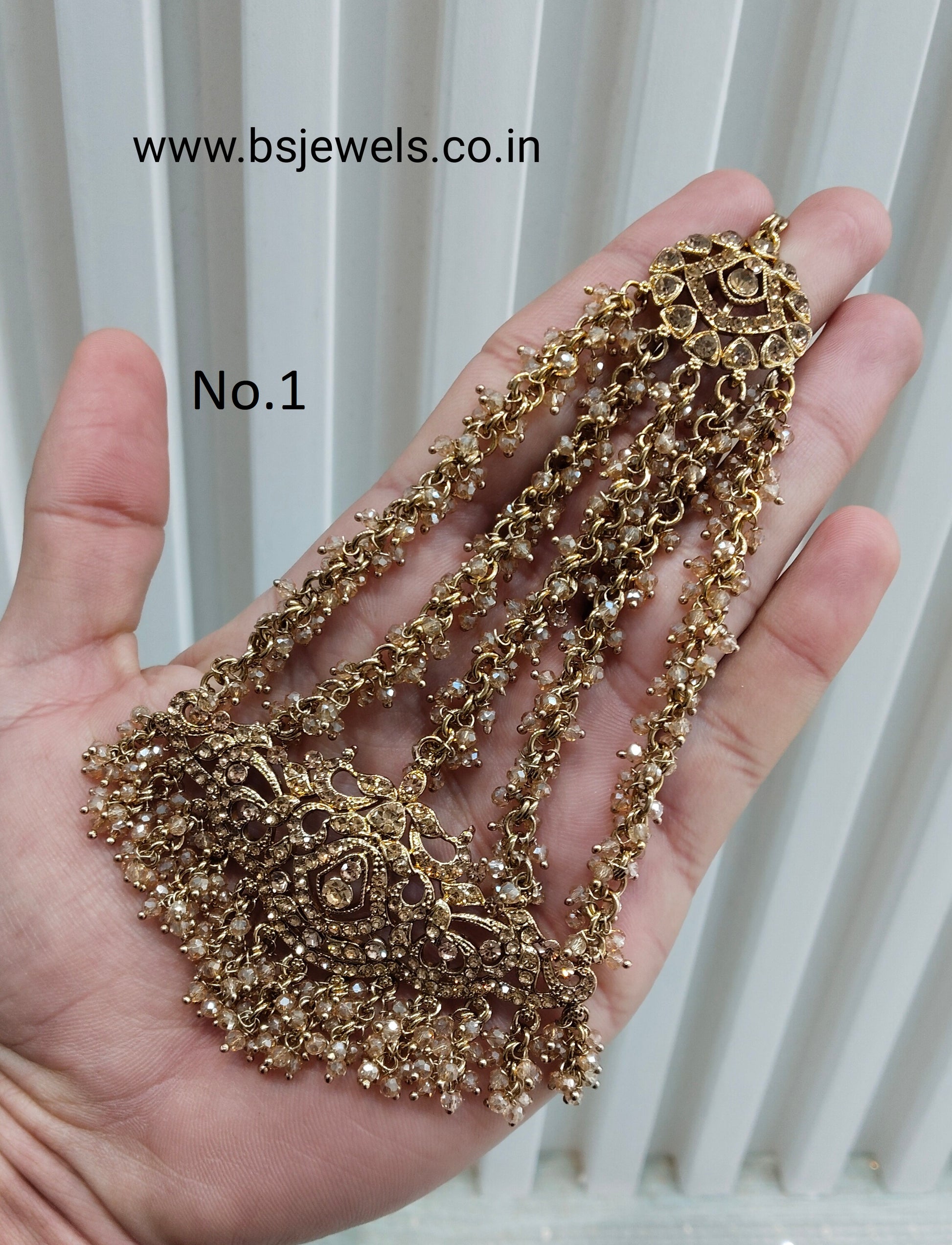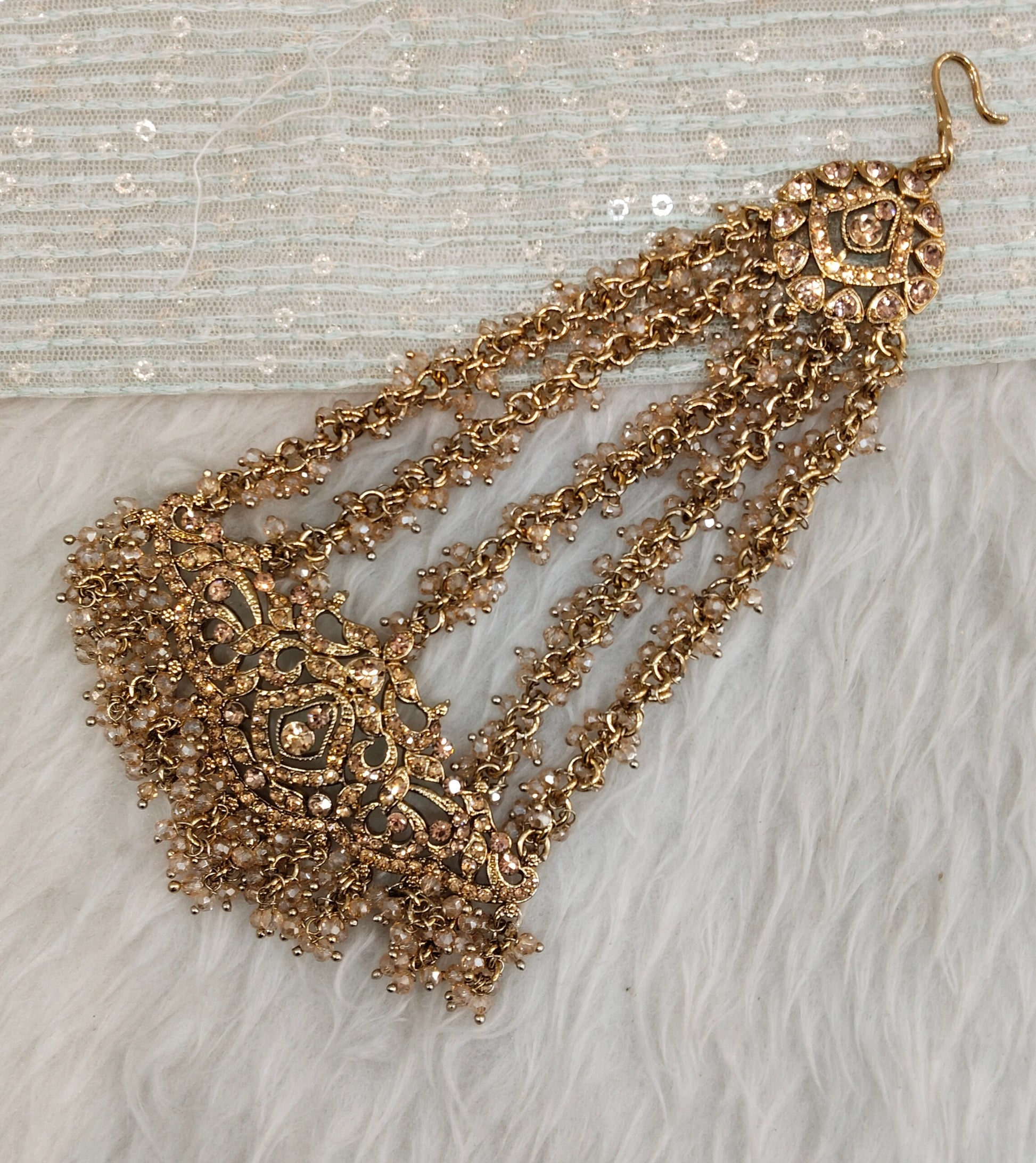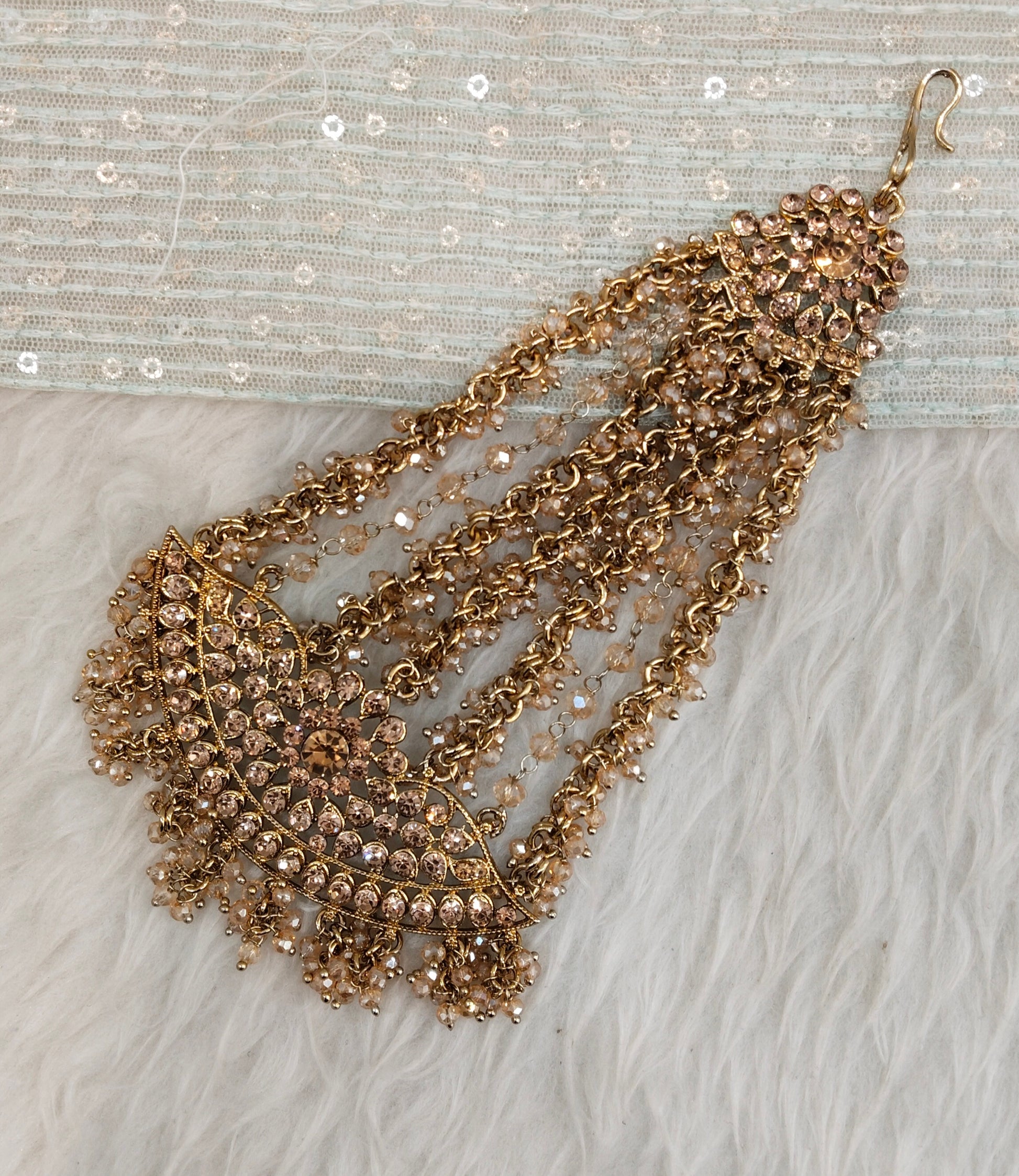 Antique Golden Crystals Headpassa Jhumar Jewellery