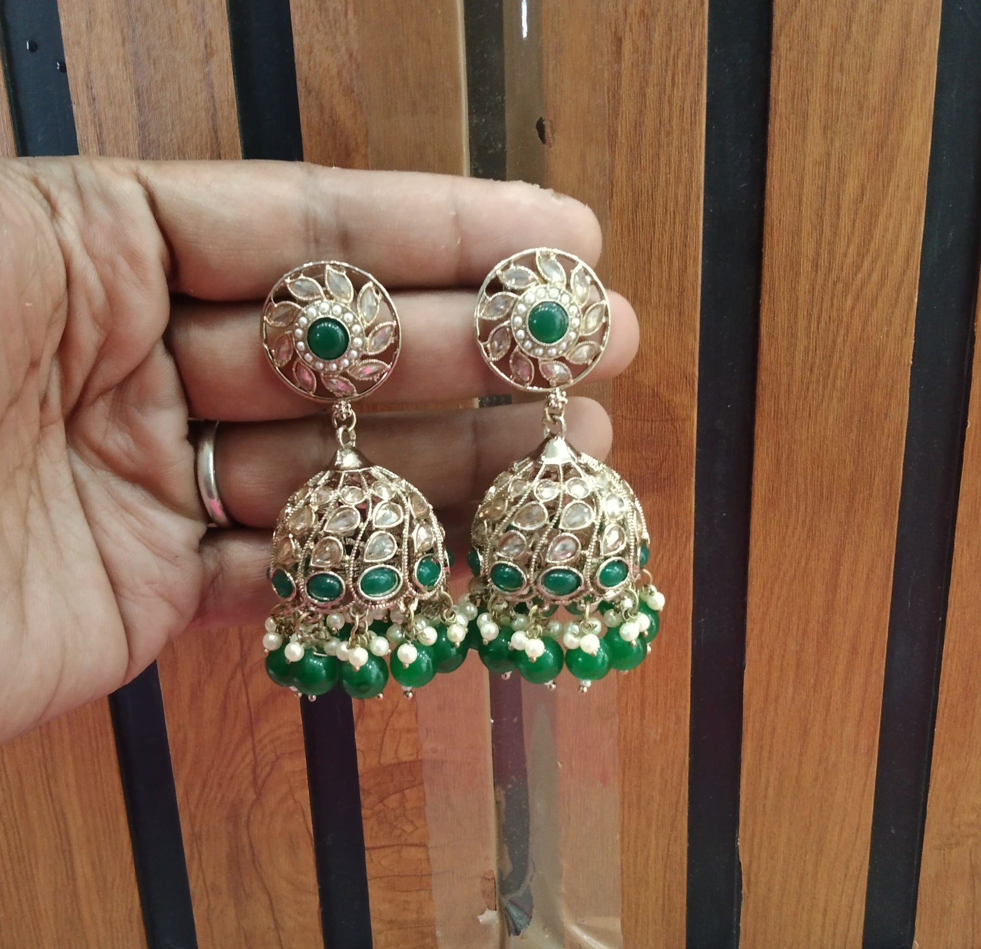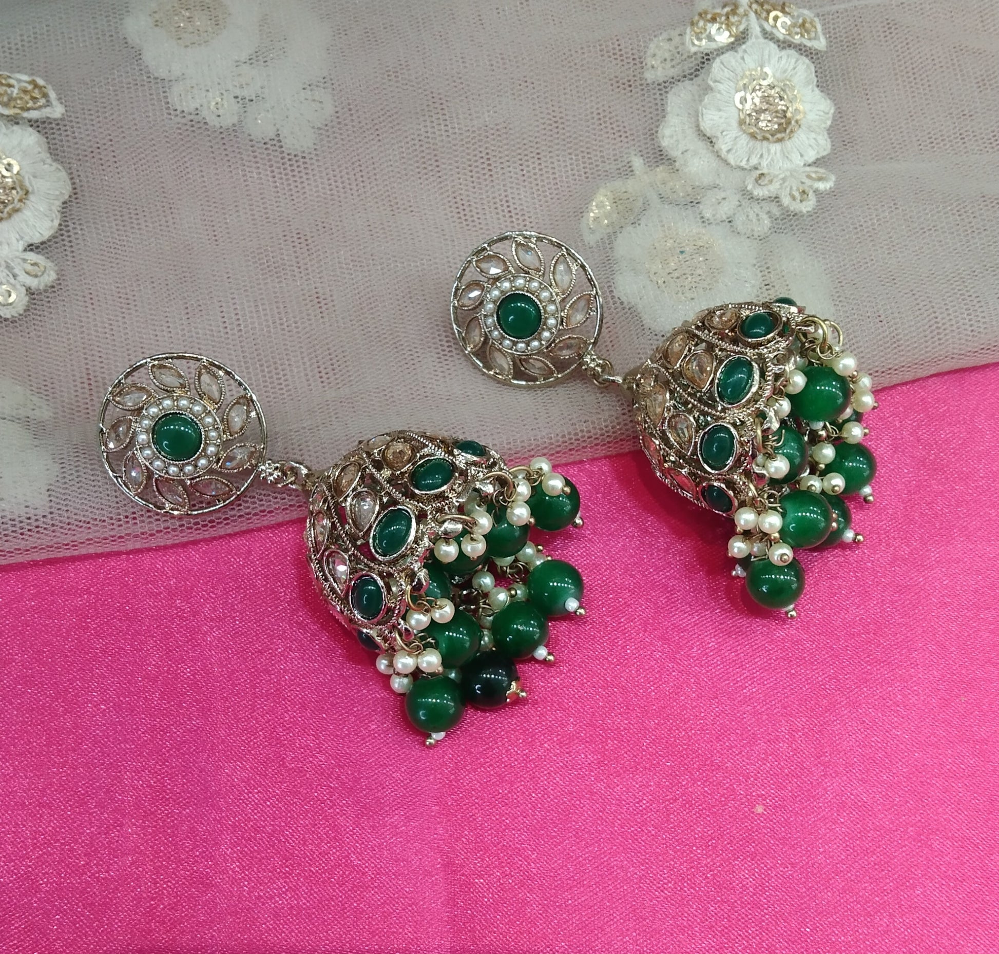 Antique Green Jhumka Suman Bollywood Earrings
