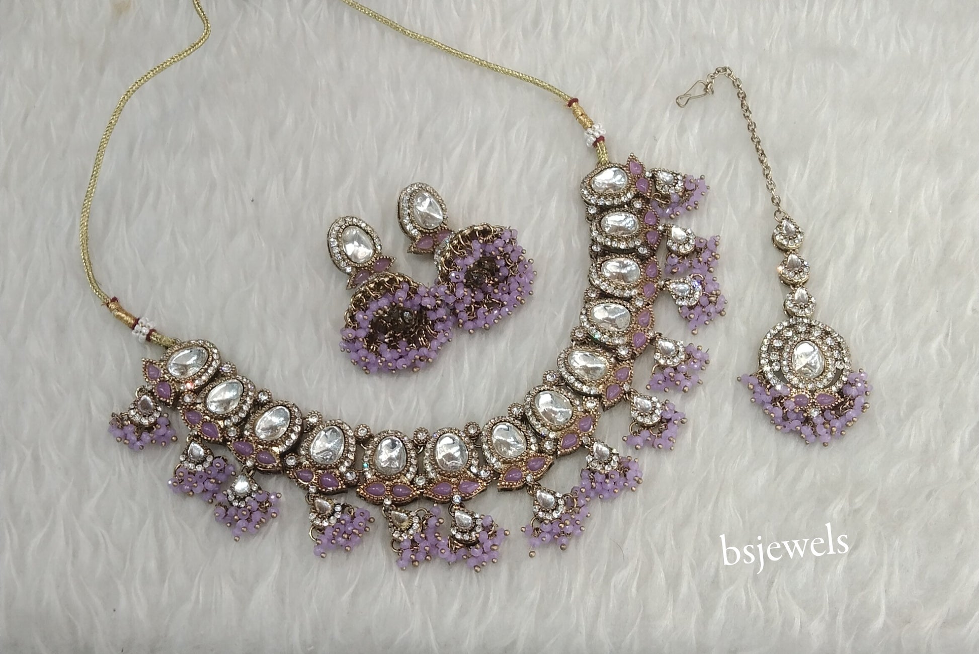 Antique Purple Kundan Necklace Jewellery Geet Set