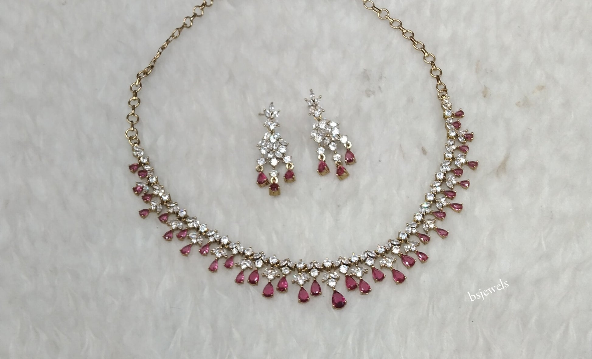 Antique Ruby American Diamond Ad Emery Necklace Sets