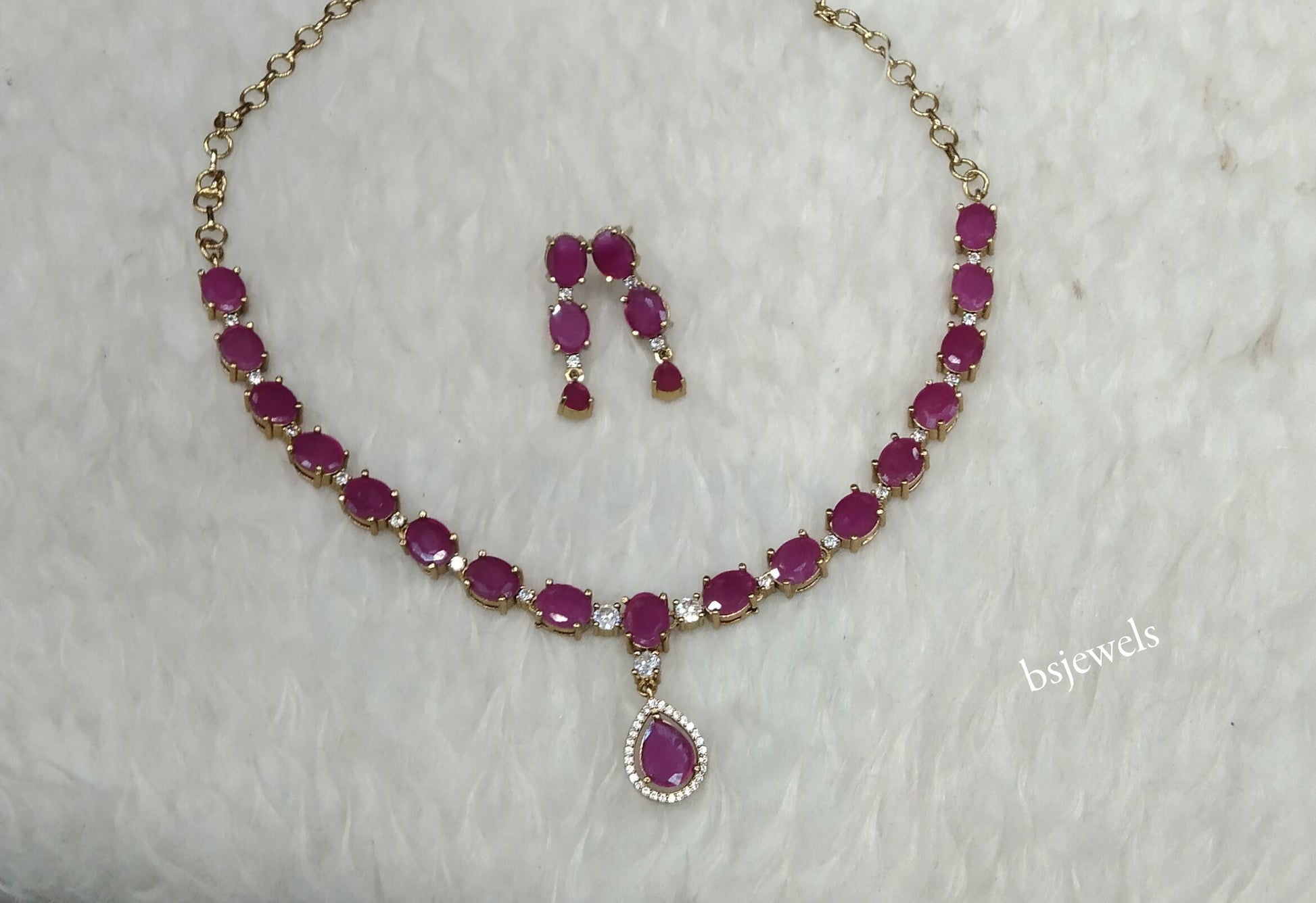 Antique Ruby American Diamond Ad Finley Necklace Sets