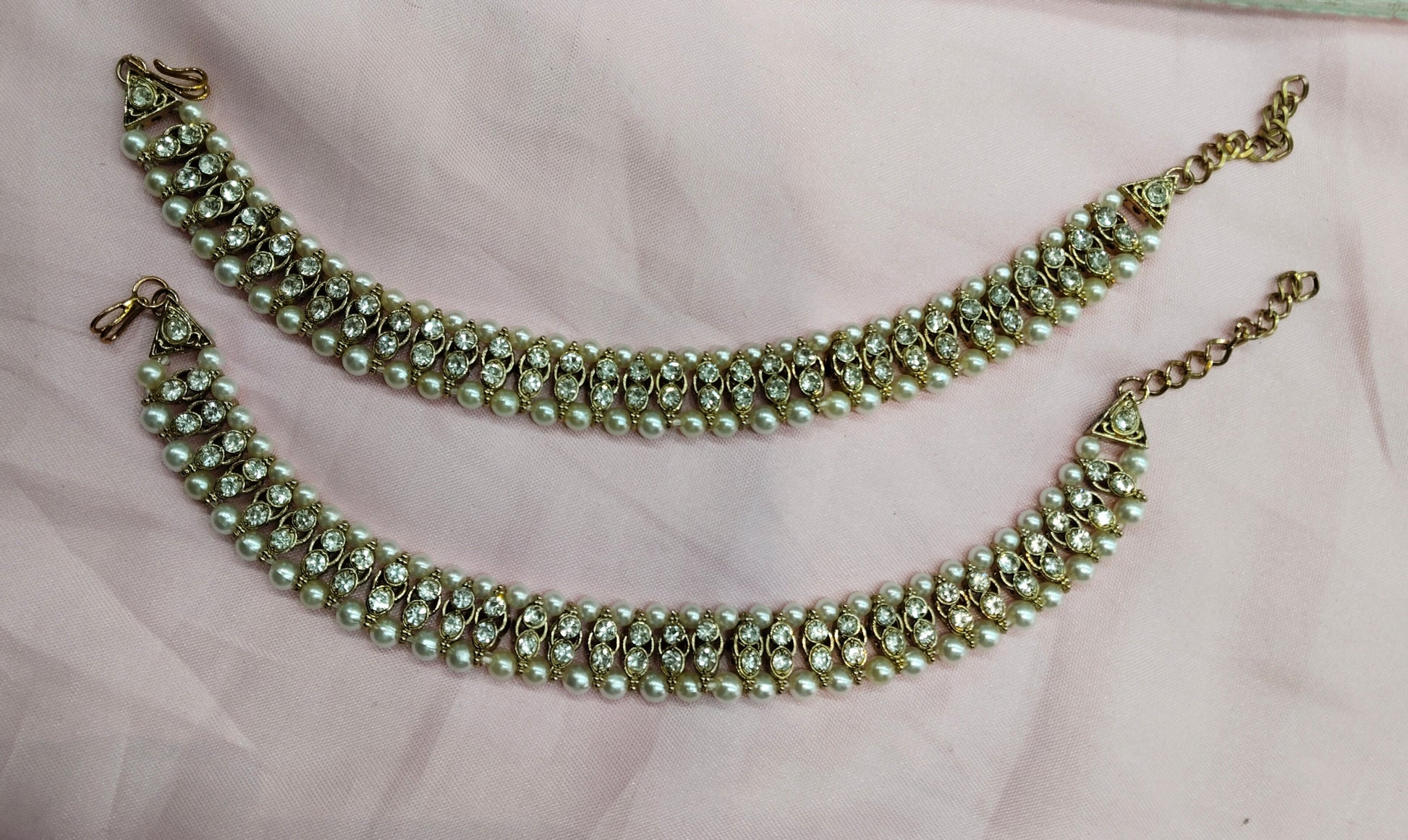 Antique White Anklets Jhanjar Payal Jewellery Prince Set