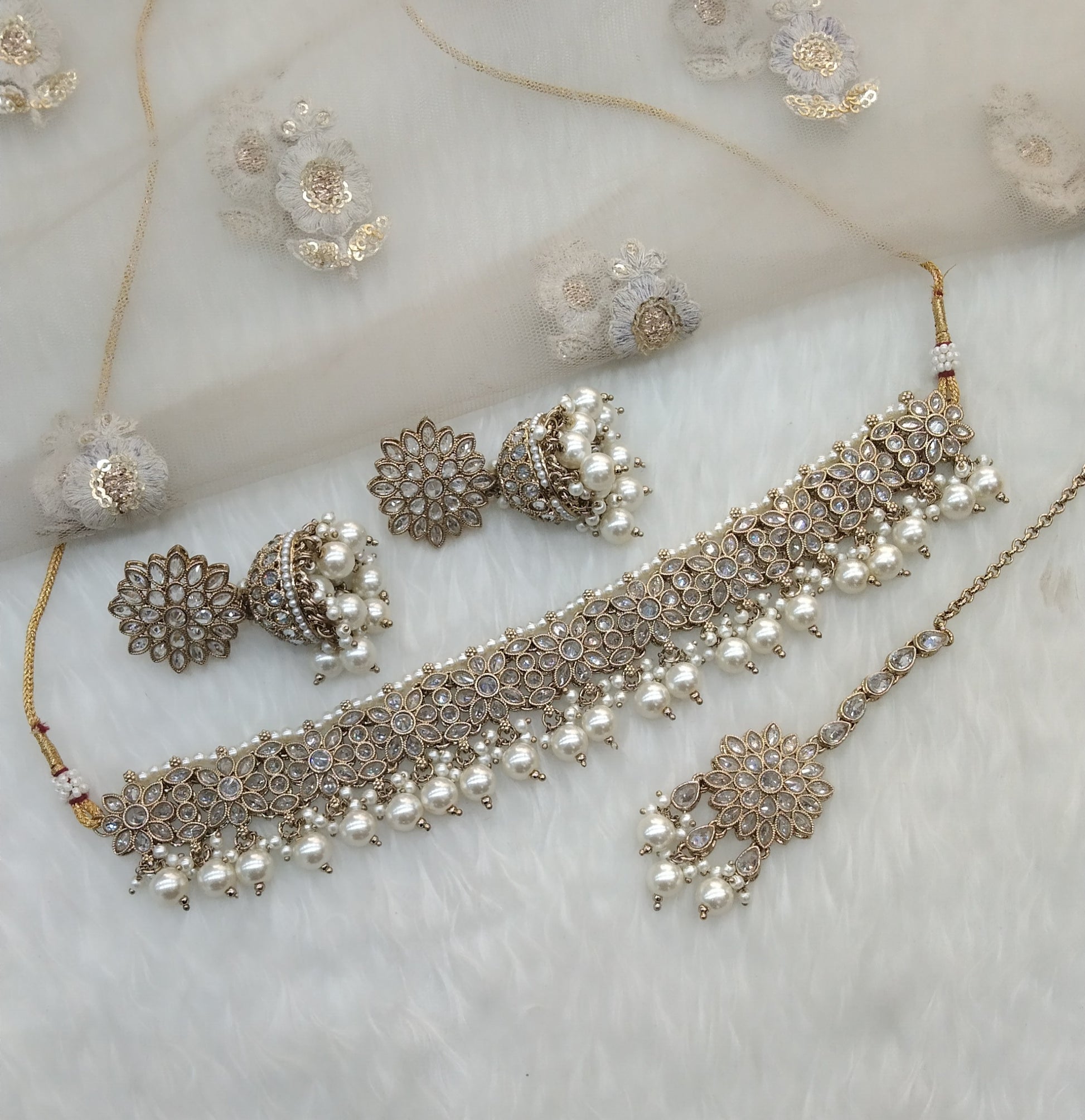 Antique White Choker Jewellery Area Set