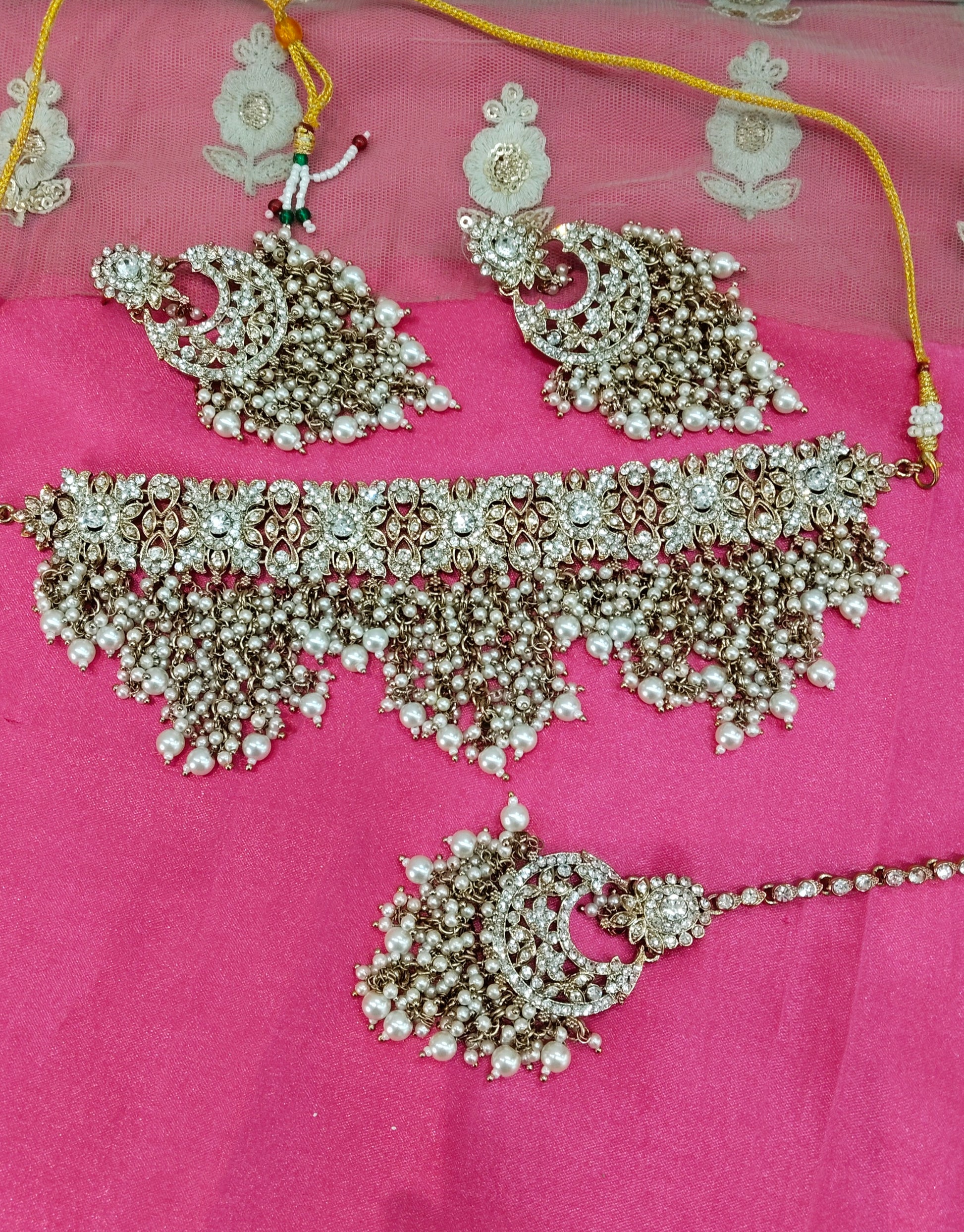 Antique White Crystal Stone Choker Jewellery Siraj Set