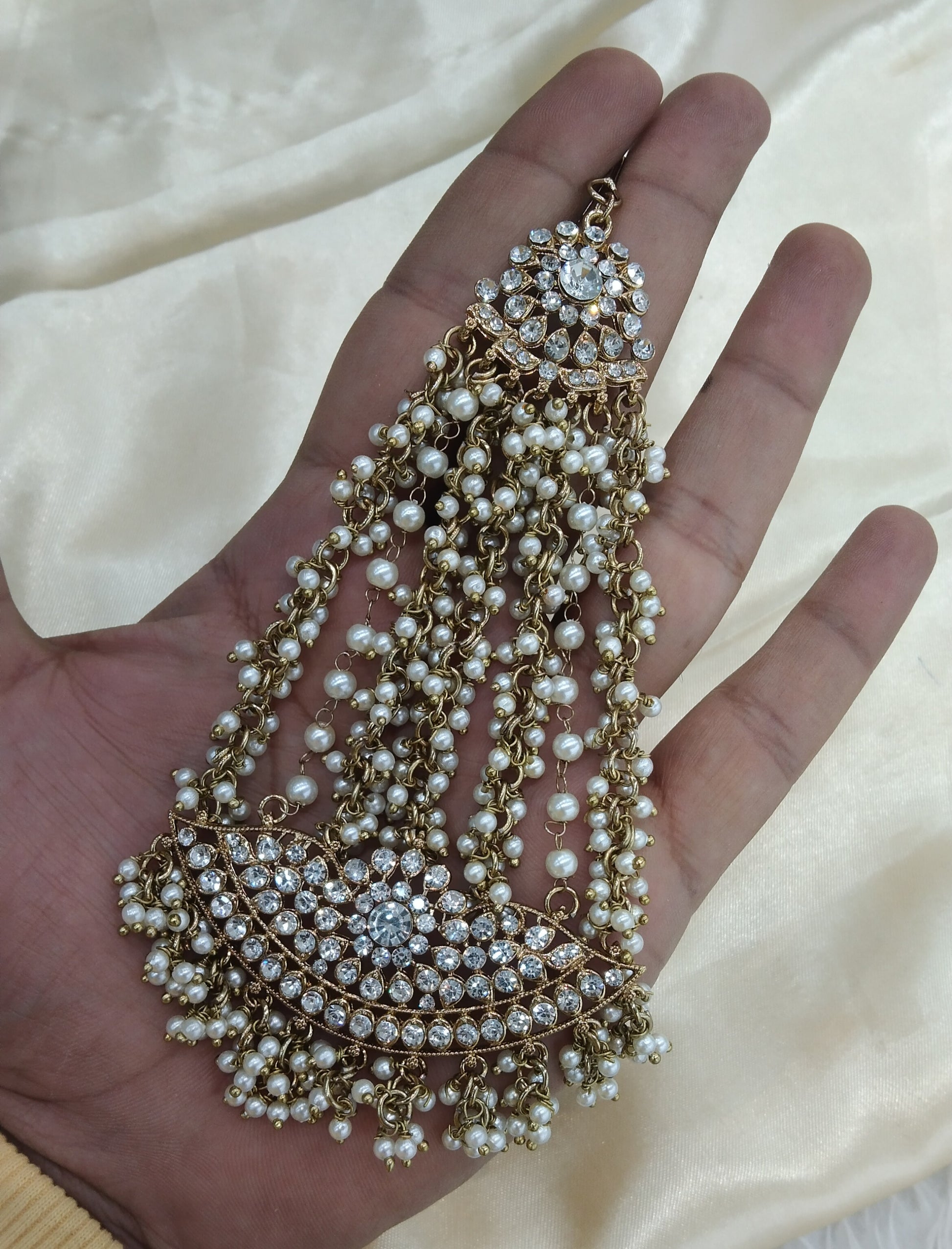 Antique White Crystals Headpassa Jhumar Kundan Jhoomer Jewellery