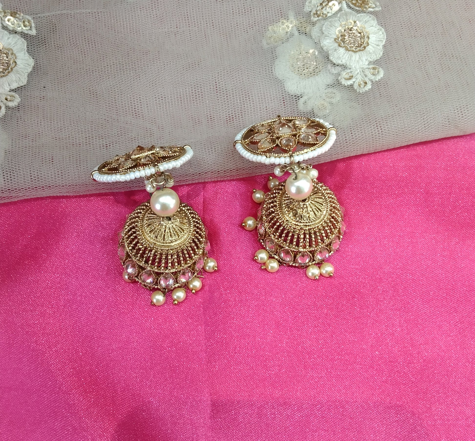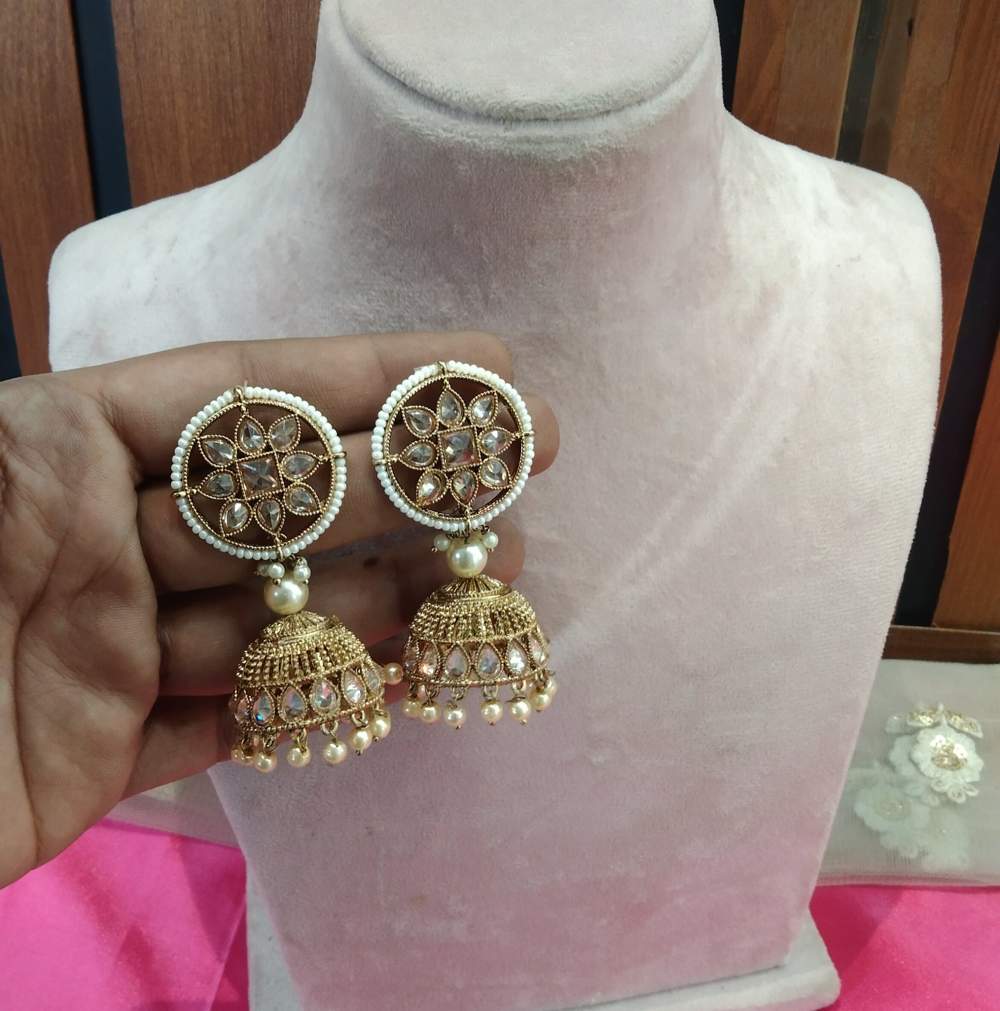 Antique White Kundan Jumka Golden Bollywood Earrings