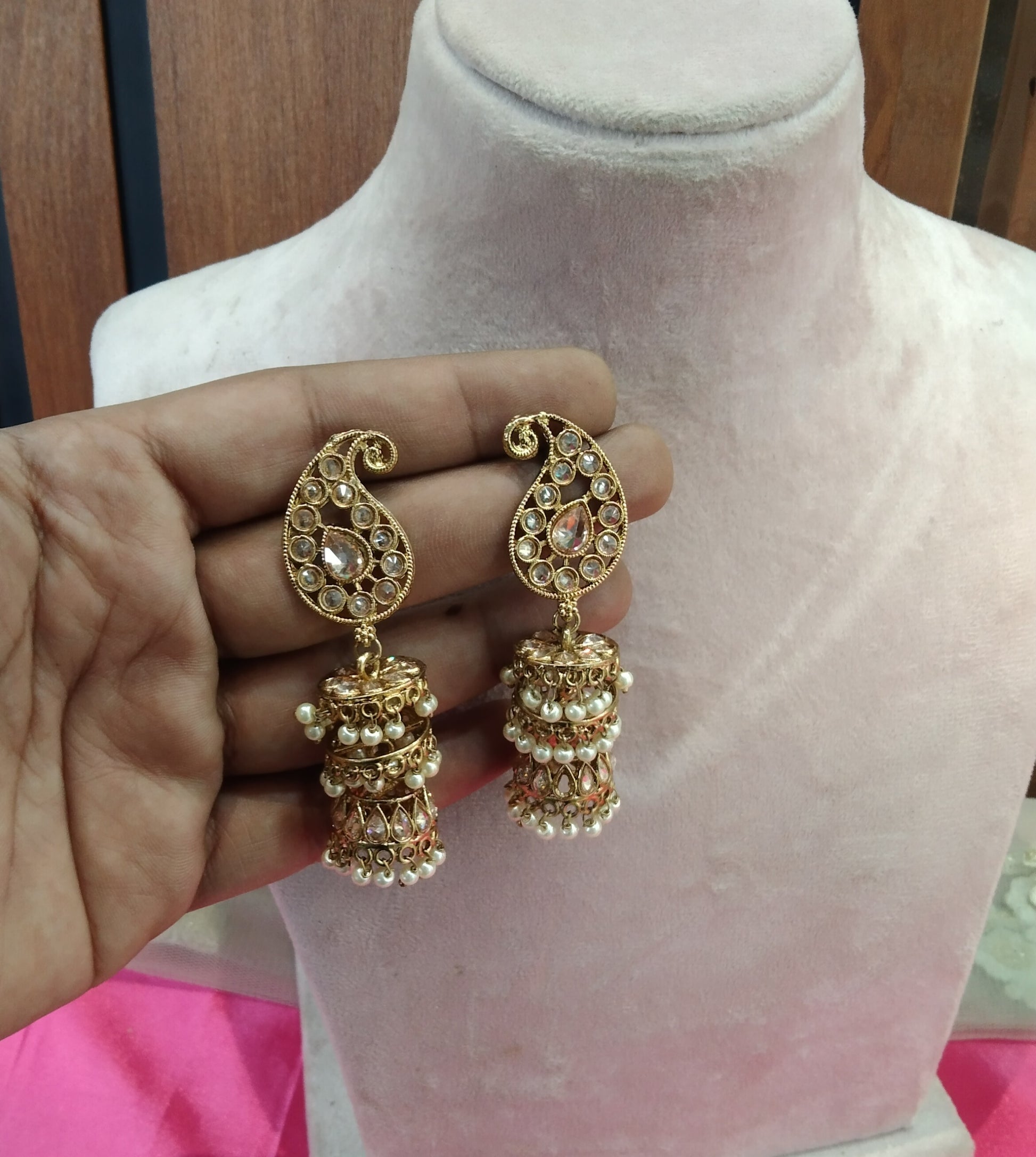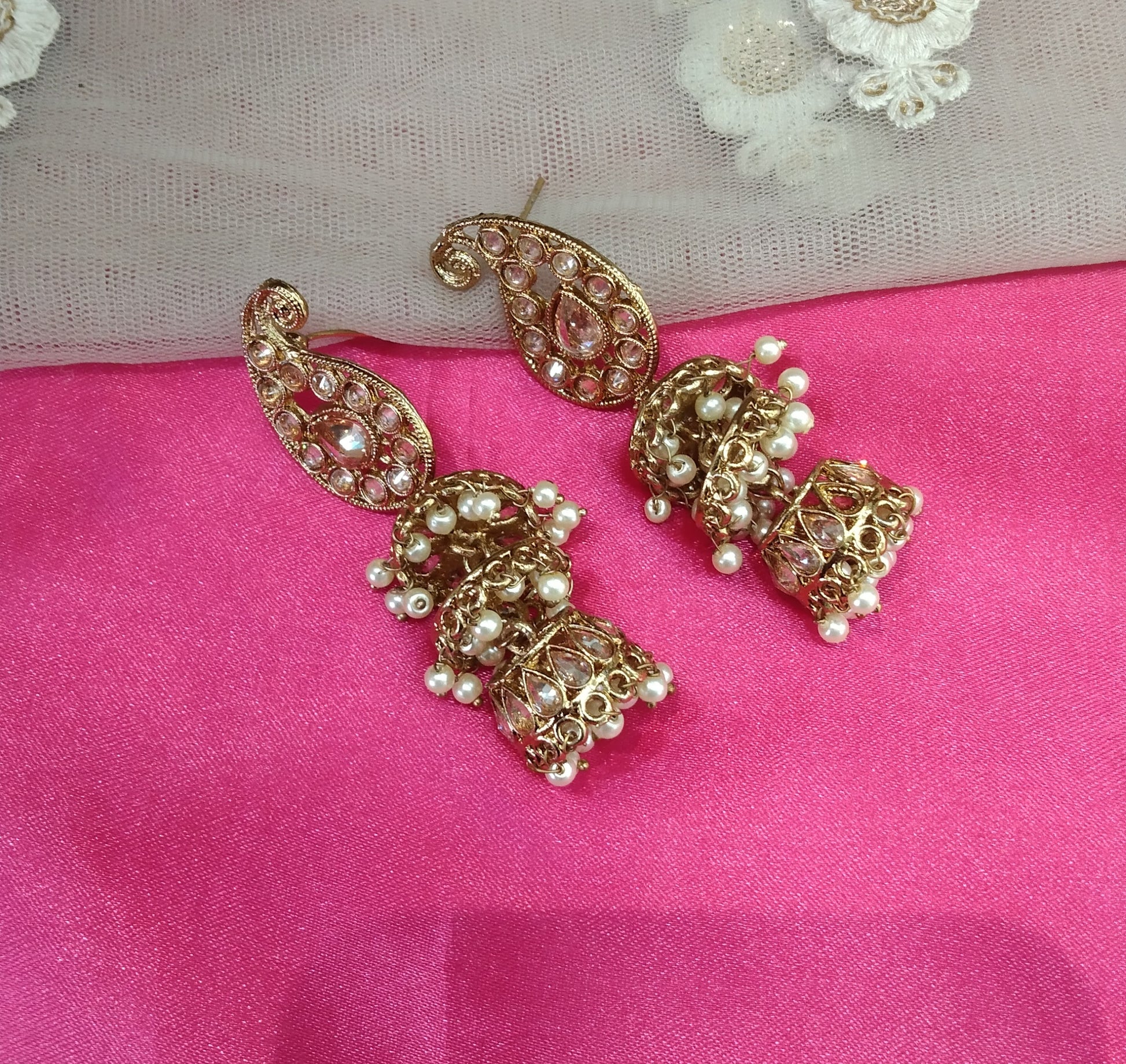 Antique White Kundan Jumka Golden Bollywood Earrings