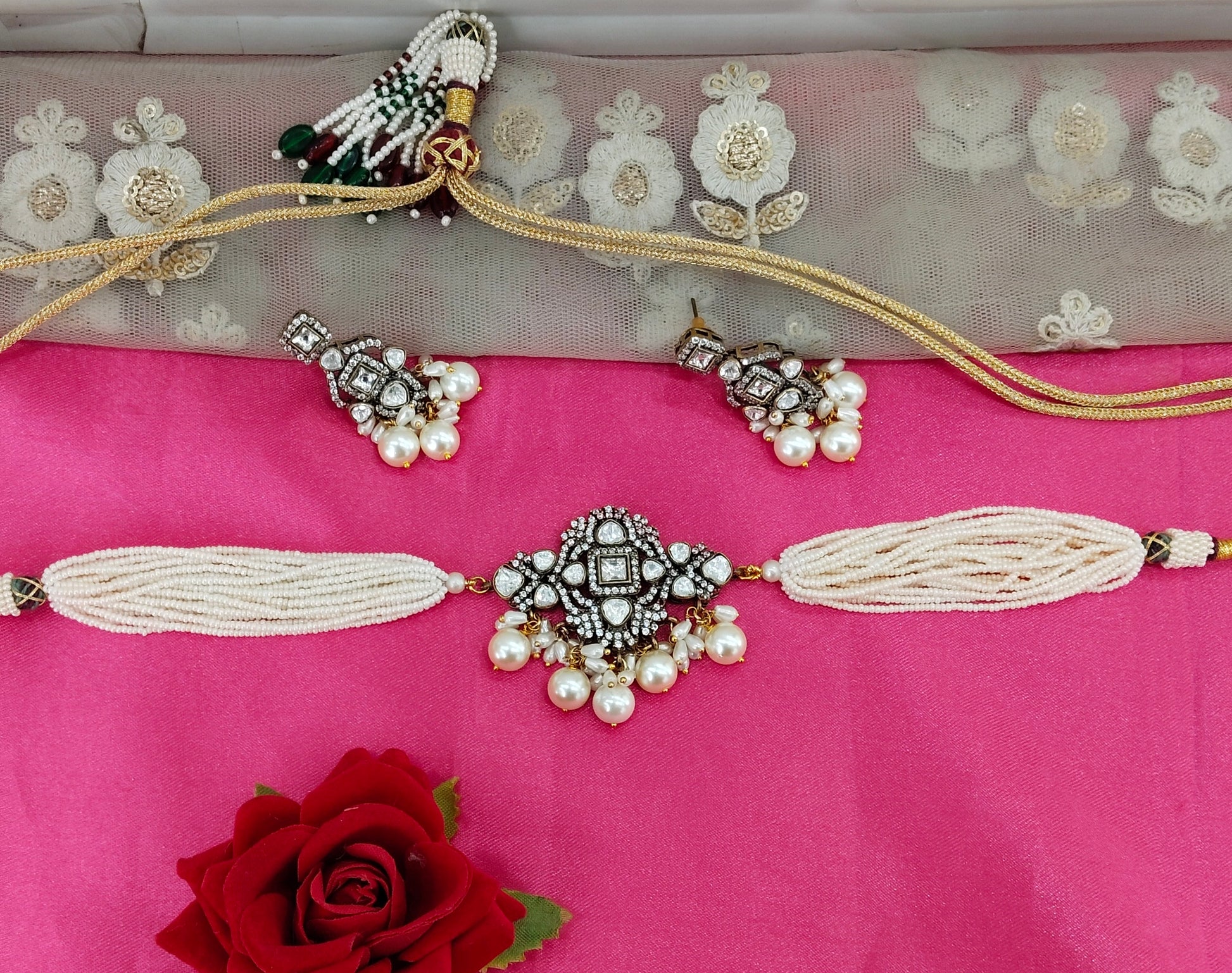 *Moissanite kundan Choker set with earrings .