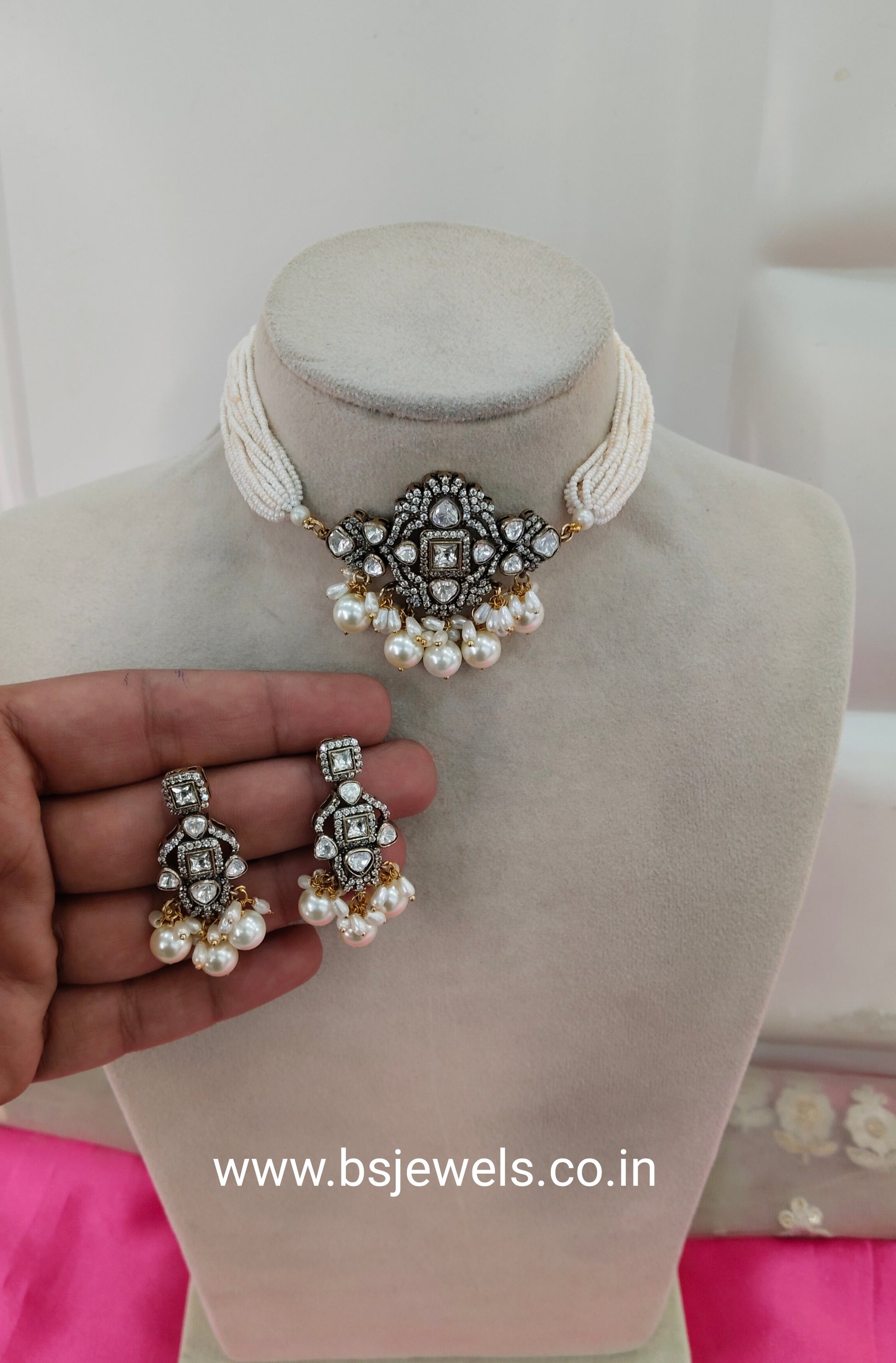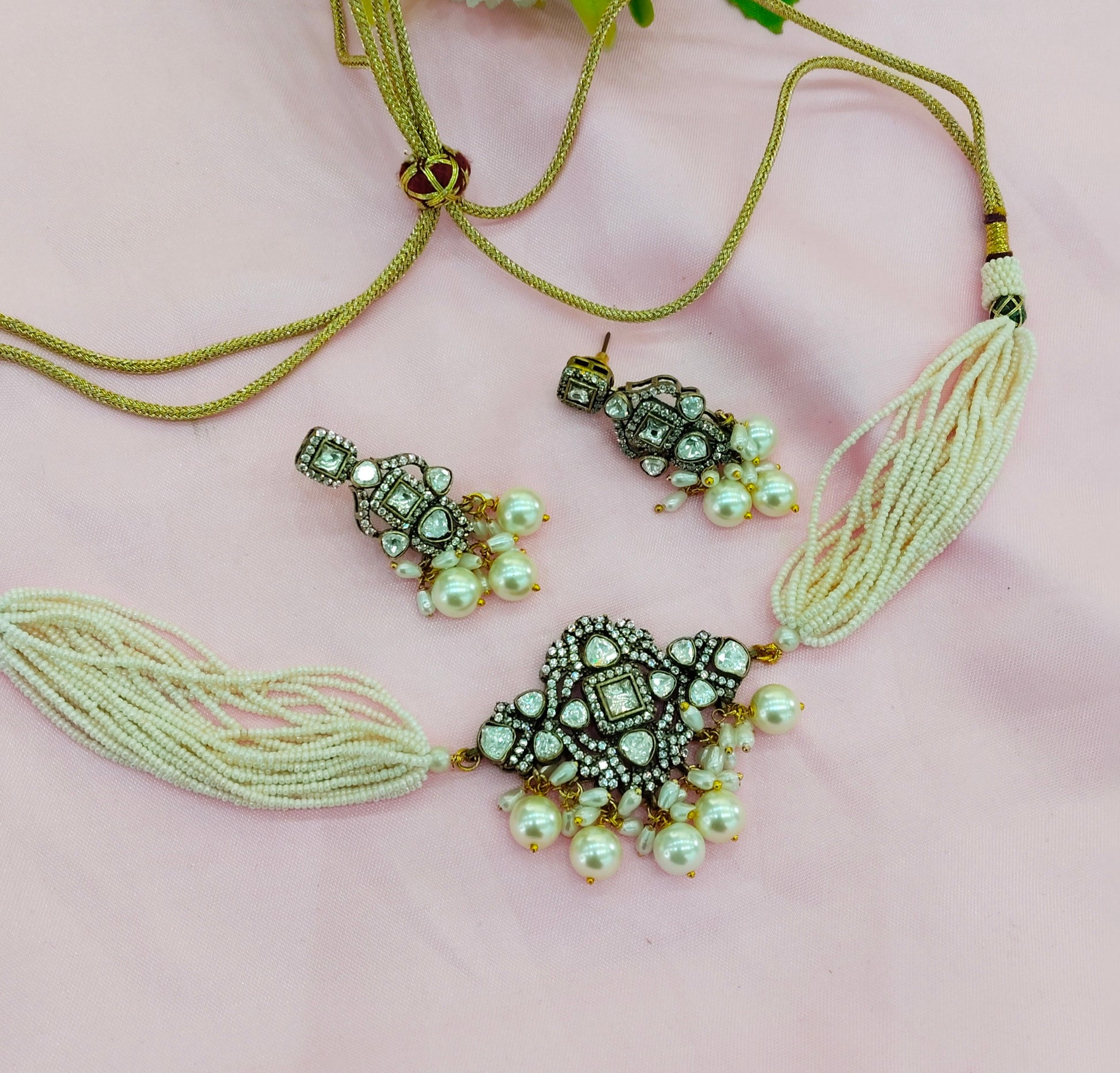 Antique White Moissanite Kundan Choker Jewellery Sunita Set