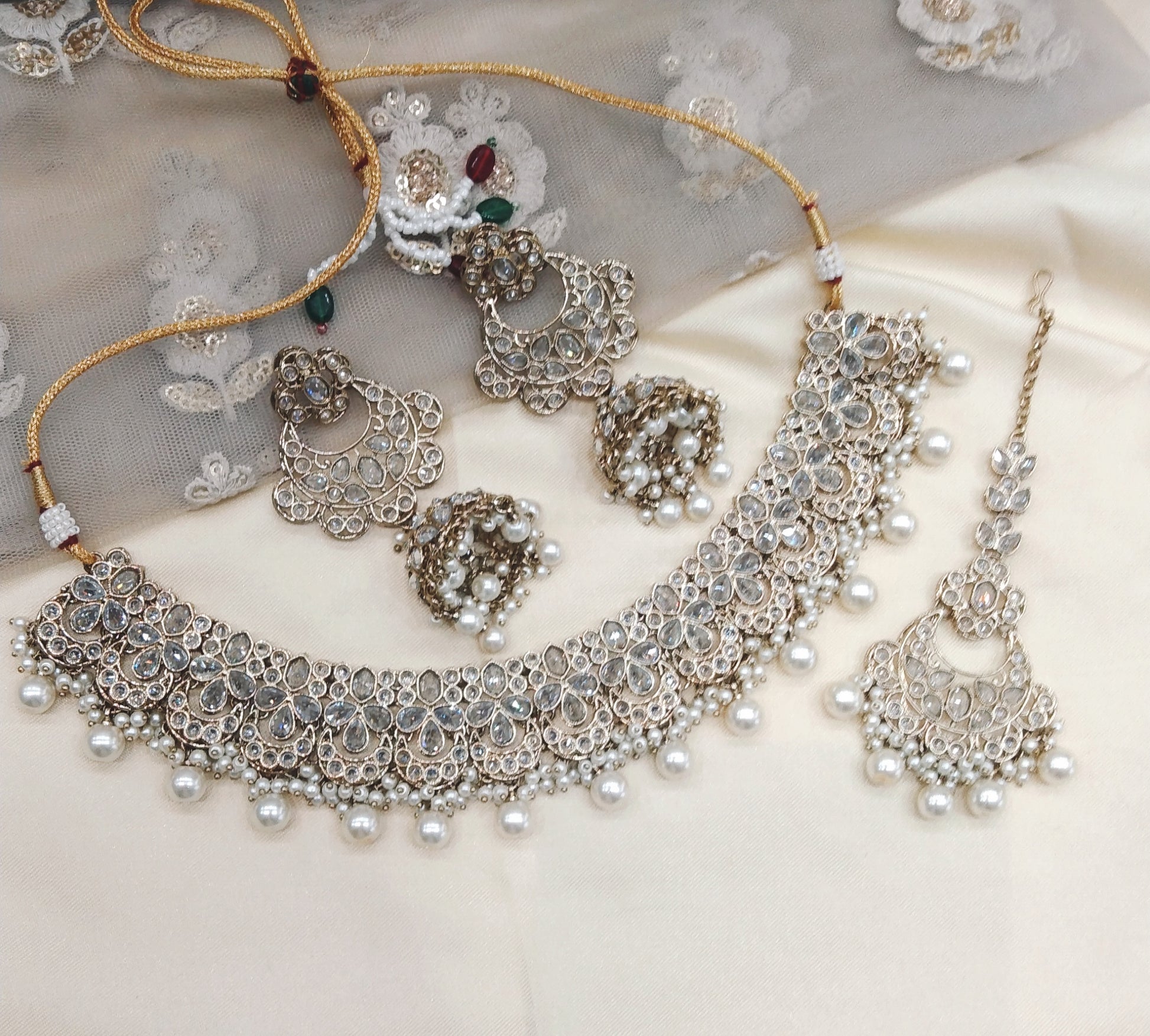 Antique White Necklace Jewellery Check Set