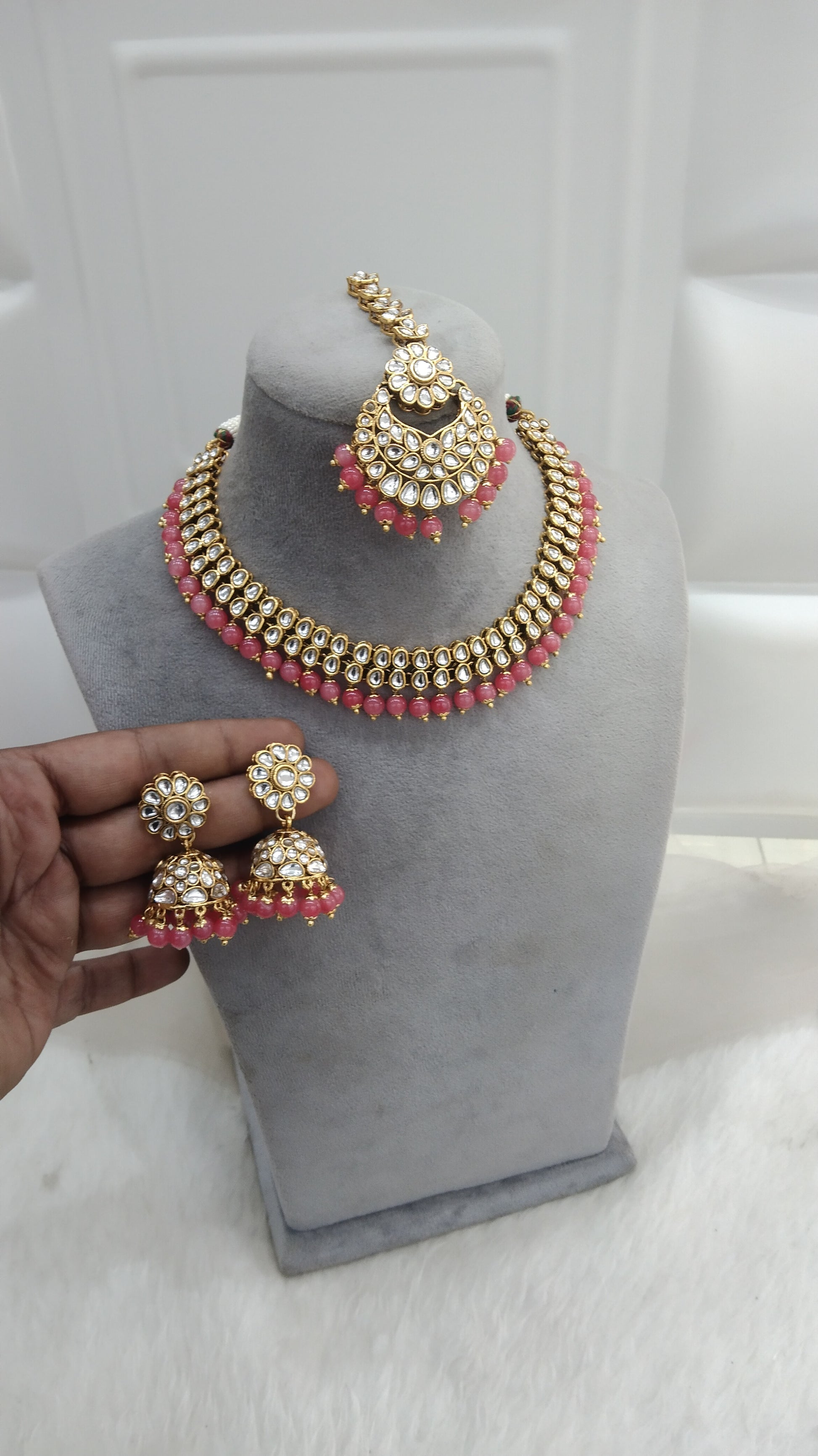 *Kundan necklace set with earrings and tikka.