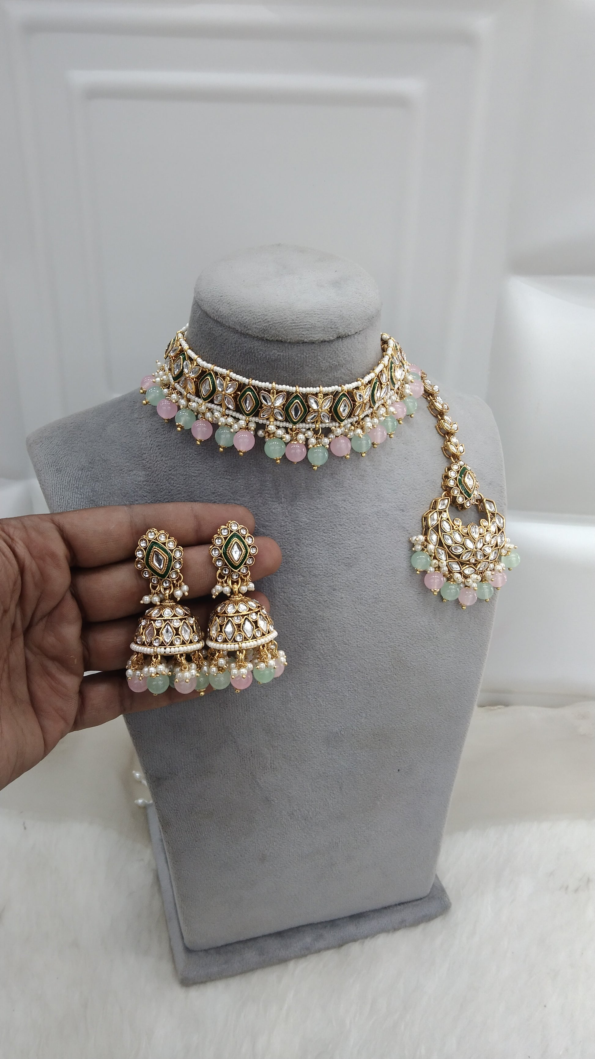 *Kundan Choker set with earrings and tikka.