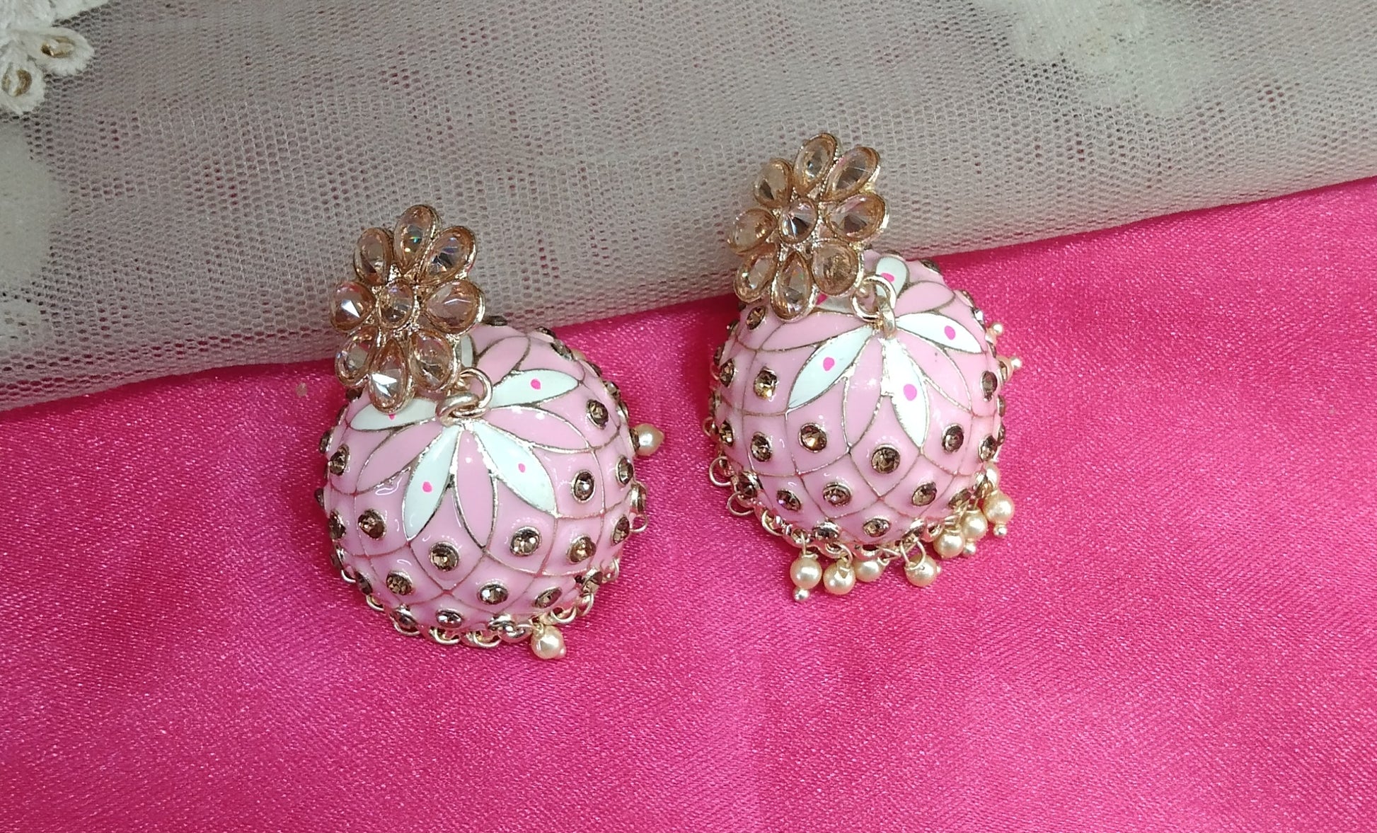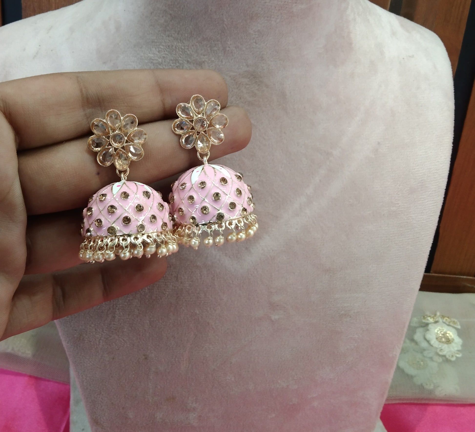 Baby Pink Kundan Jhumka Honey Bollywood Earrings