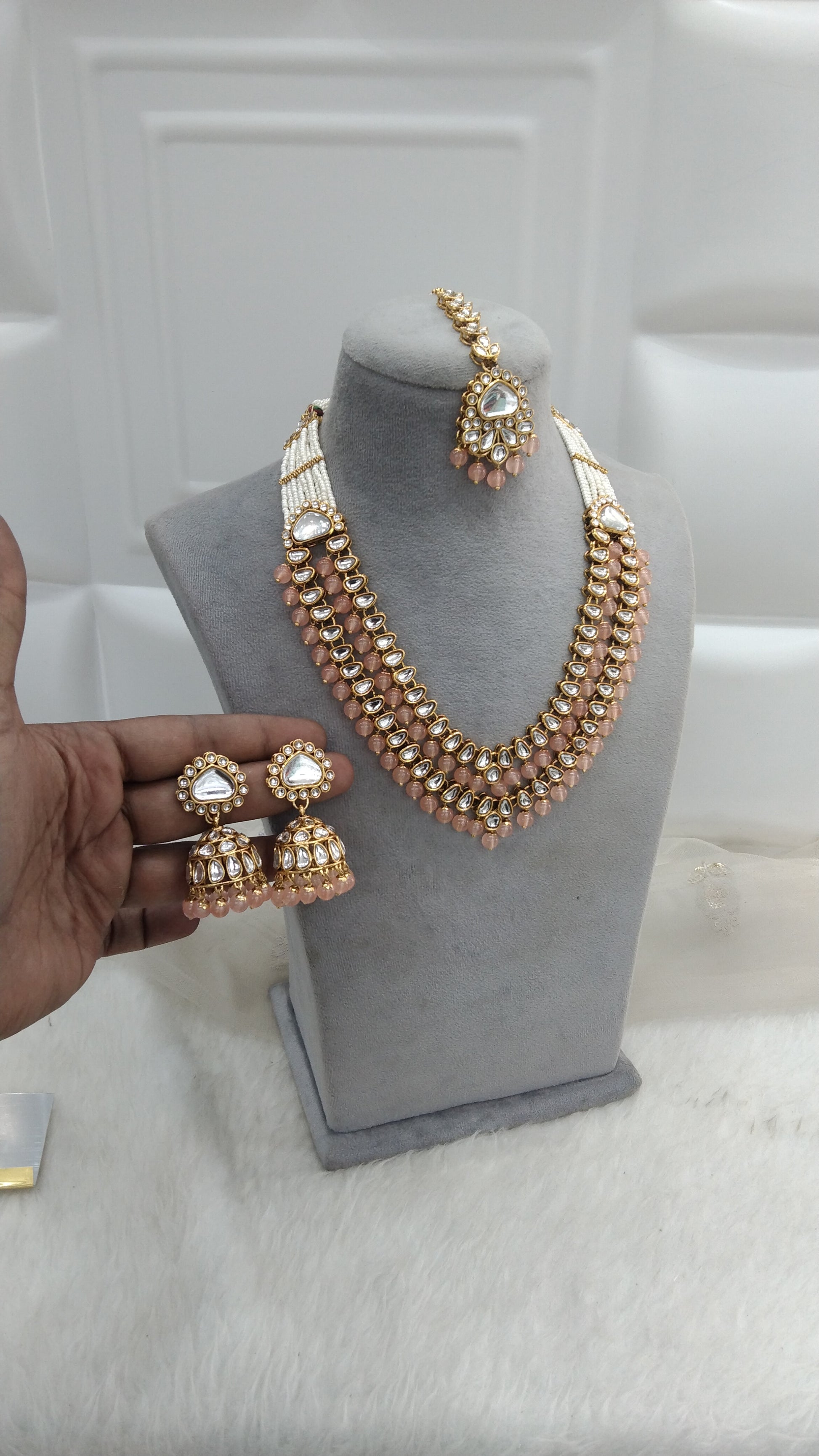 Bansuri Peach Kundan Layered Necklace Jewellery Set
