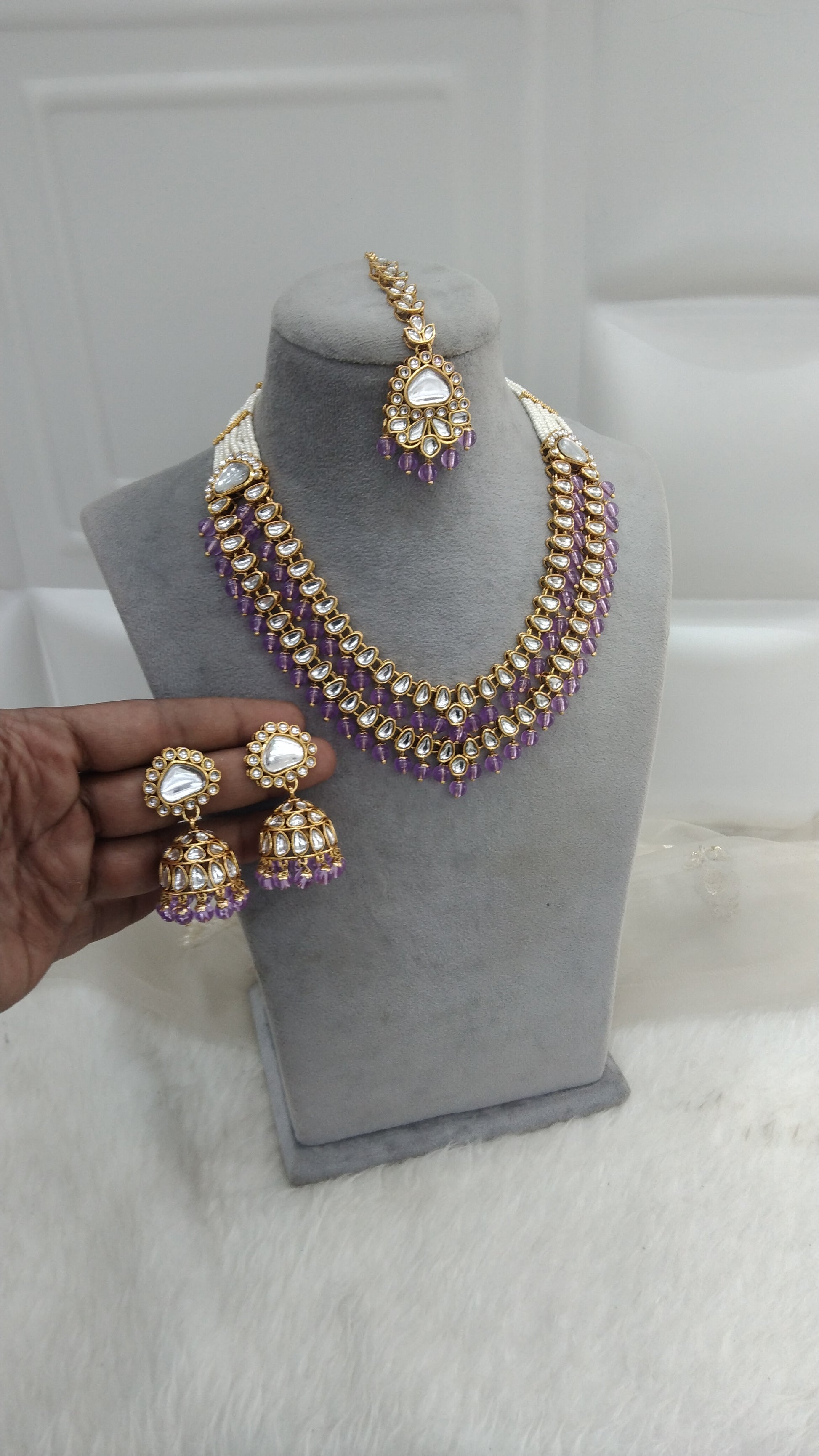 Bansuri Lavender Kundan Layered Necklace Jewellery Set