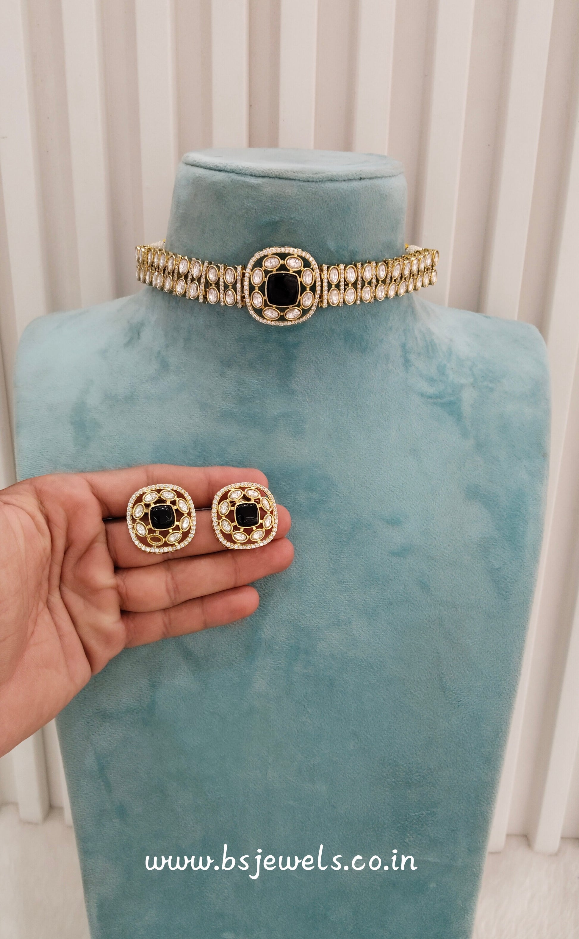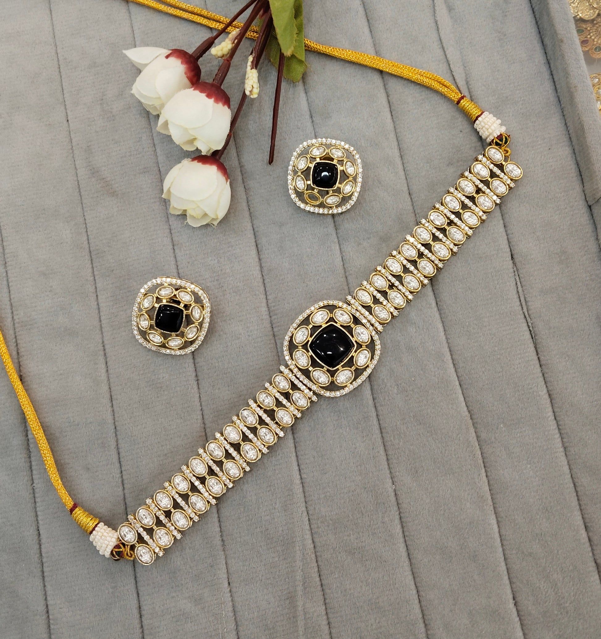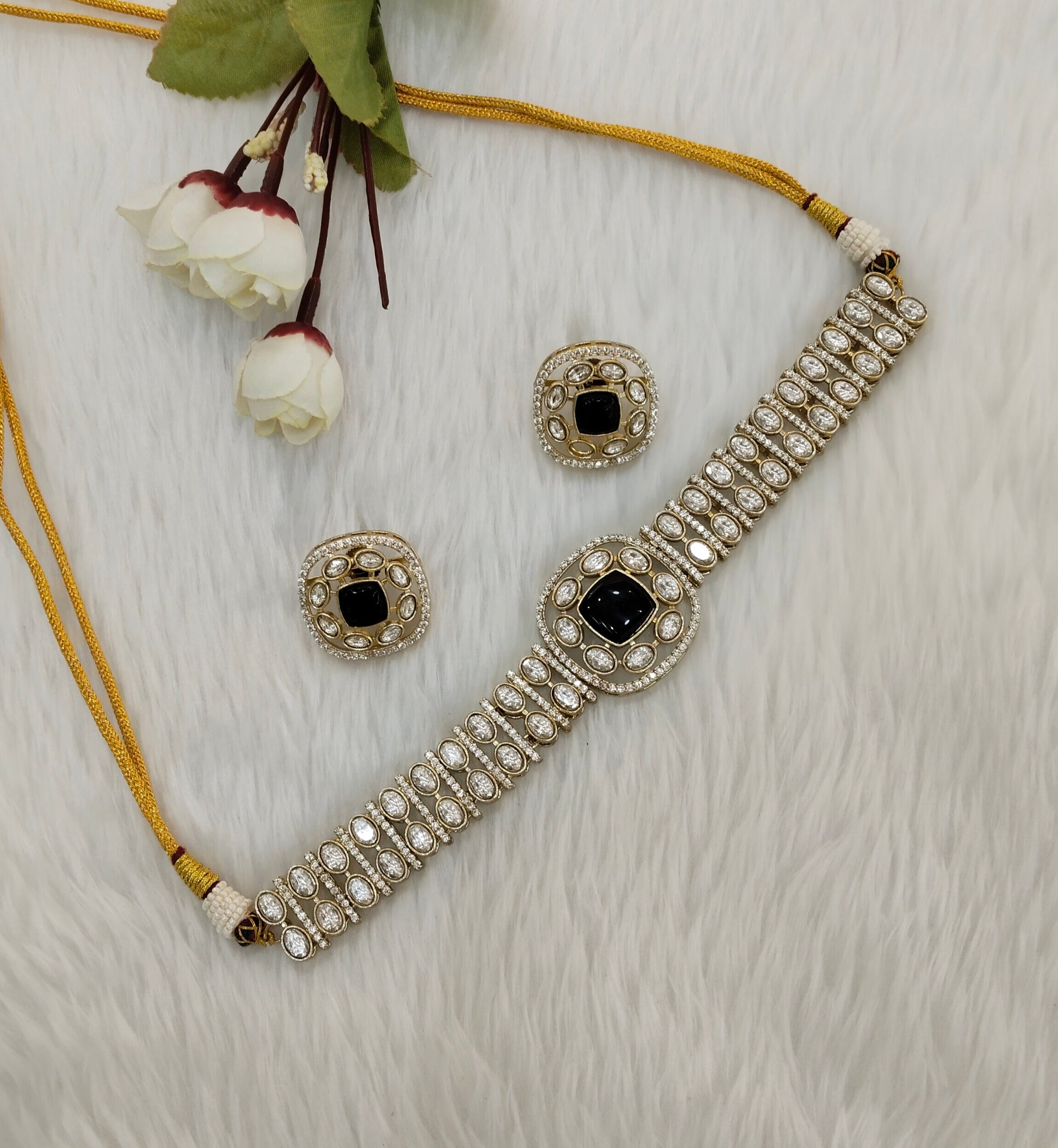 Black Moissanite Kundan Choker Jewellery Farmtrack Set