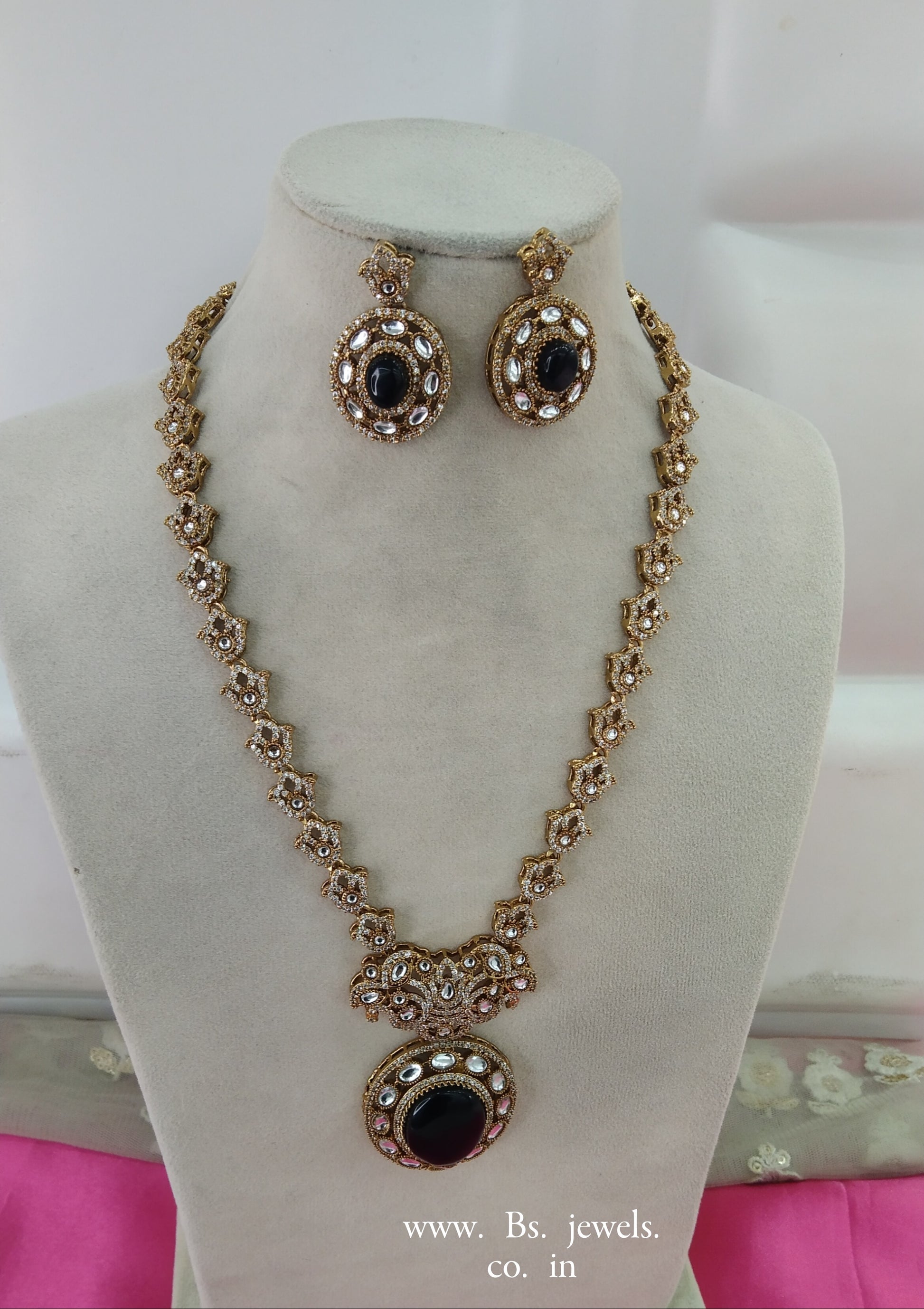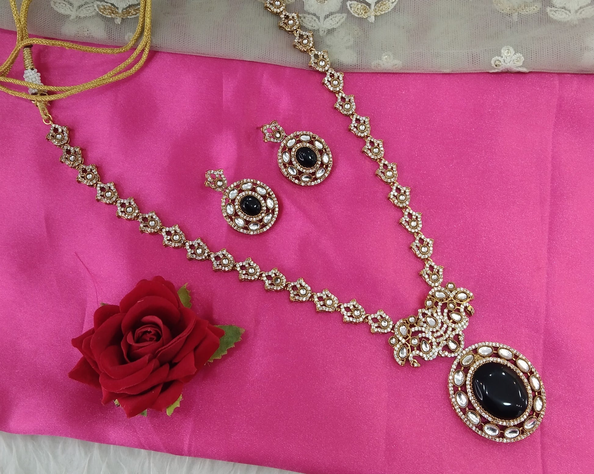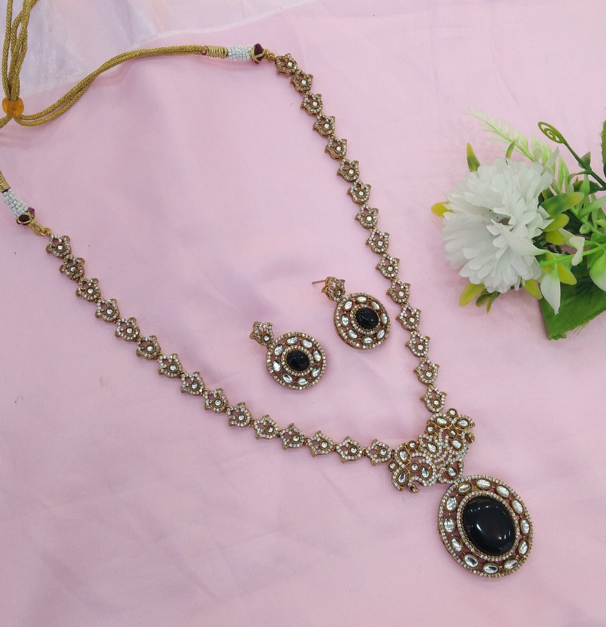 Black Moissanite Kundan Long Ranihaar Necklace Jewellery Sunita Set