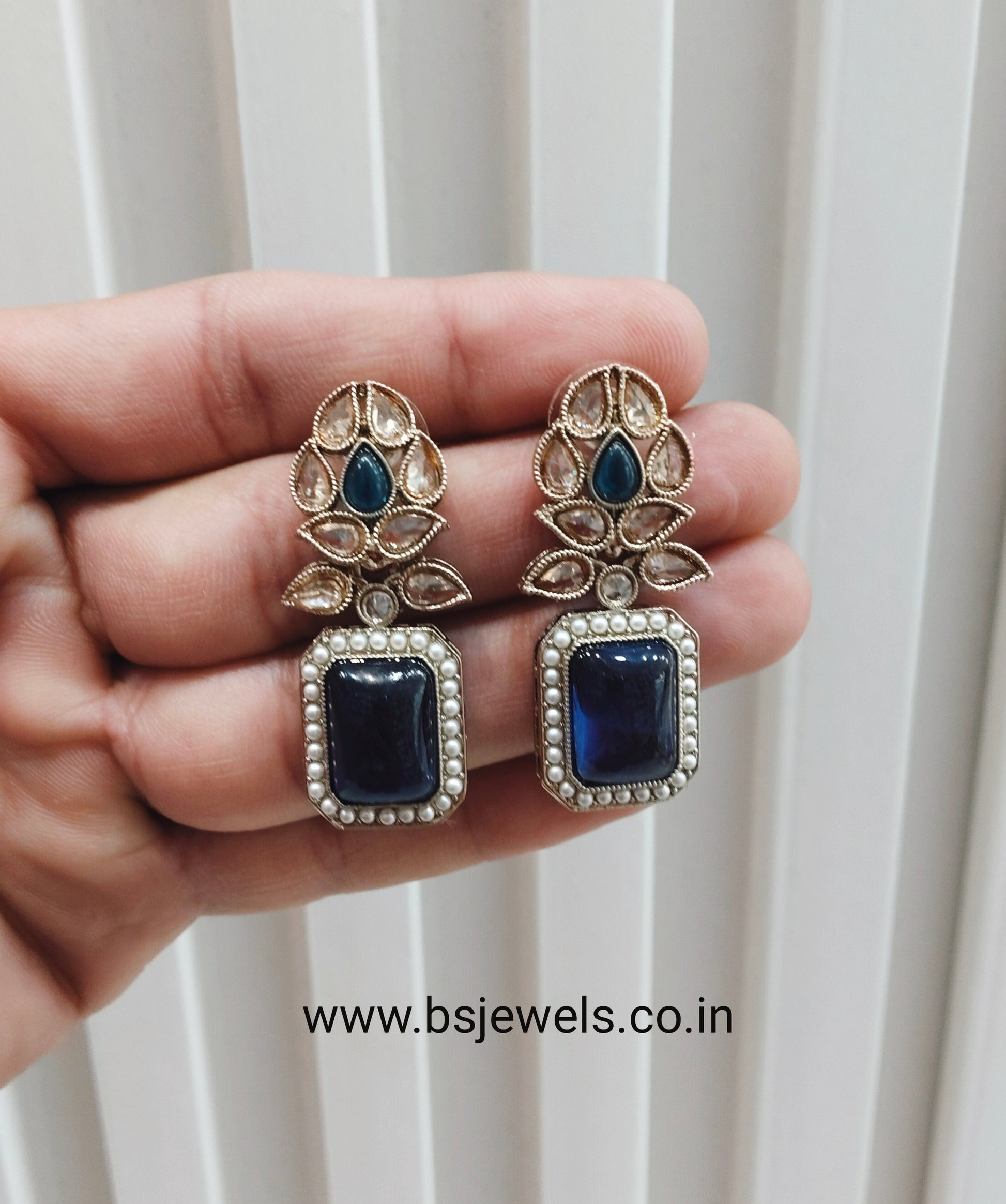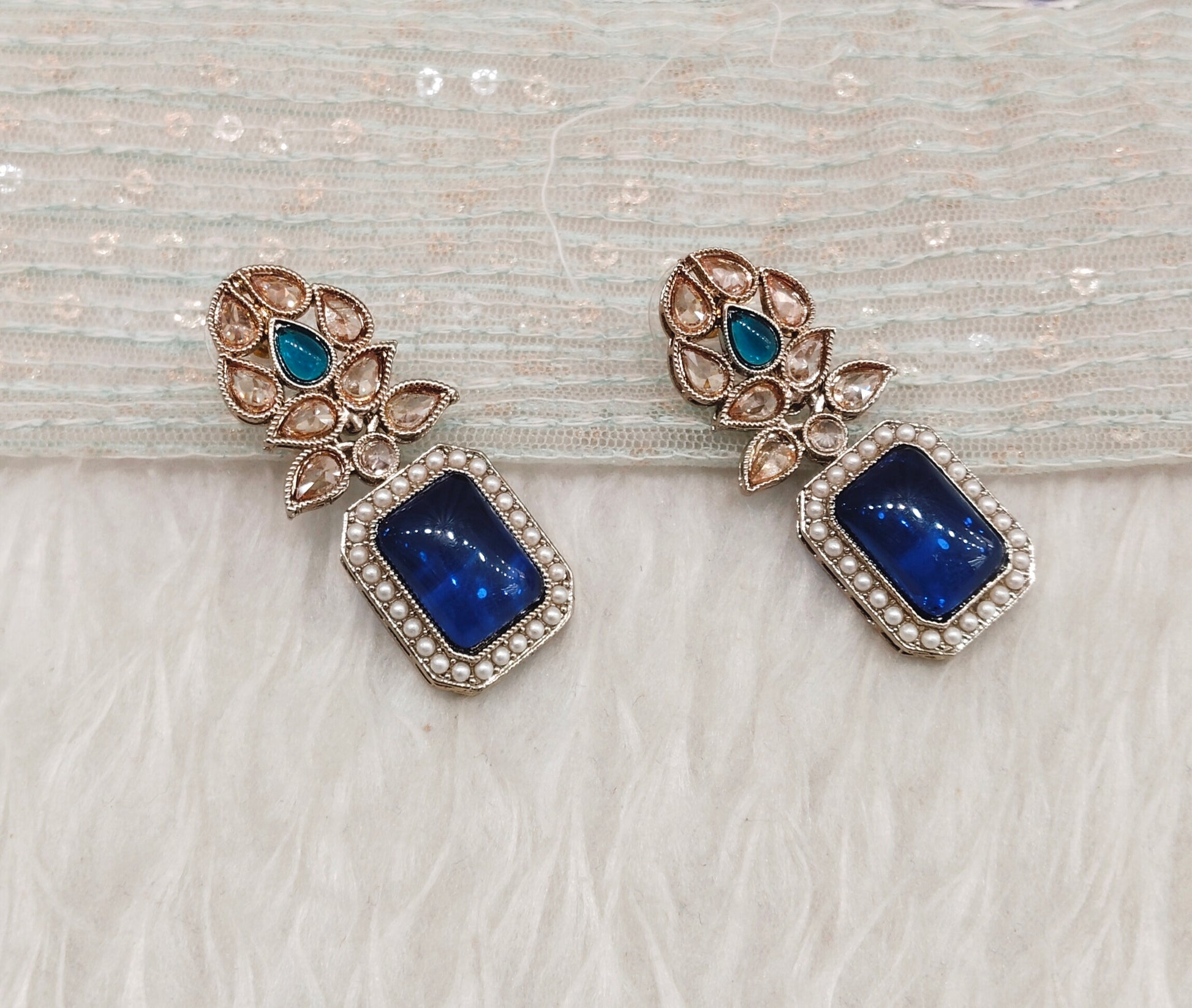 Blue Antique Gold Bollywood Fine Earrings