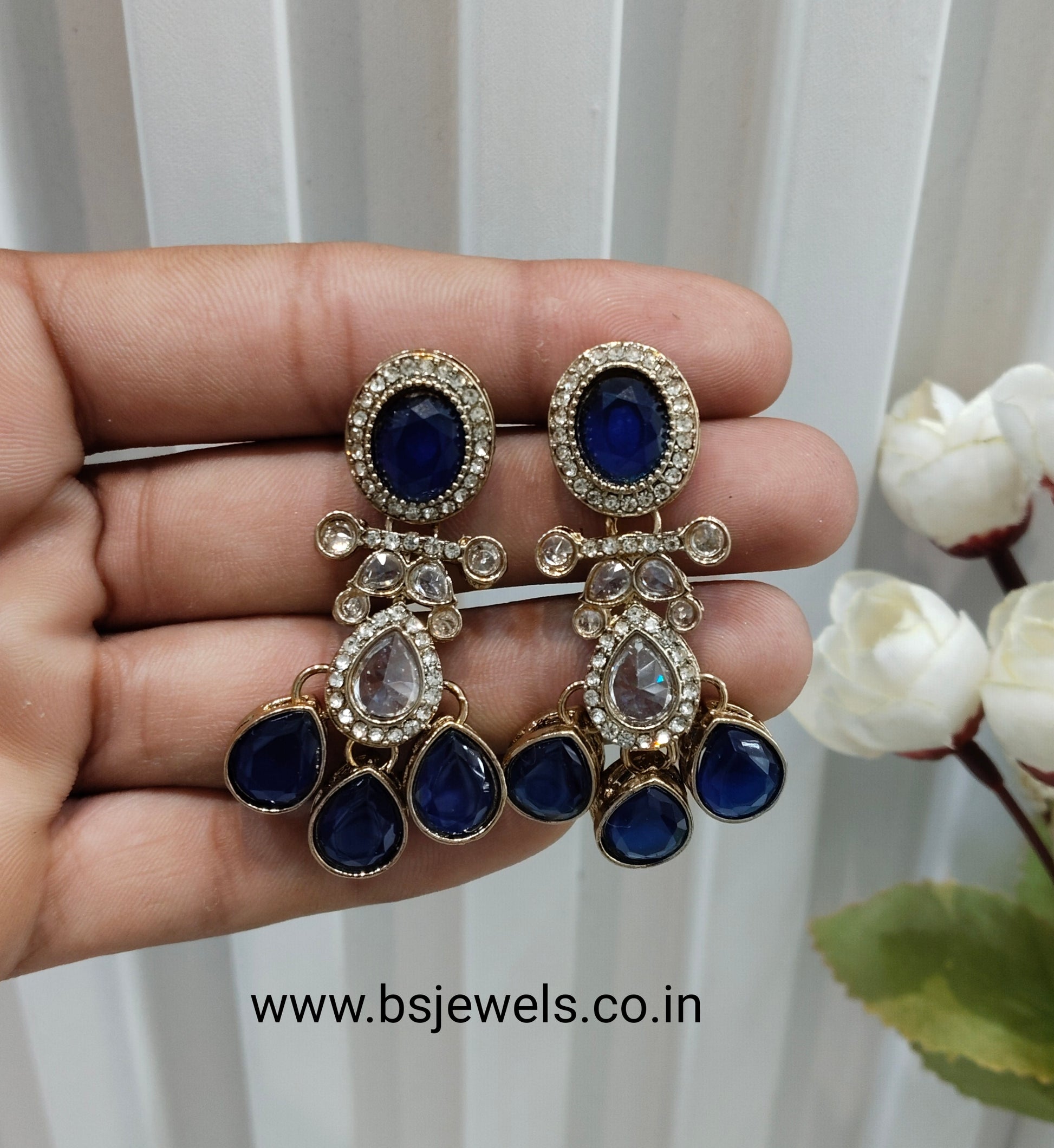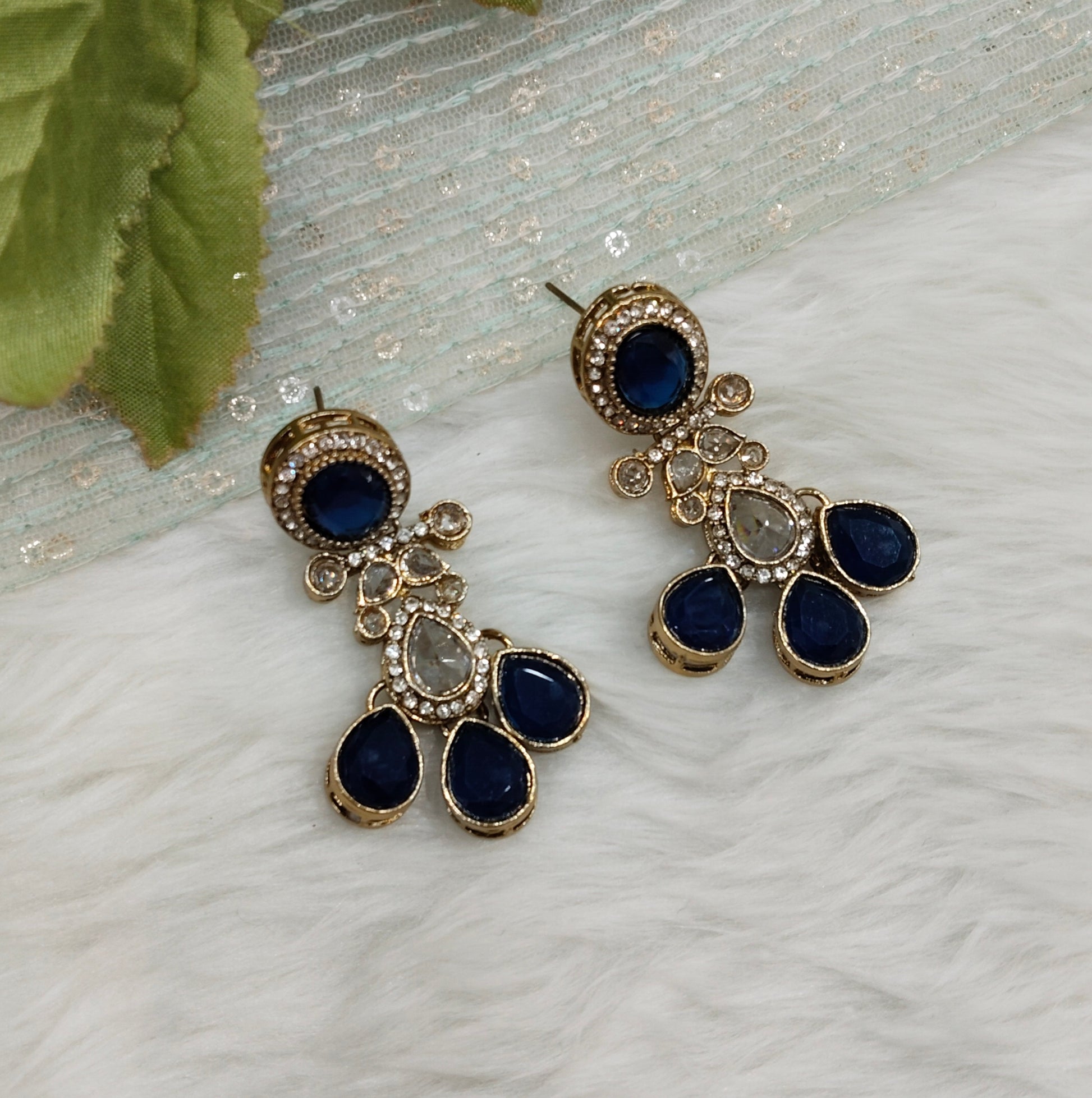 Blue Antique Gold Bollywood Salt Earrings