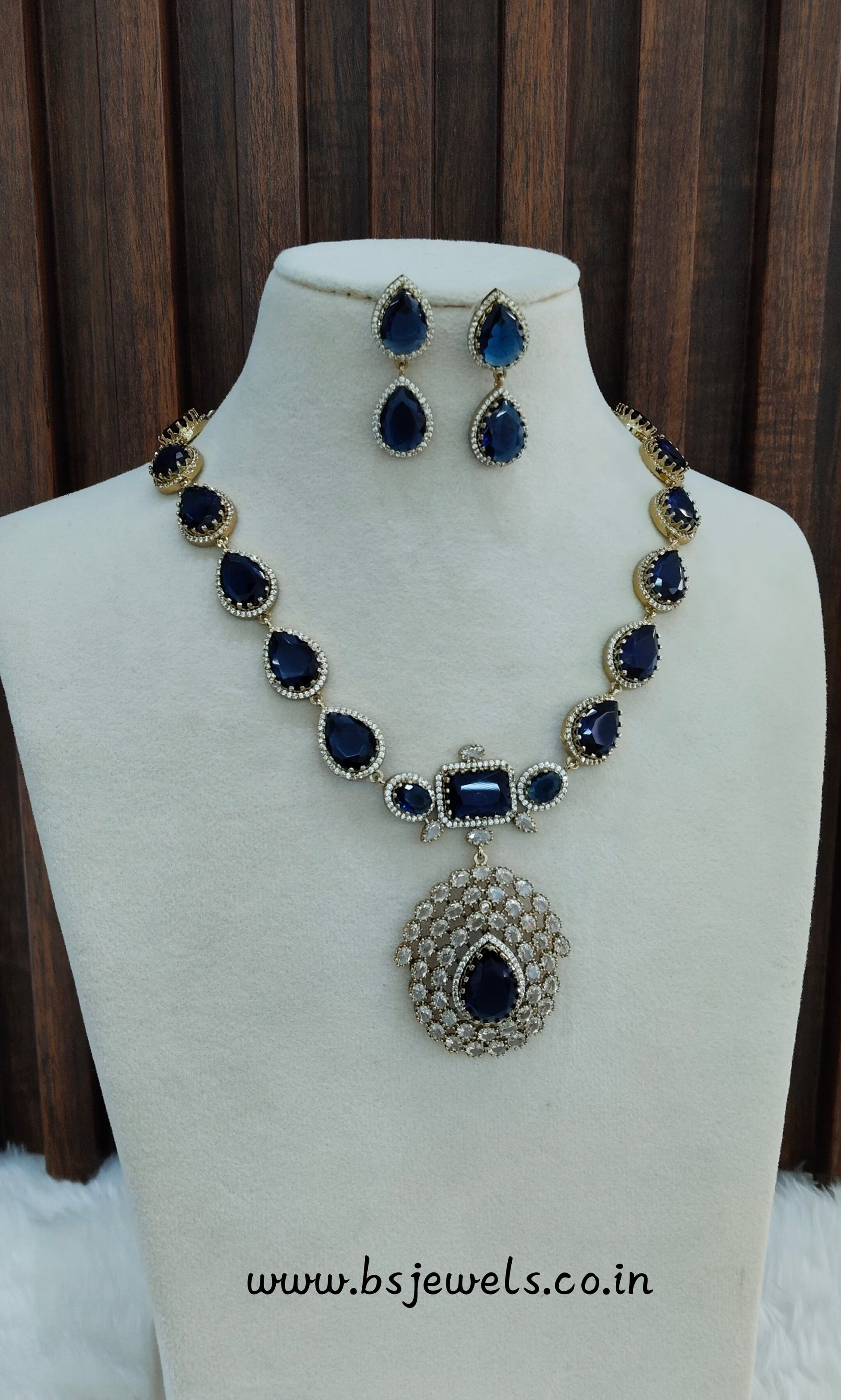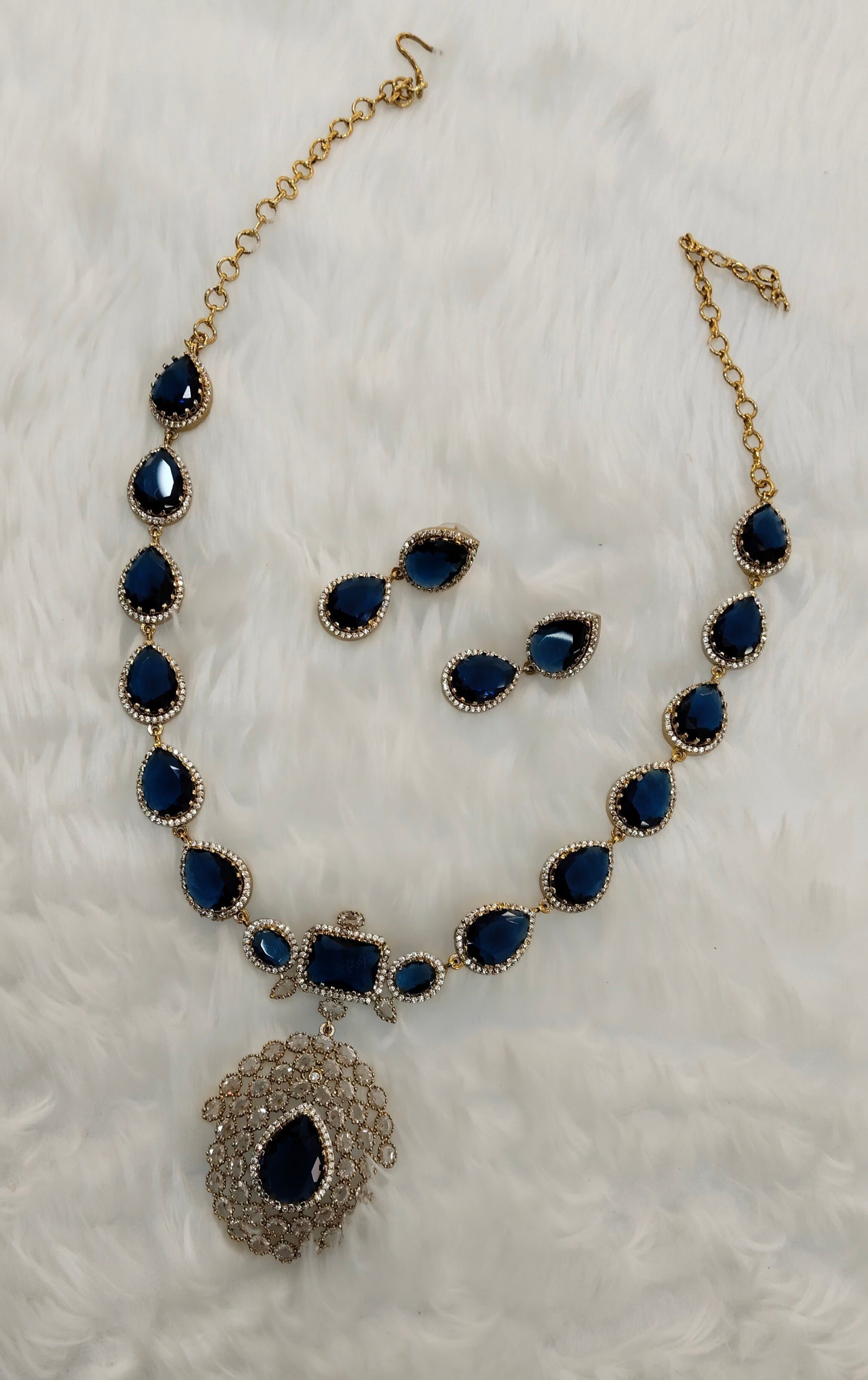 Blue Antique Gold CZ Necklace Jewellery Bajaj Set