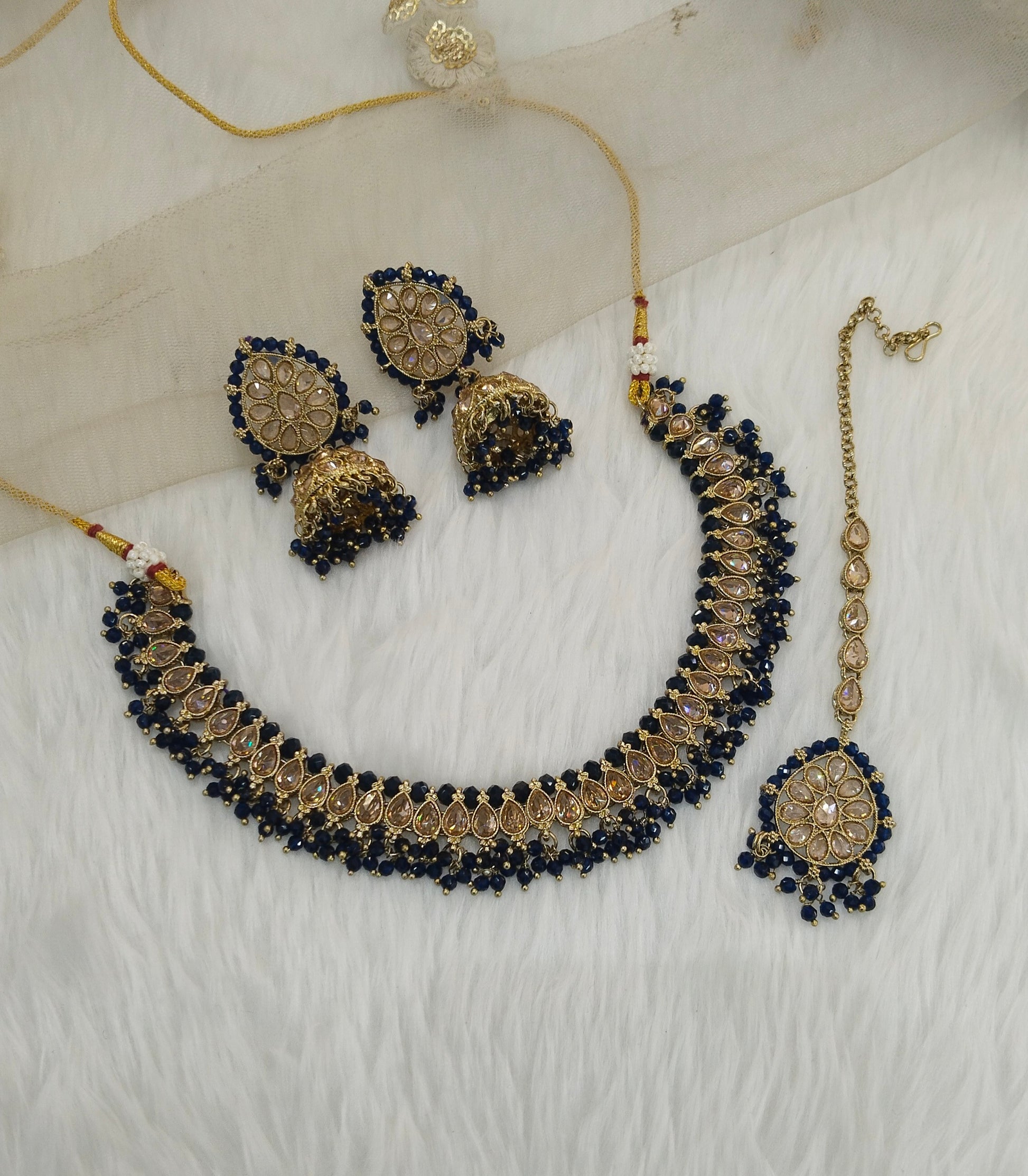 * Necklace set with earrings and tikka.