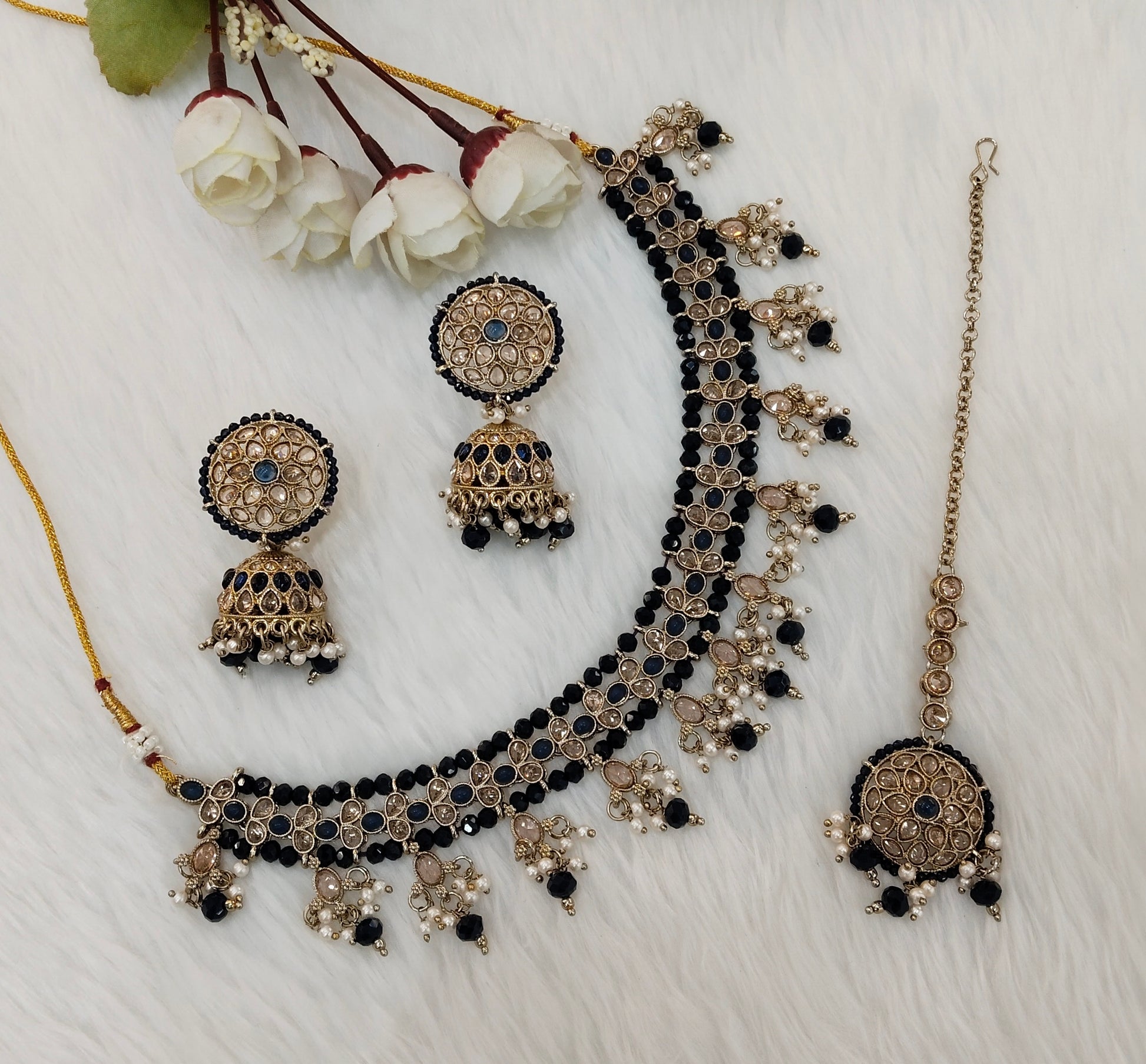 Blue Antique Gold Necklace Jewellery Gurjot Set