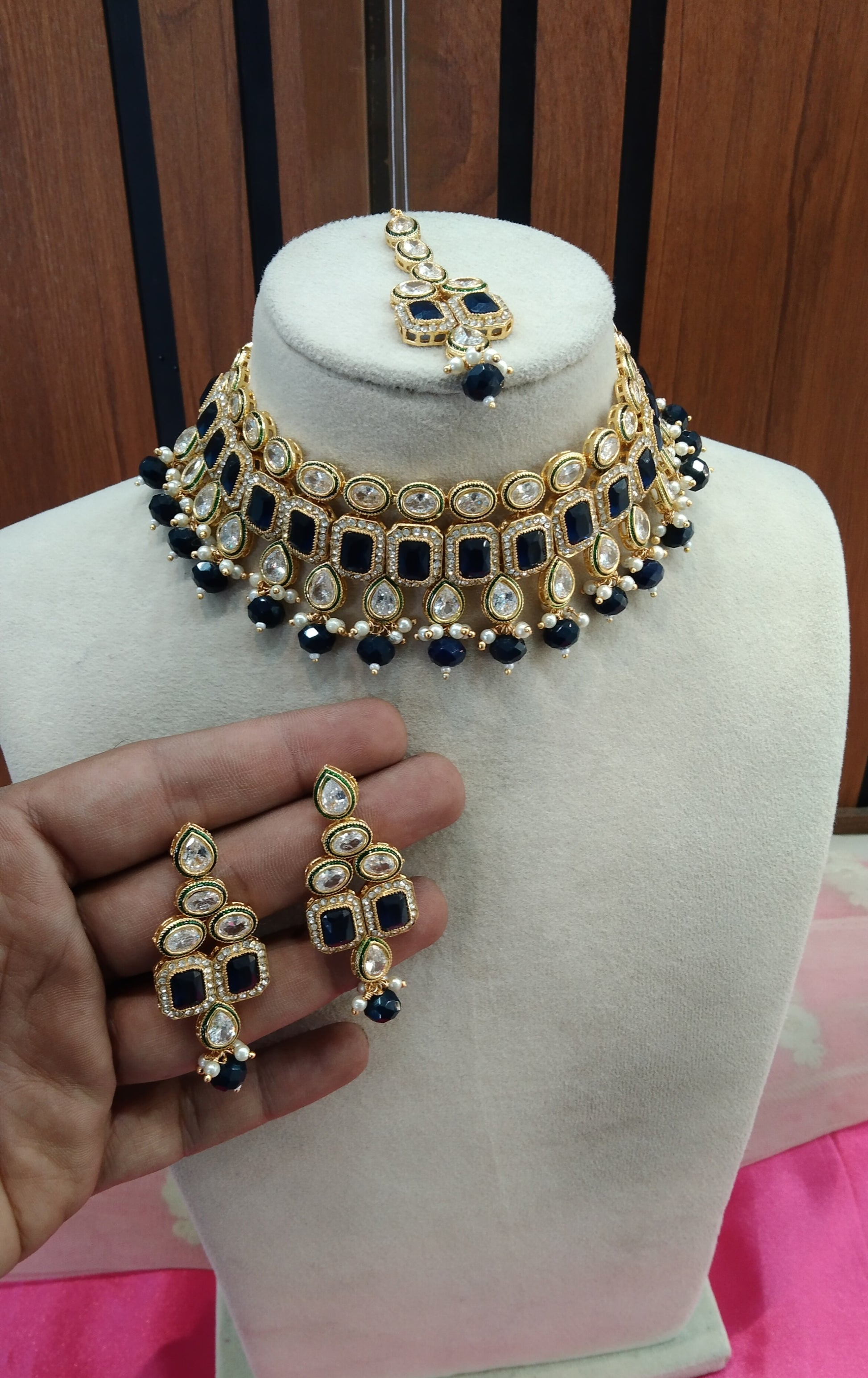 Blue Choker Kundan Jewellery Omsk Set