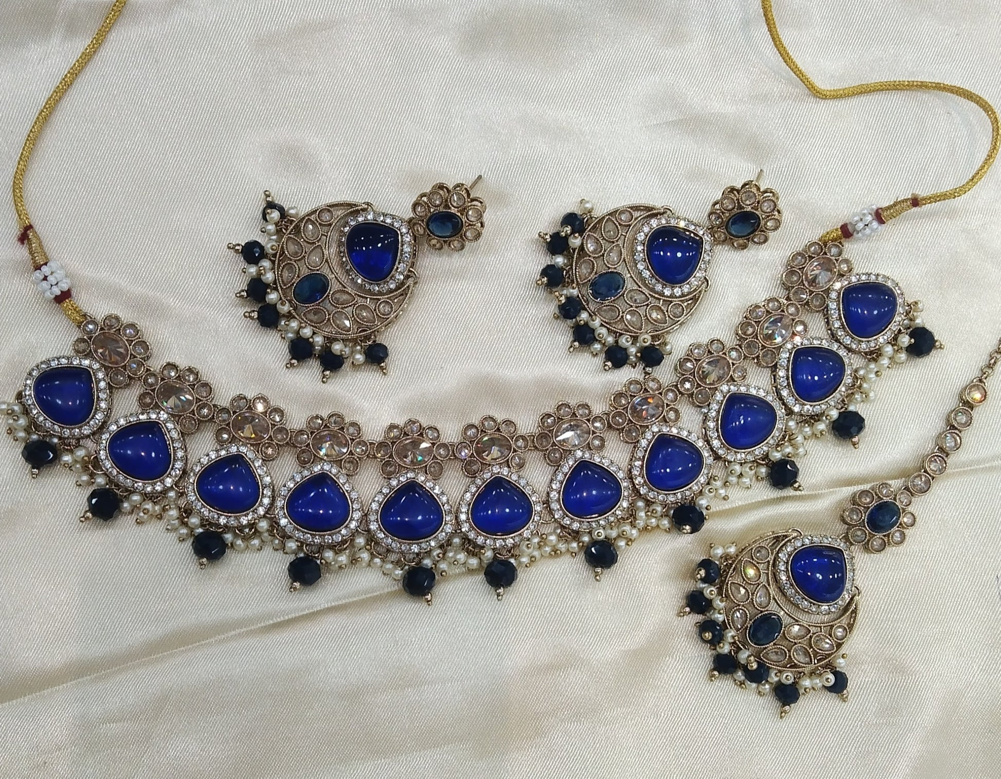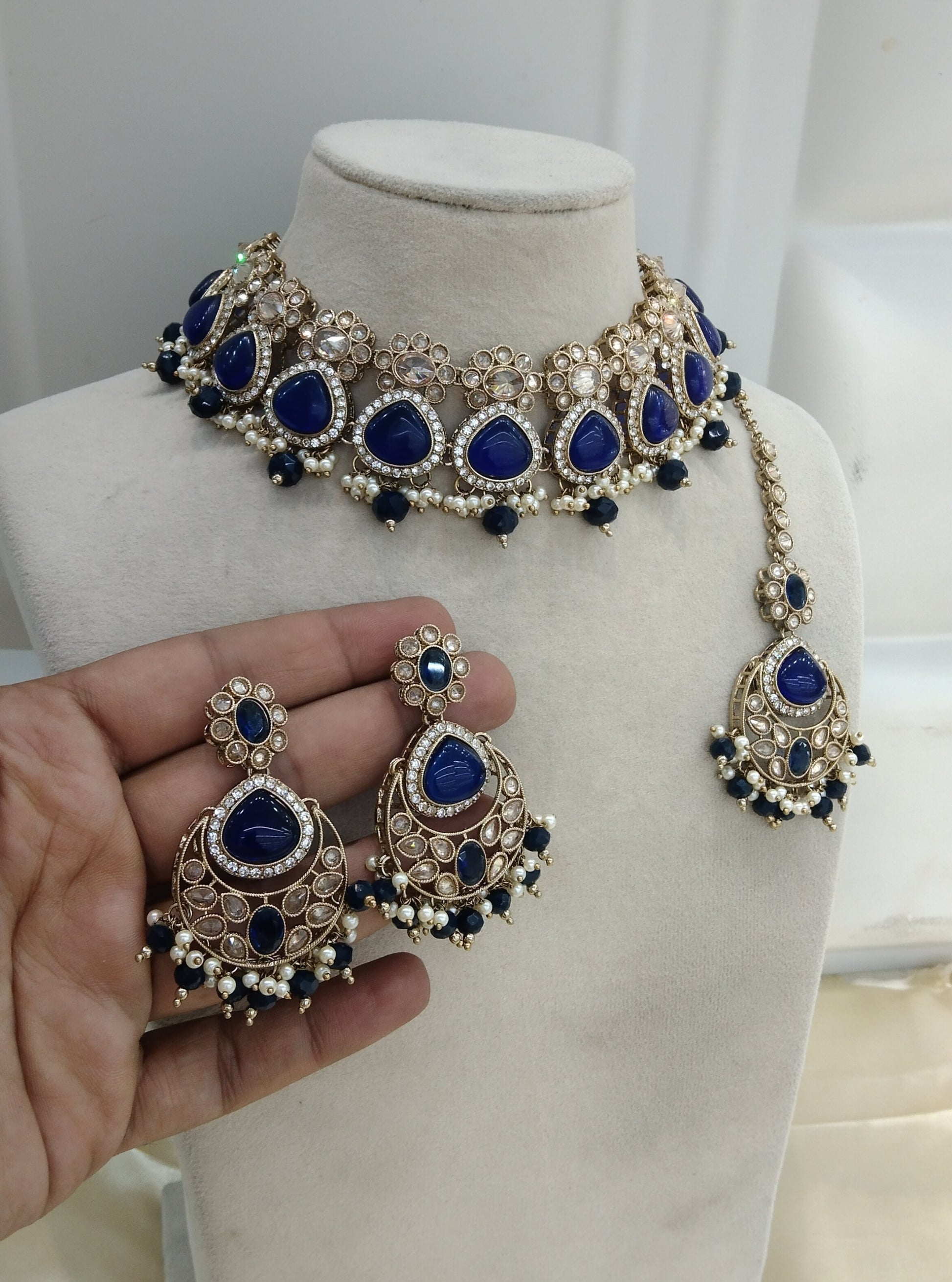 Blue Choker Monalisa Stone Jewellery Muskan Kundan Set