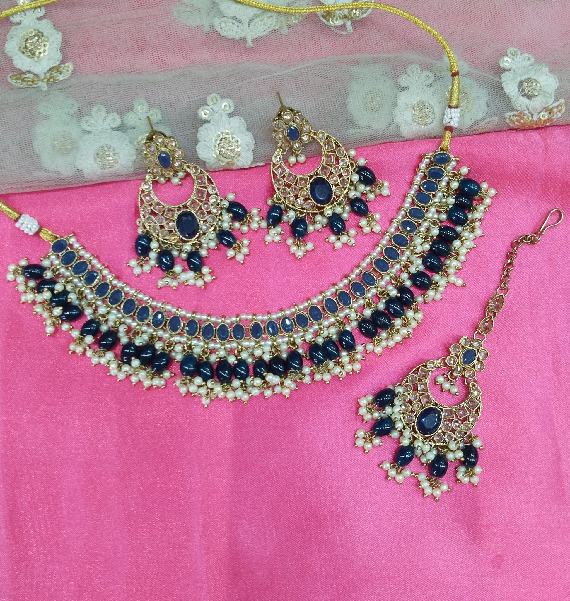 * Necklace set with earrings and tikka.