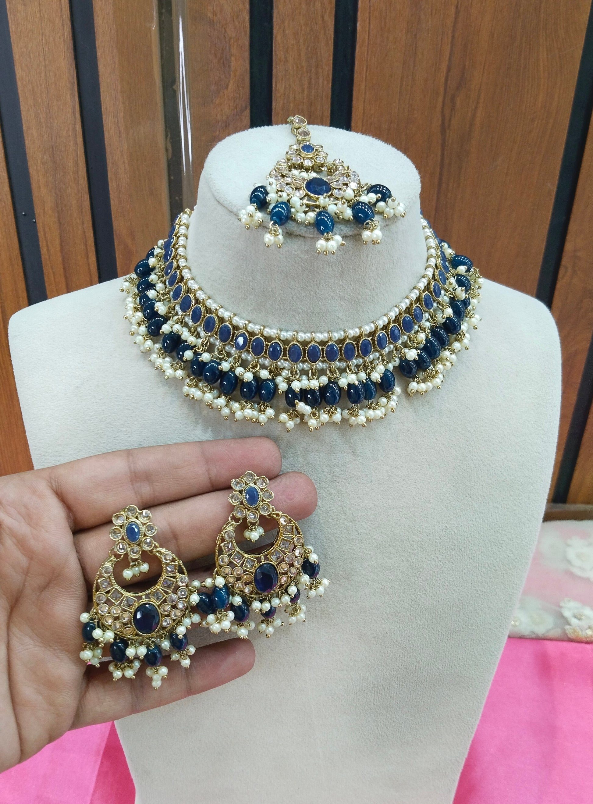 Blue Choker Necklace Jewellery Sira Set