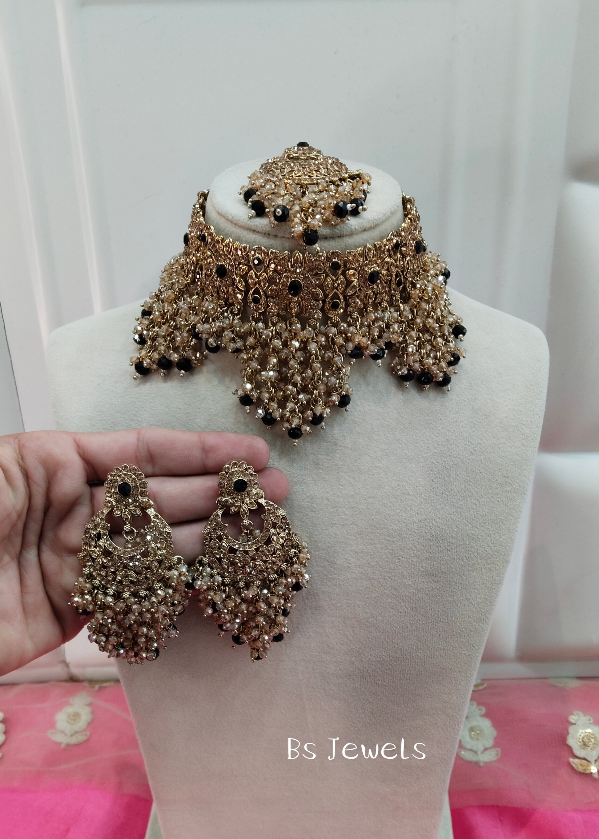 Blue Crystal Stone Choker Jewellery Siraj Set