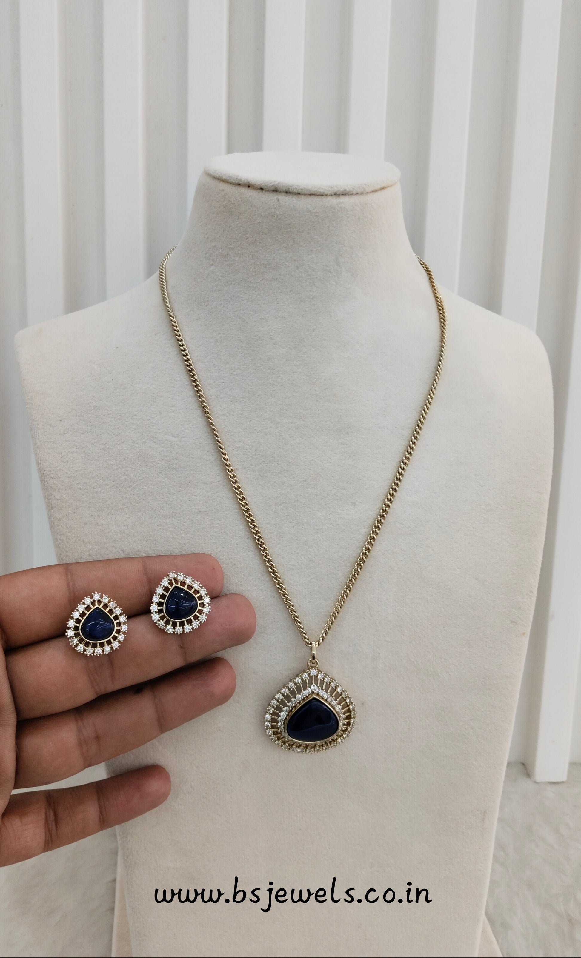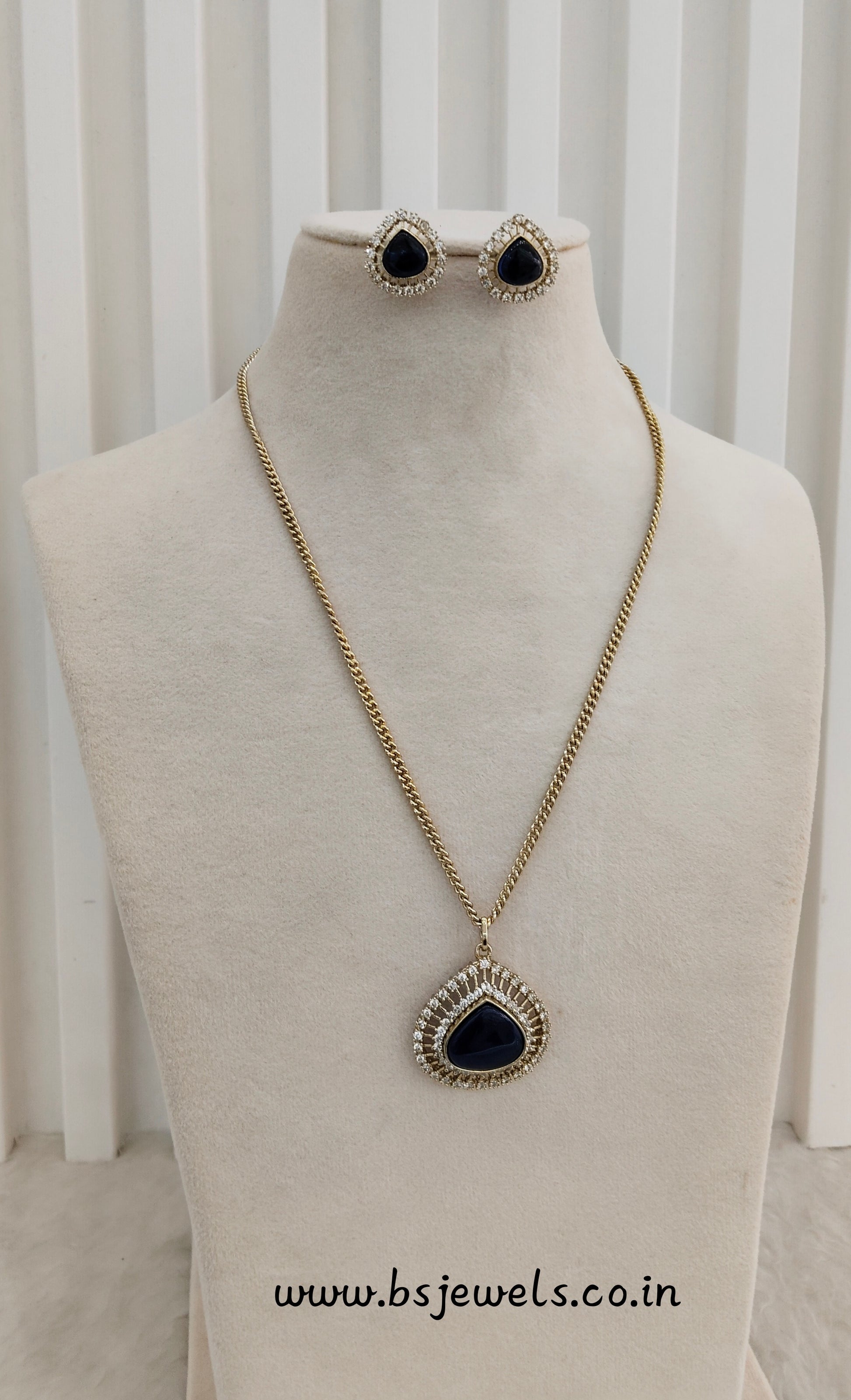 Blue Gold Moissanite Kundan Necklace Jewellery Avenger Chain Set