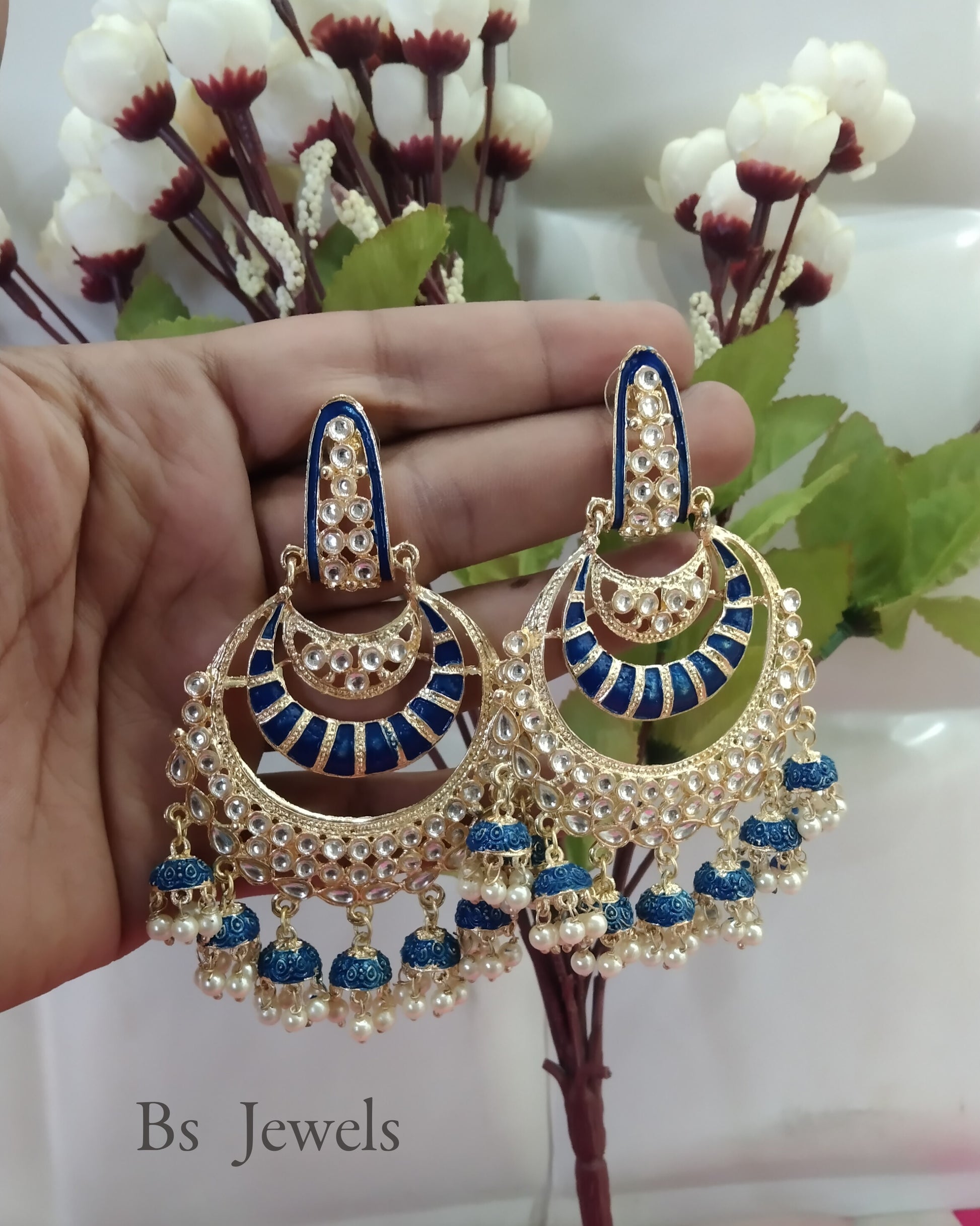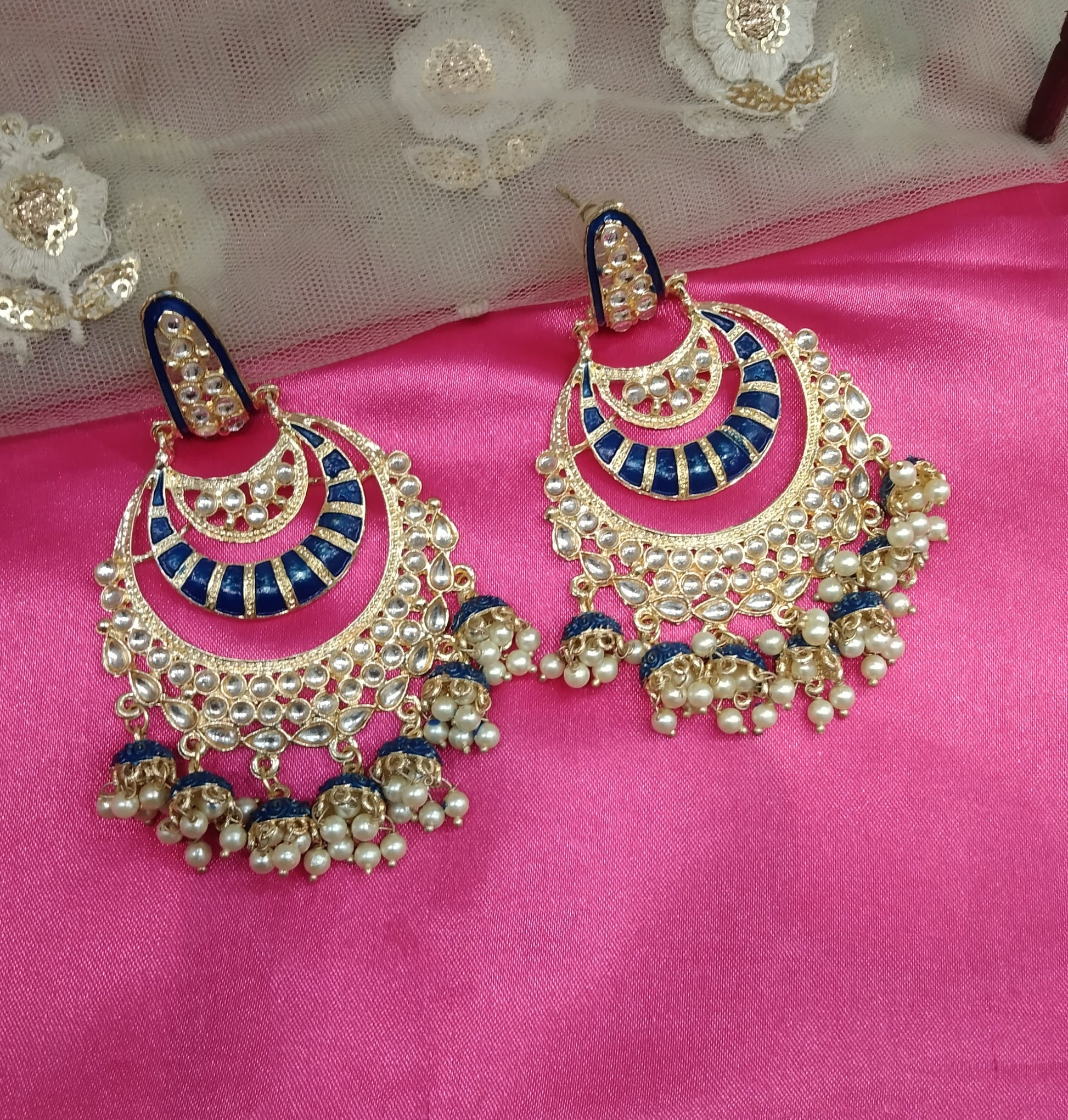 Blue Kundan Sia Bollywood Earrings