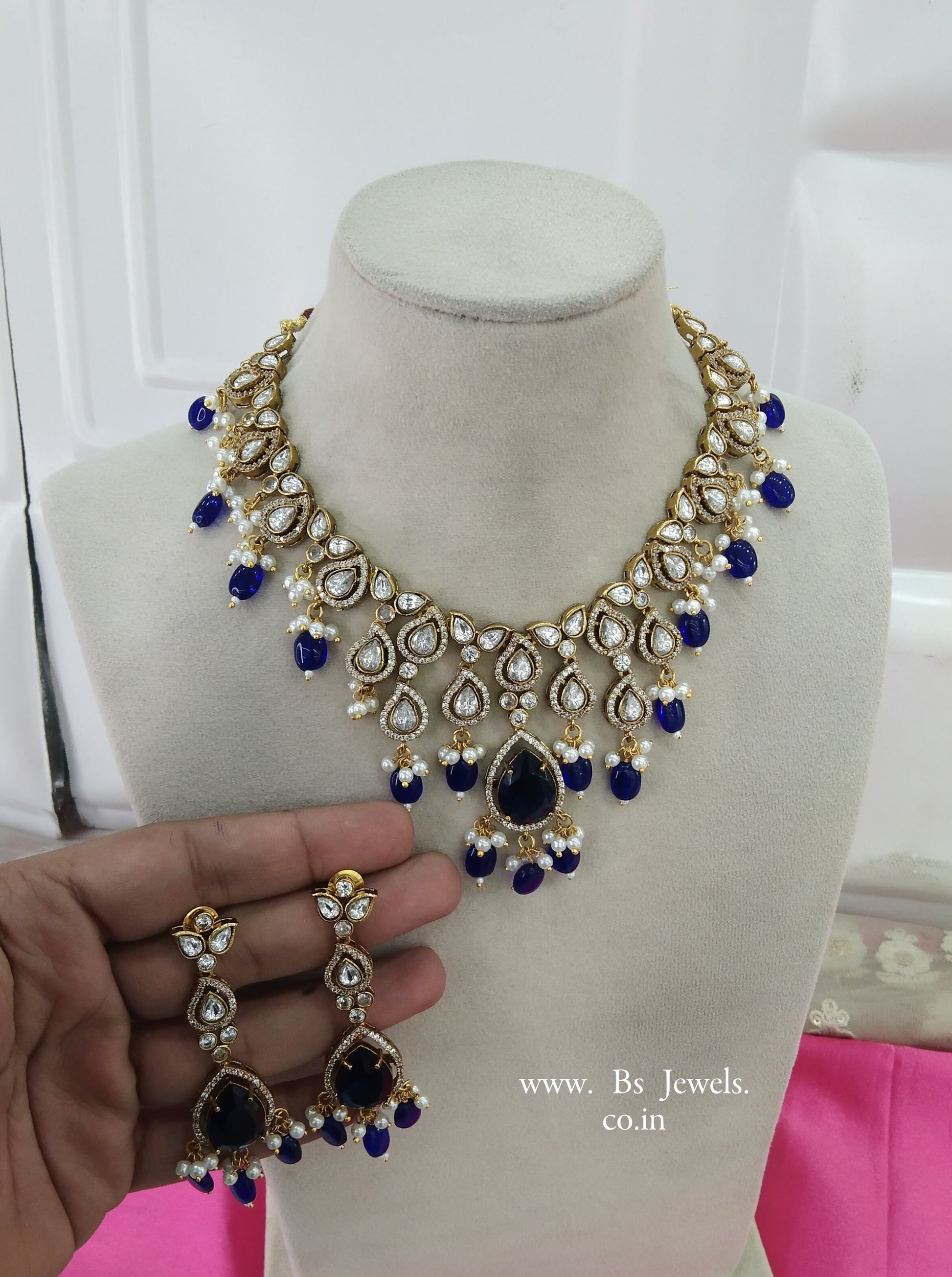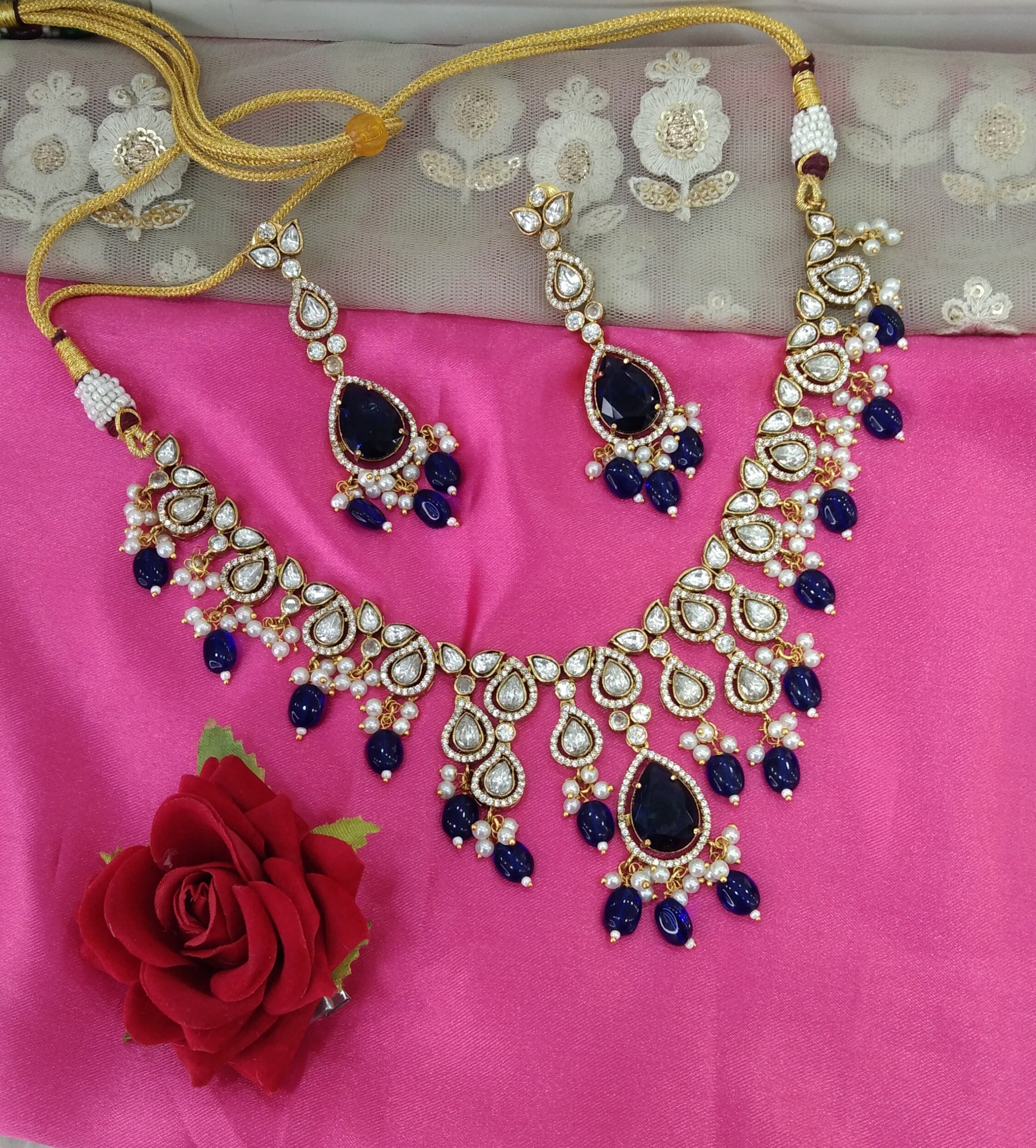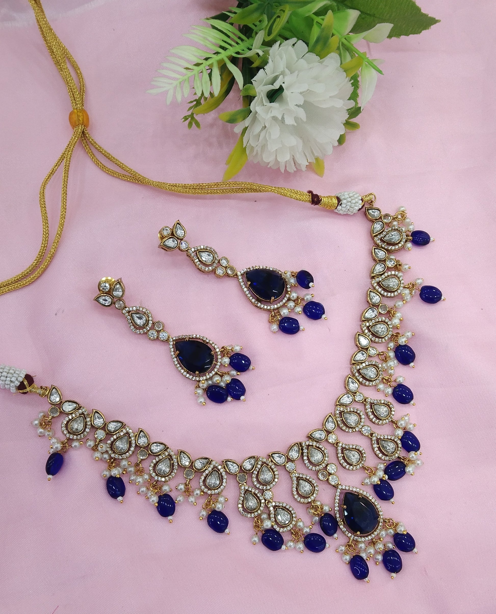Blue Moissanite Kundan Necklace Jewellery Shweta Set