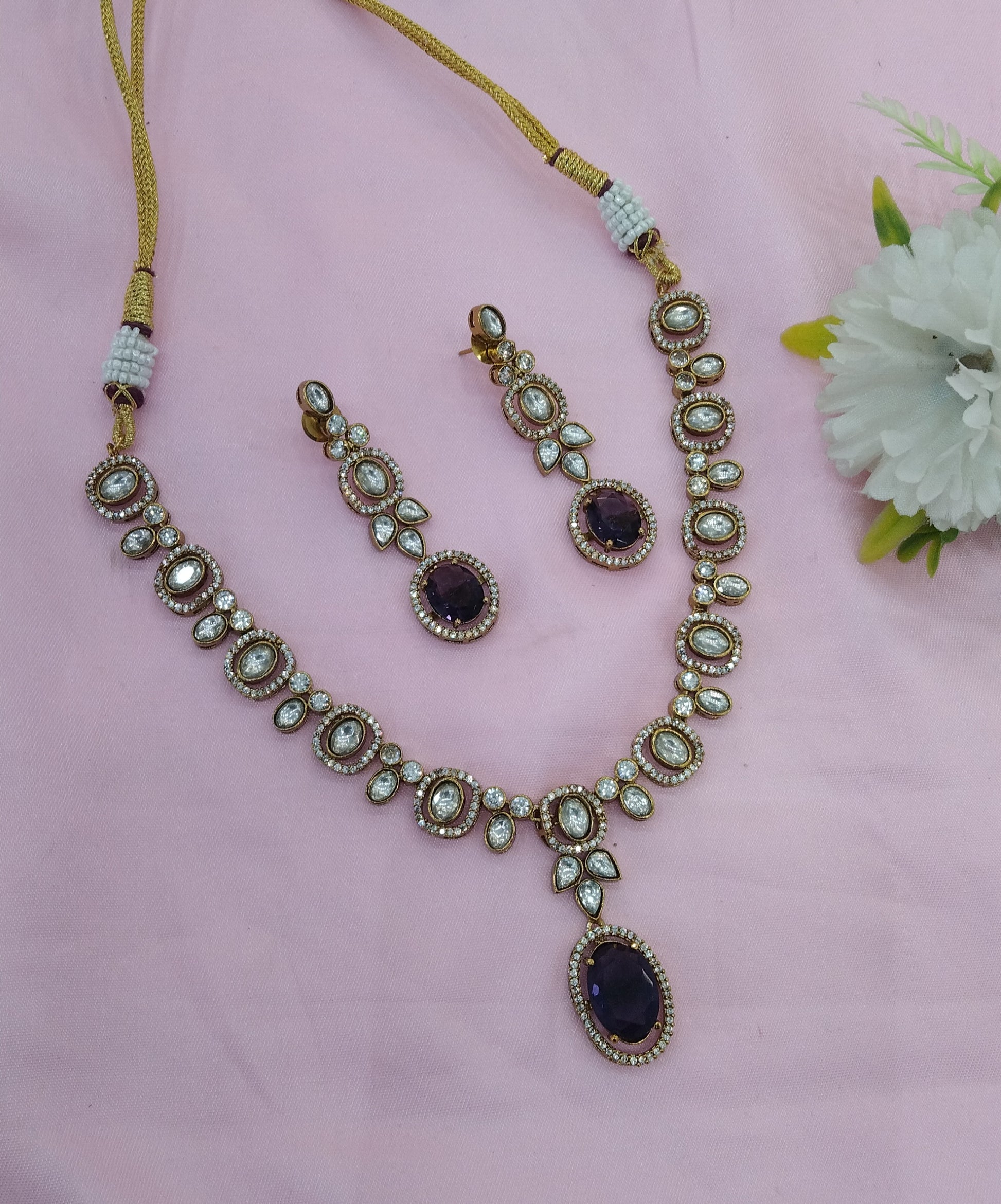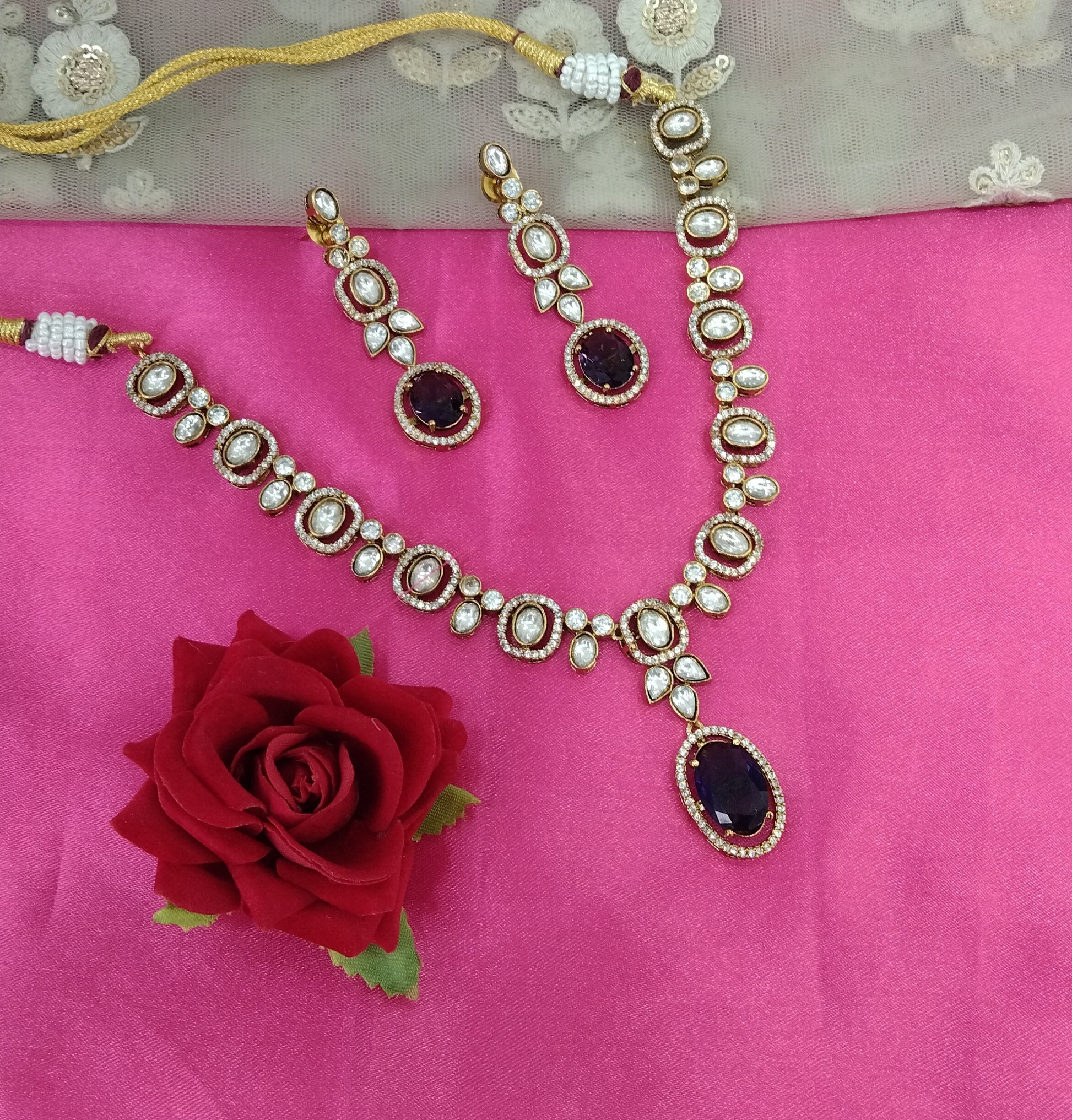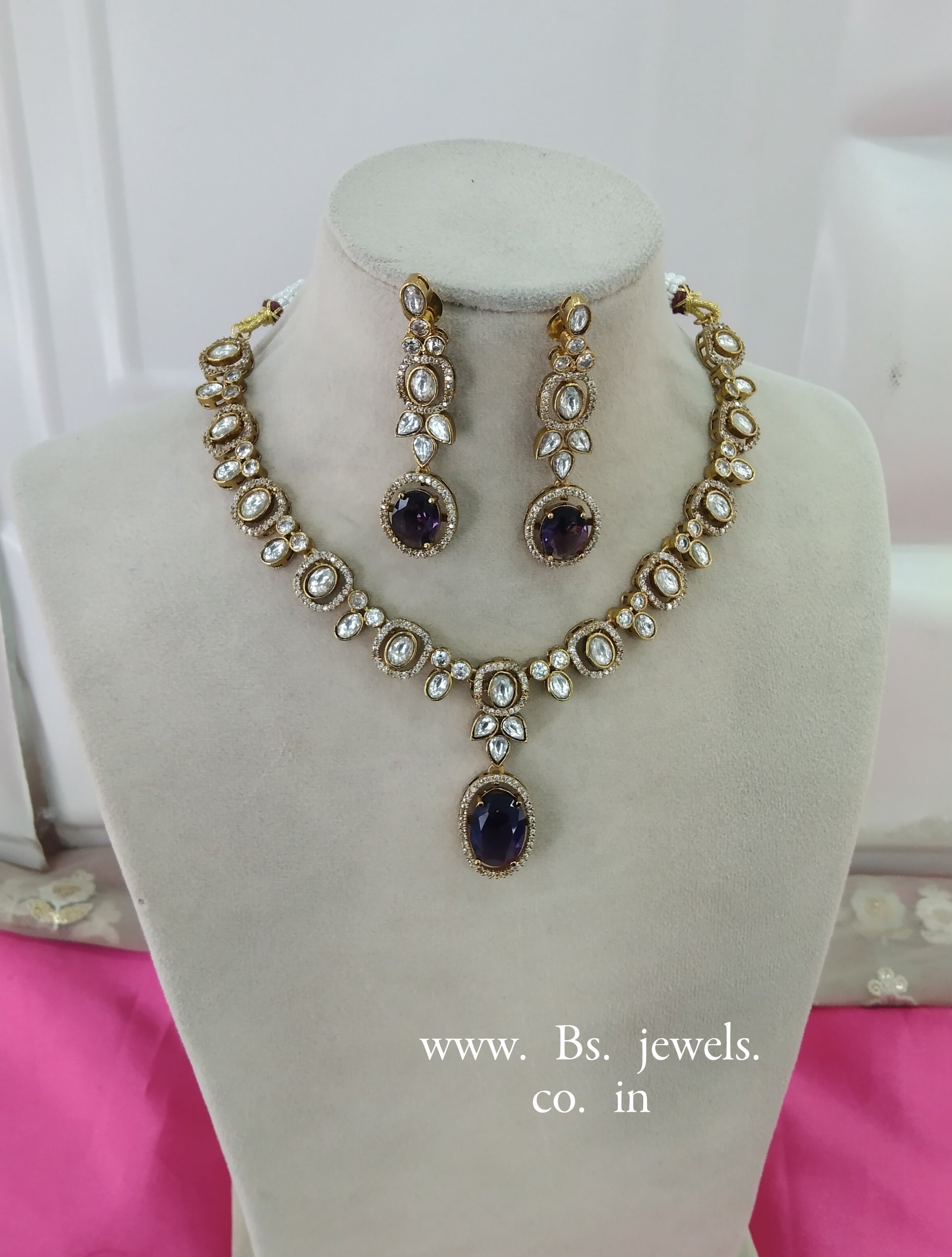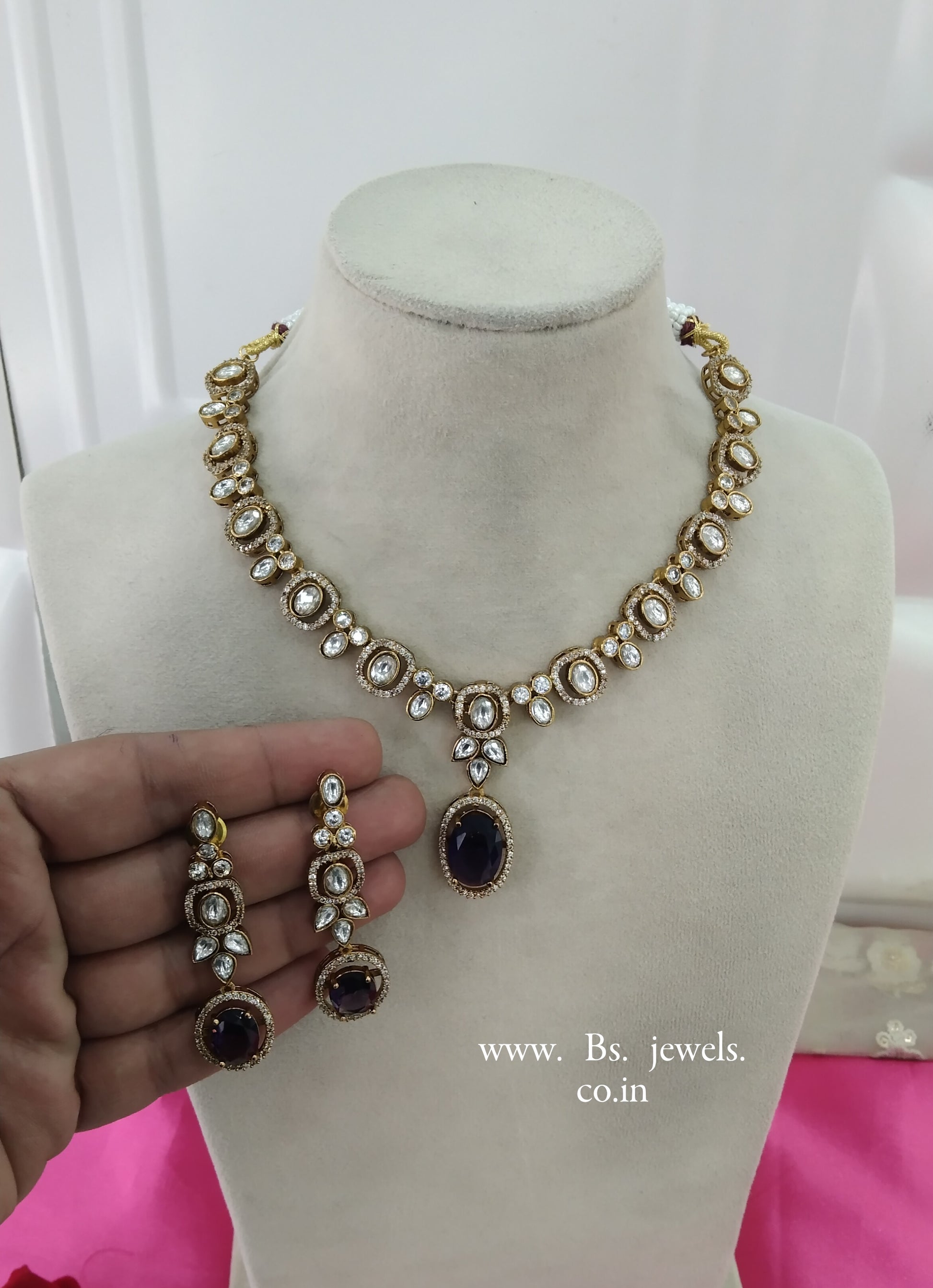 Blue Moissanite Kundan Necklace Jewellery Shweta Set