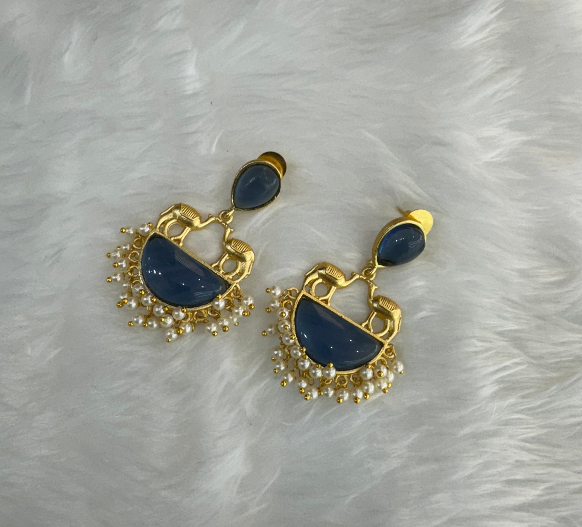 Blue Mother Of Pearl Bollywood Aarna Earrings